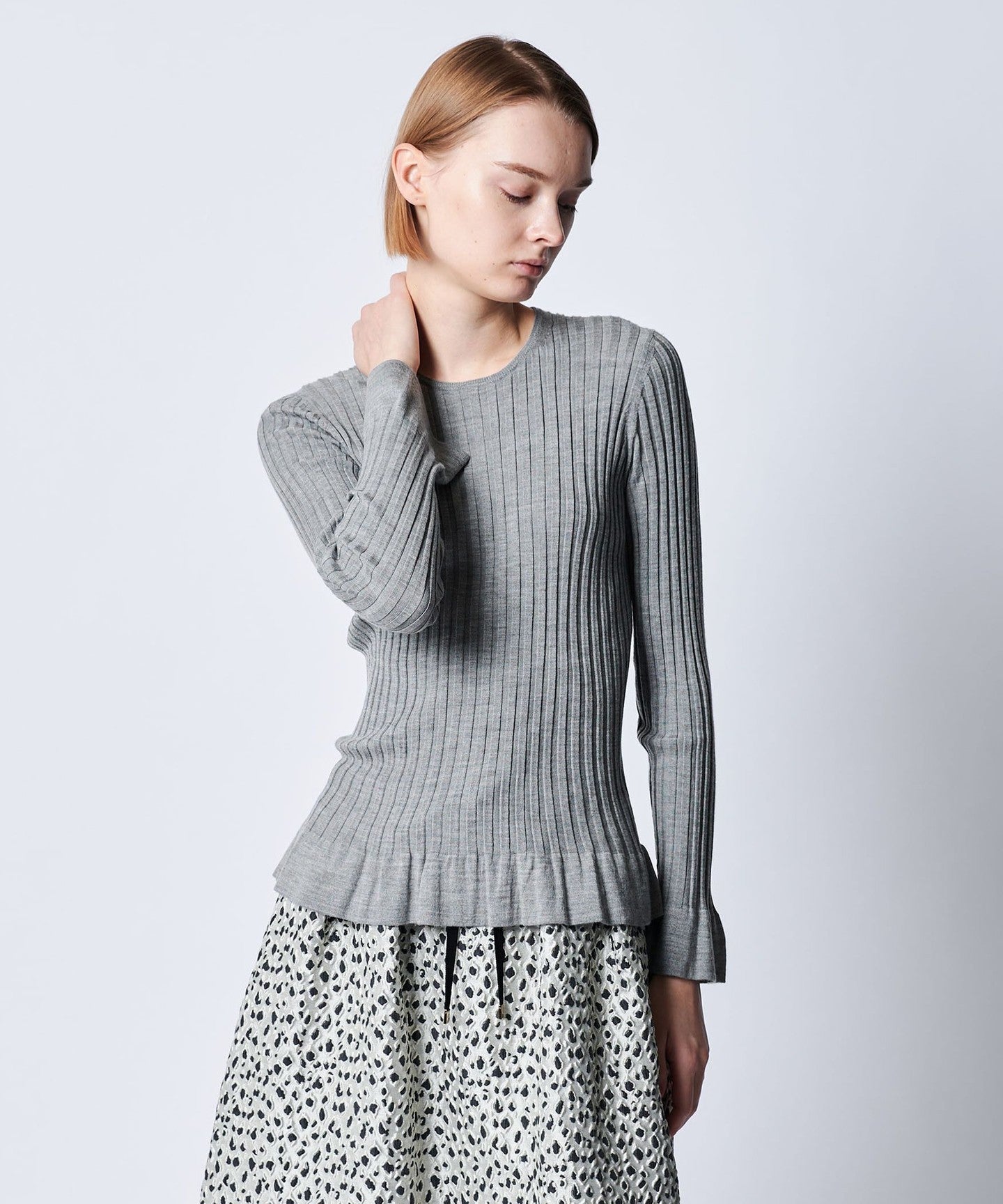 DRAWERRESORT1 18G Peplum Rib Crew Knit