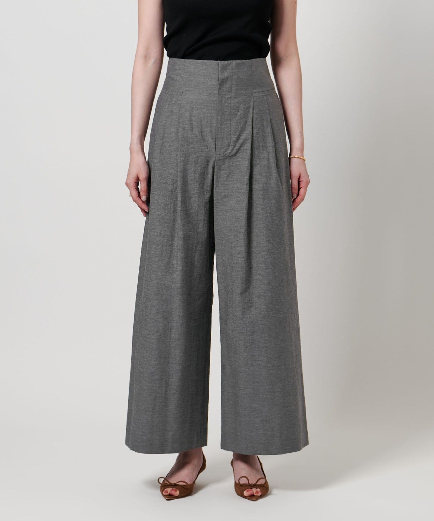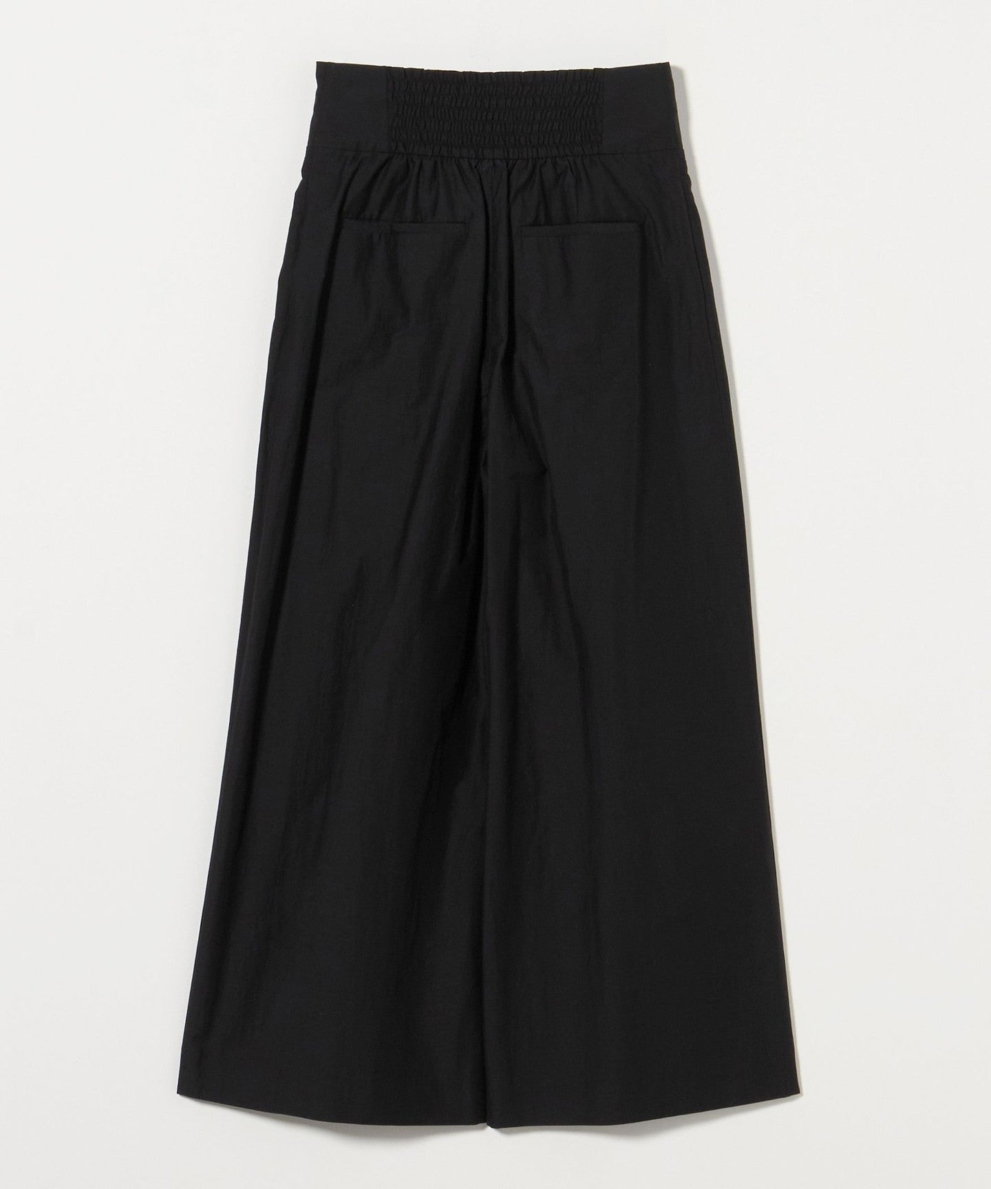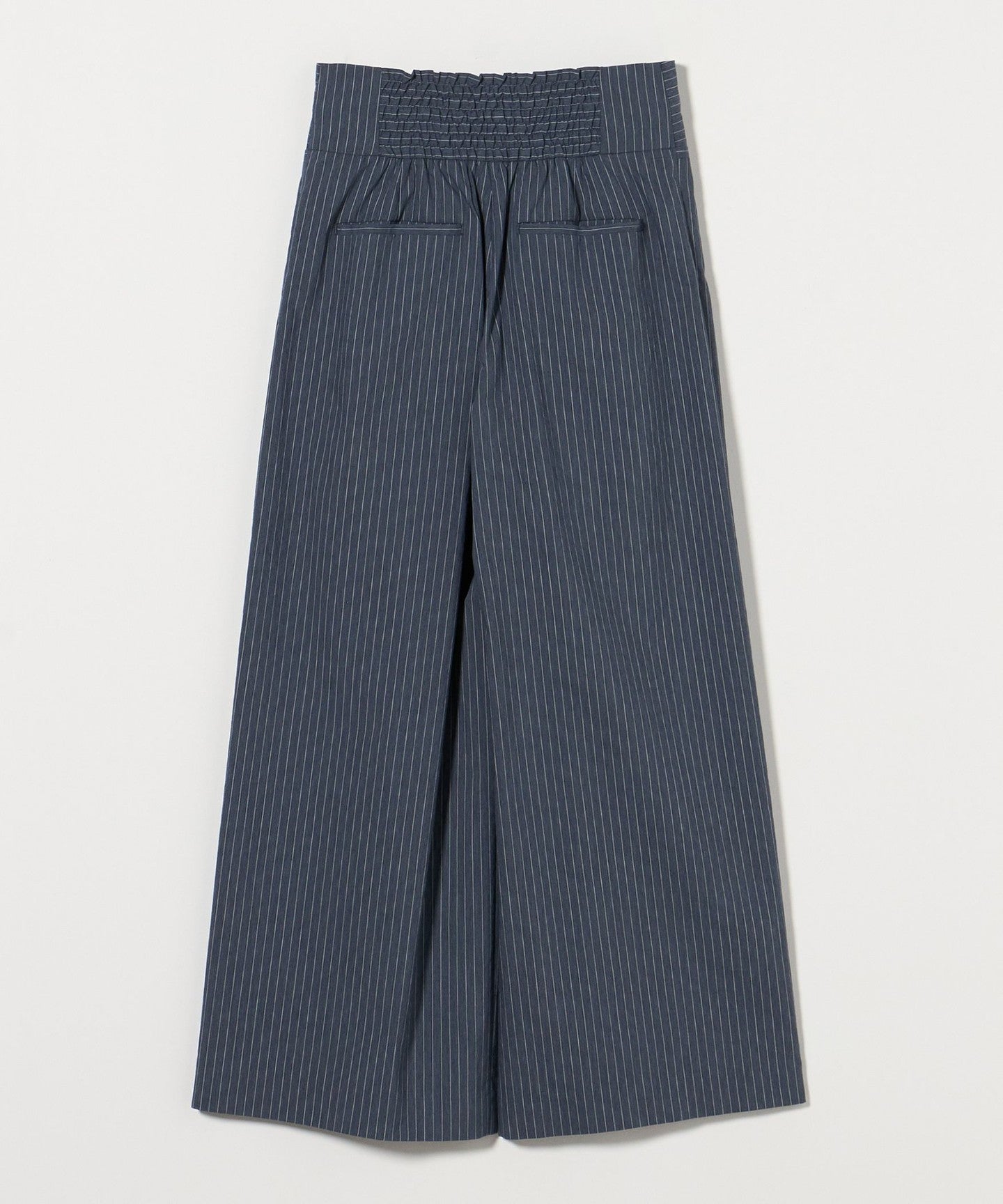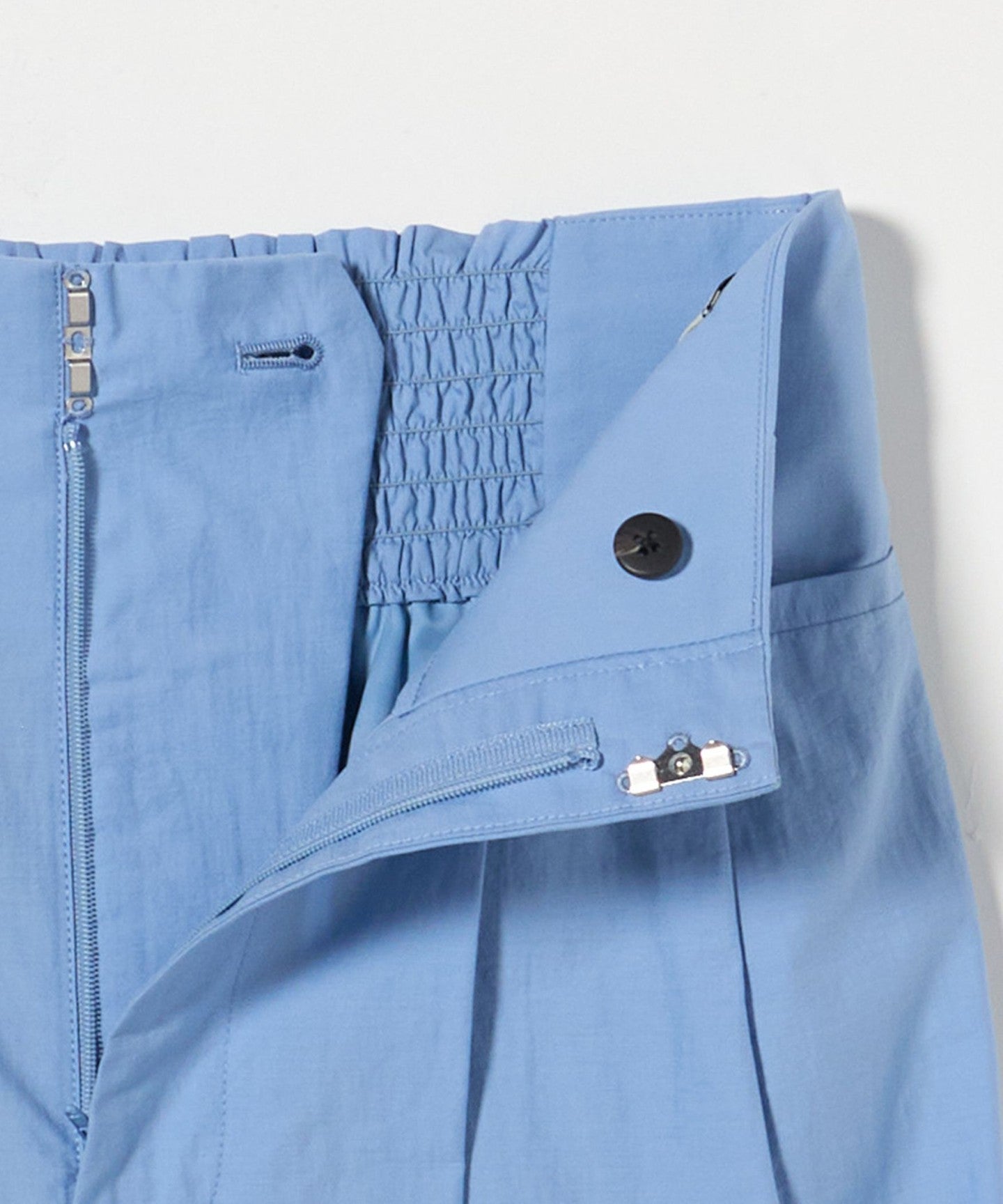 These two-pleat wide pants have a high waist and shirring at the back, making them comfortable to wear.