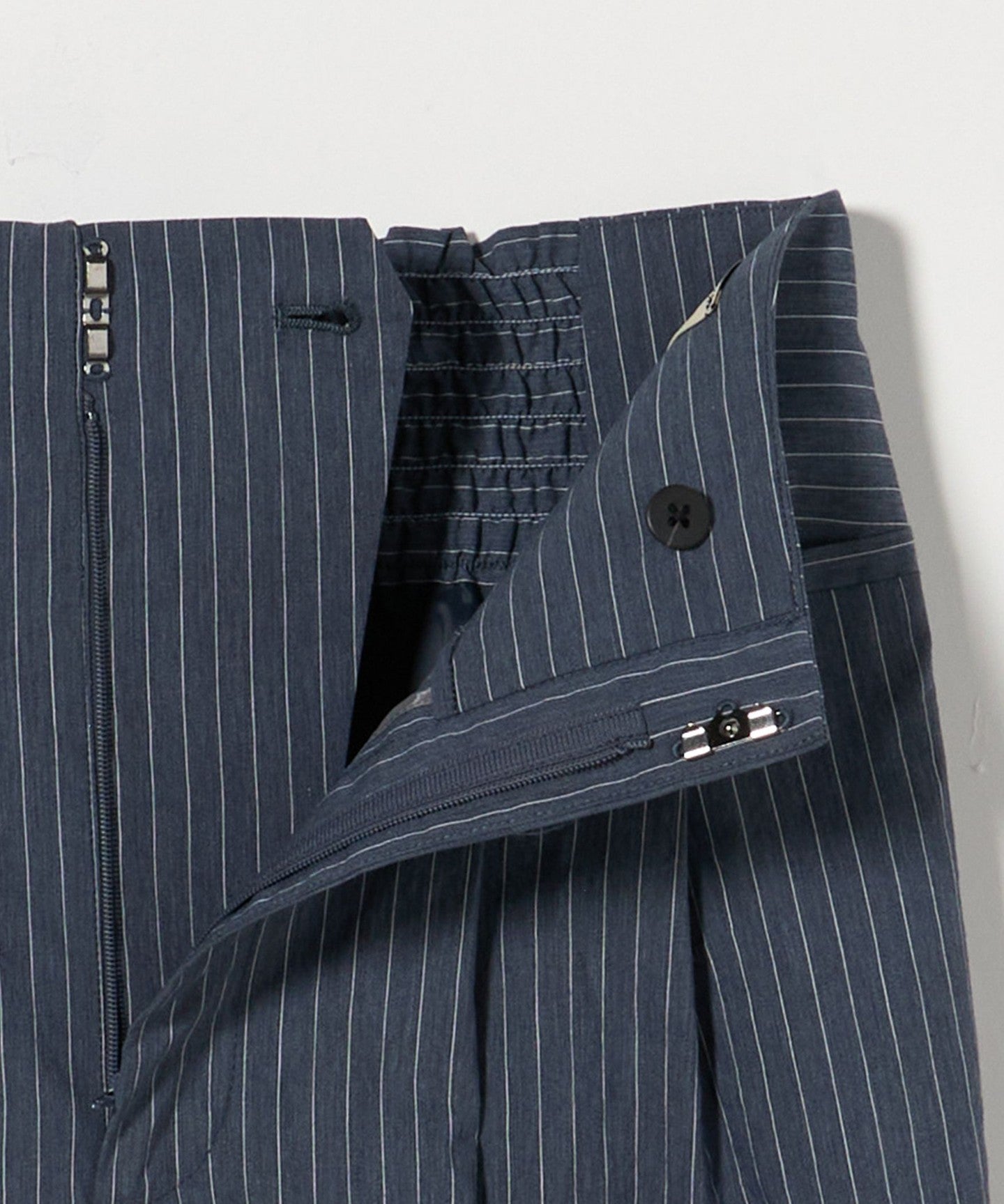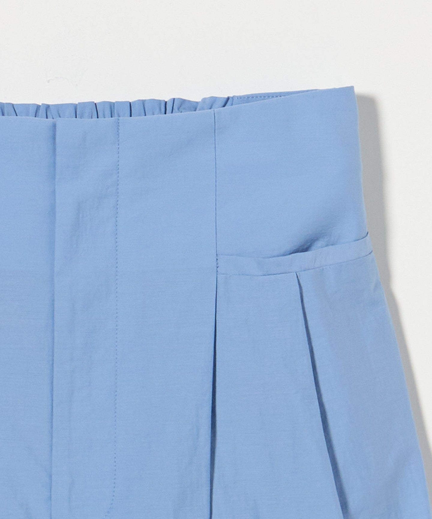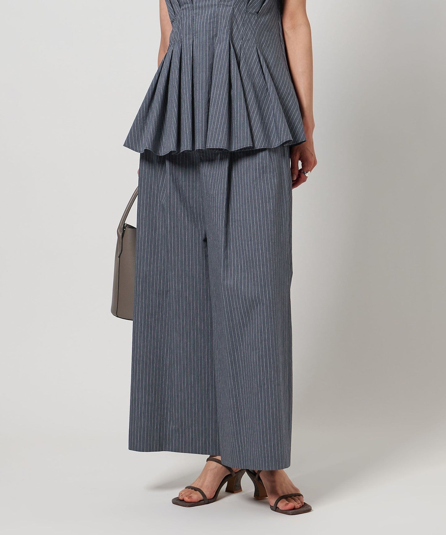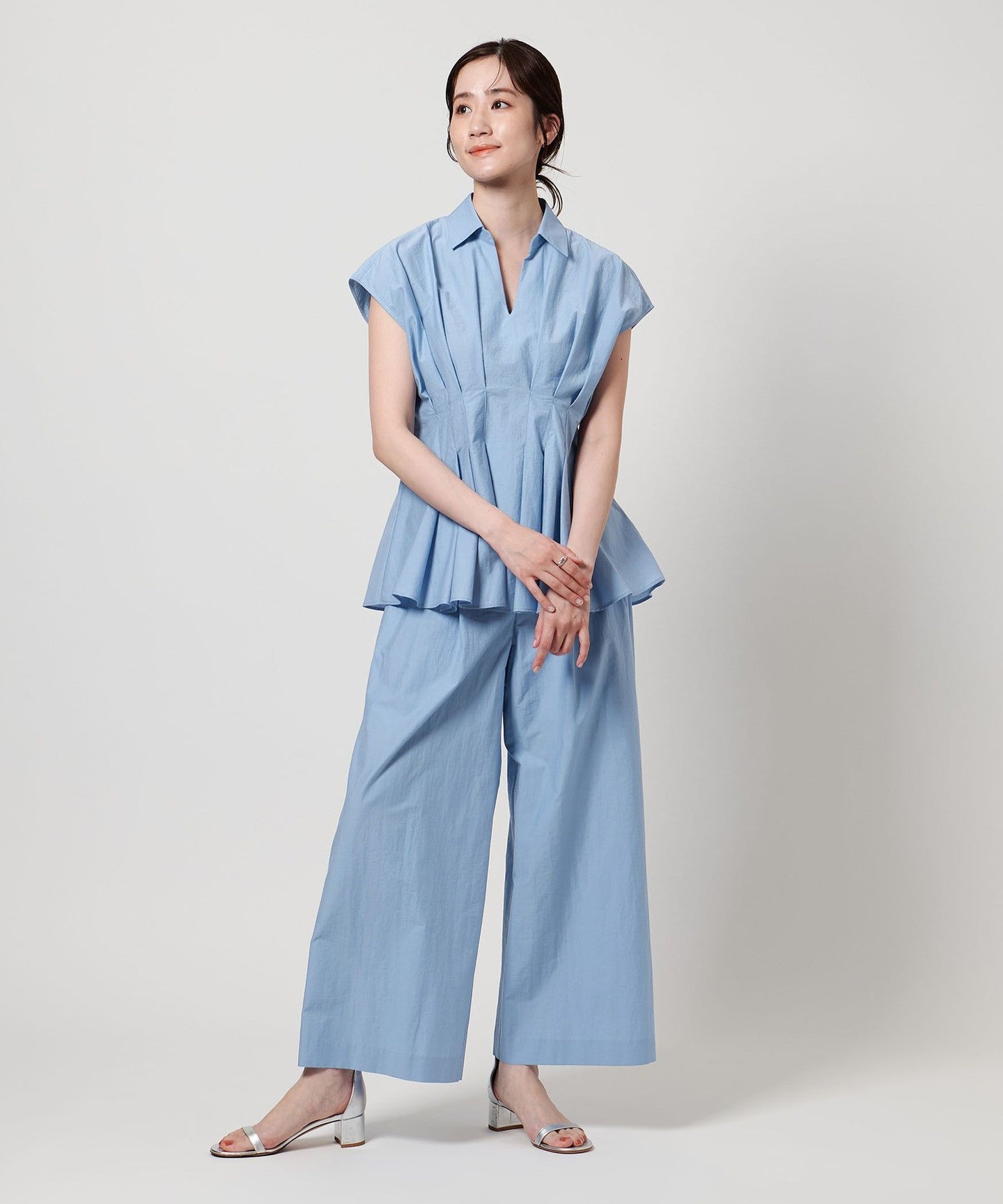 These two-pleat wide pants have a high waist and shirring at the back, making them comfortable to wear.