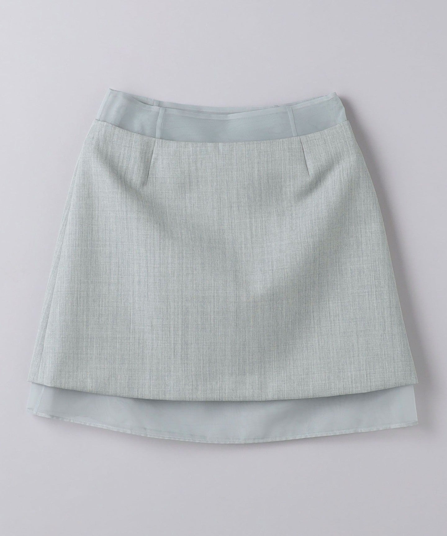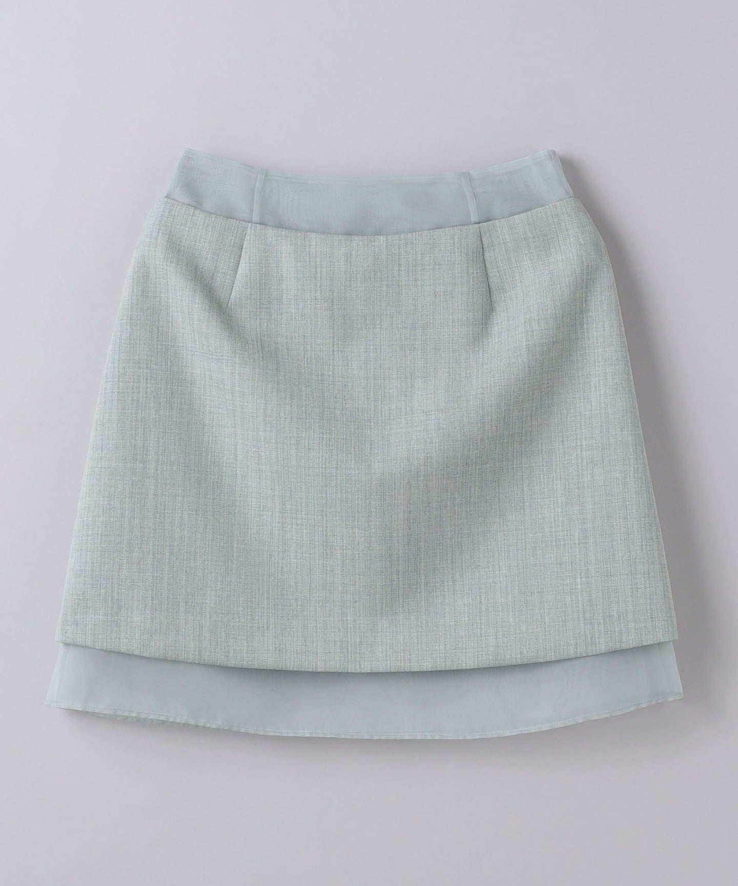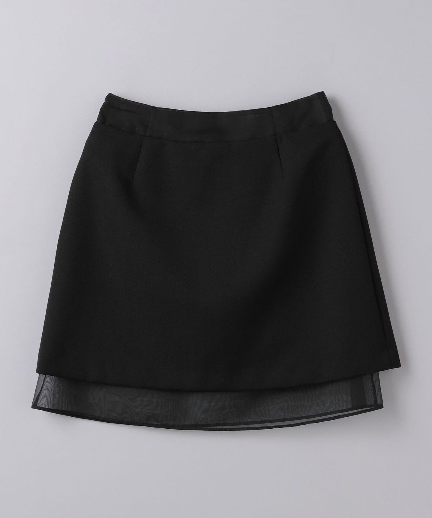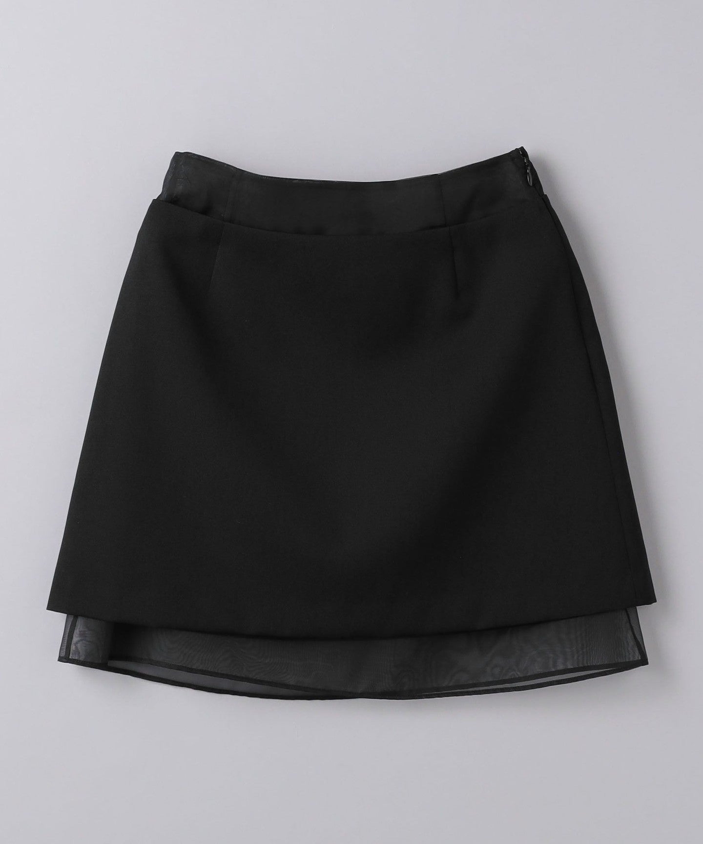 This trapezoid mini skirt features a different material, organza, at the waist and hem.