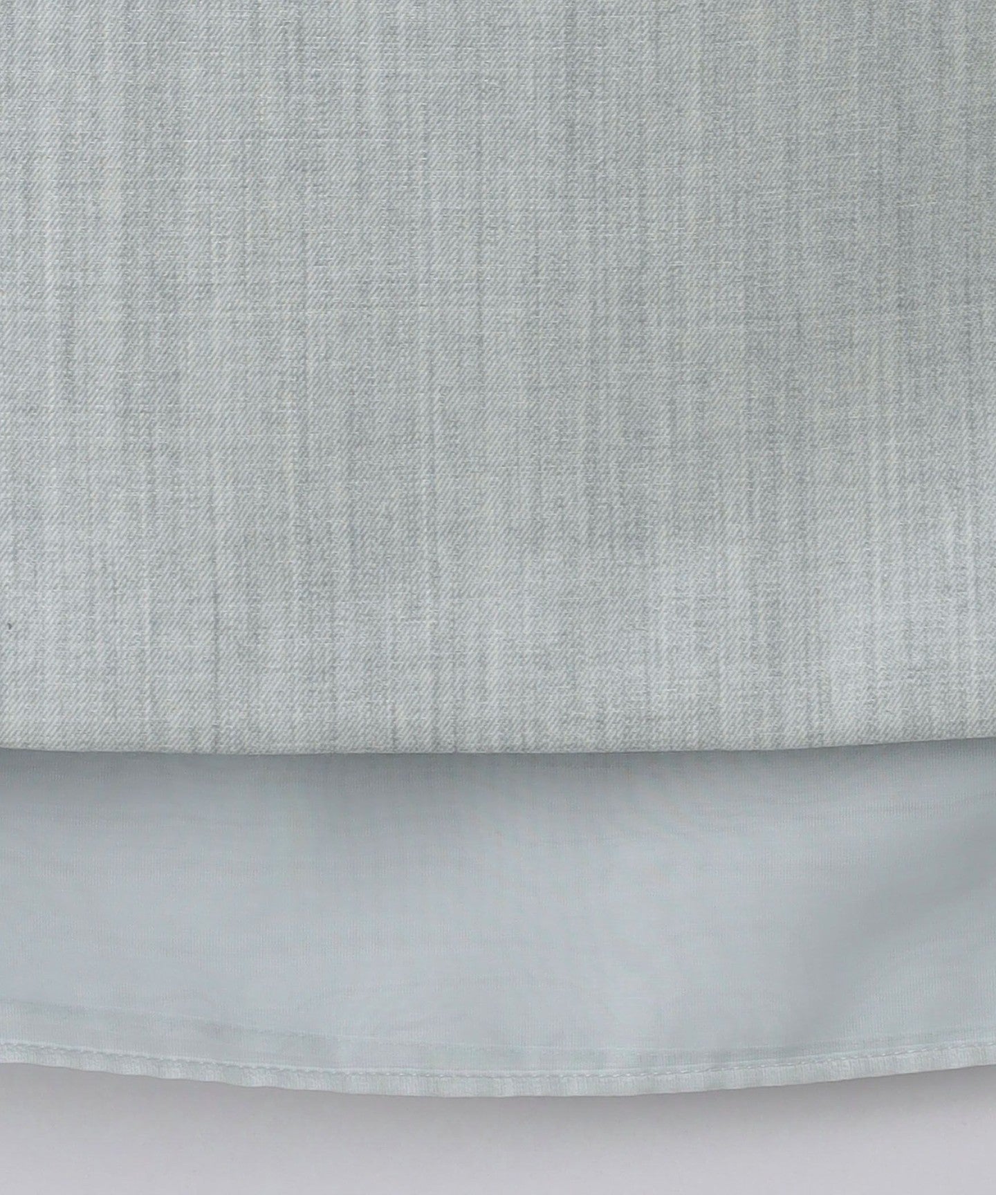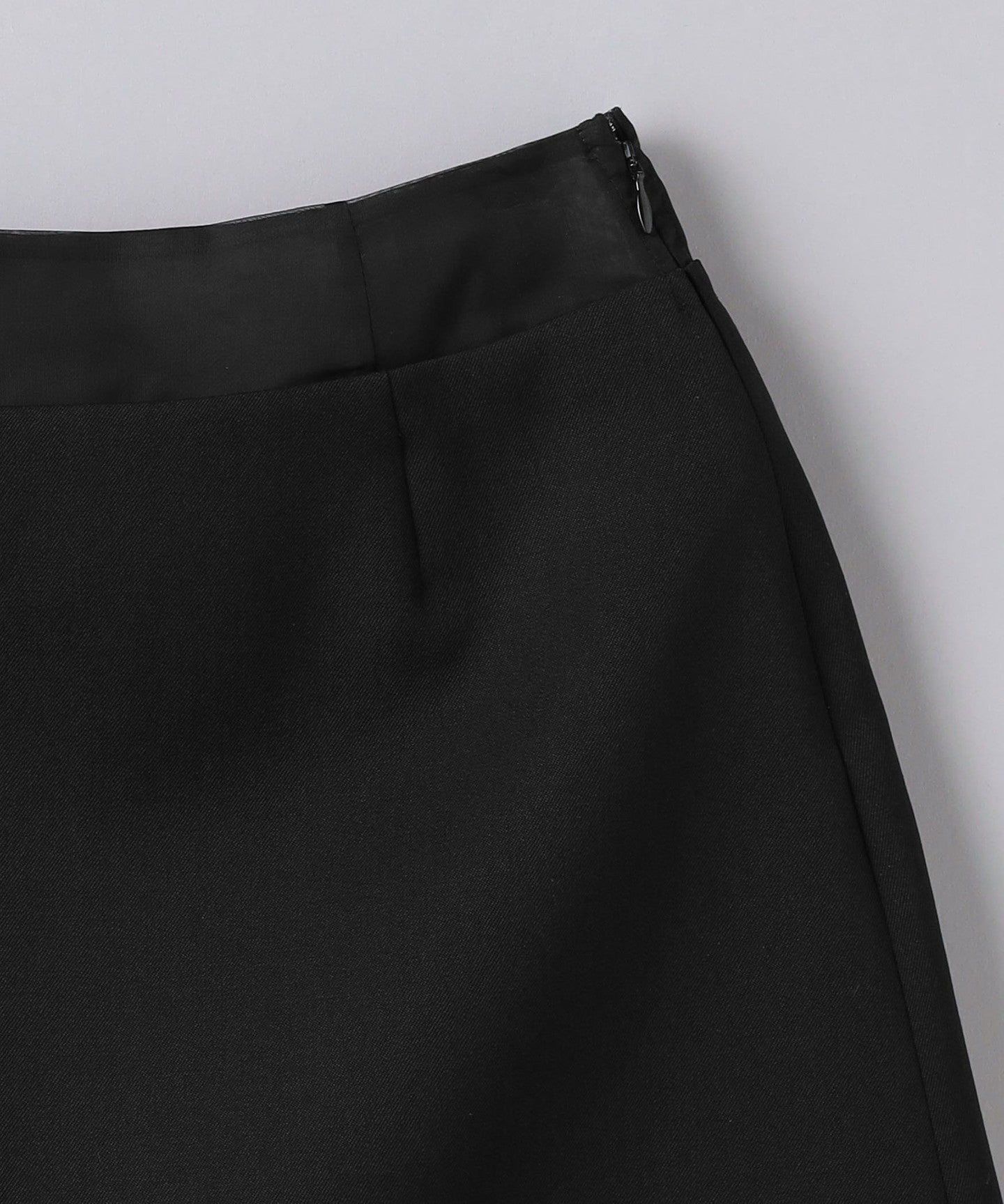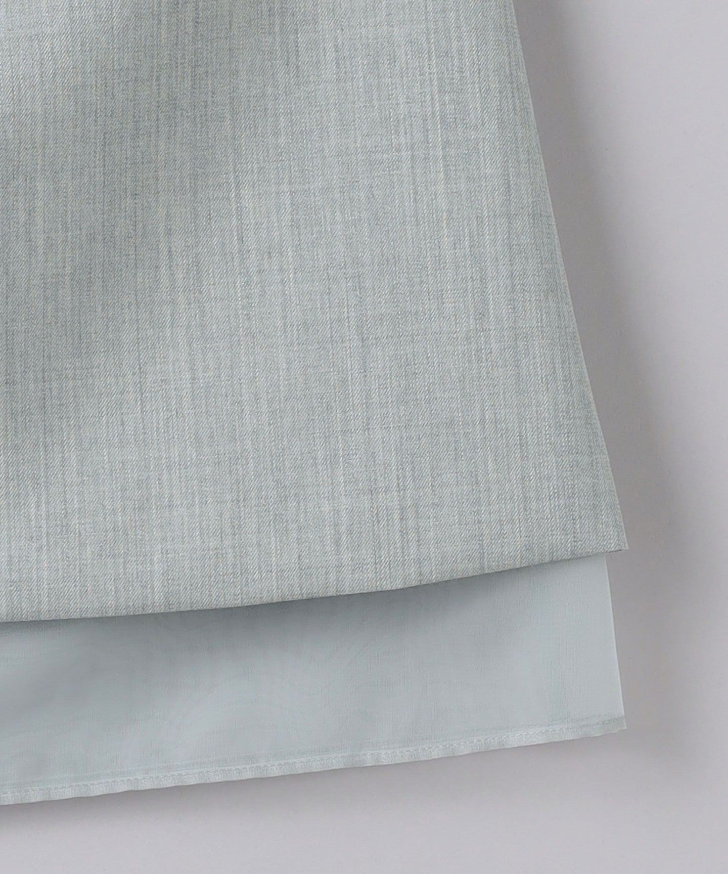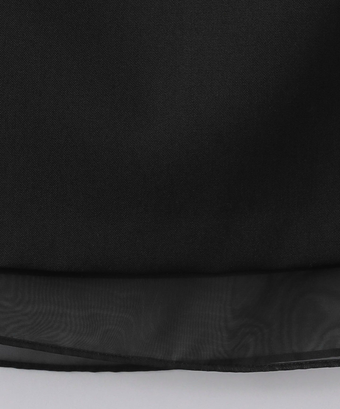 This trapezoid mini skirt features a different material, organza, at the waist and hem.