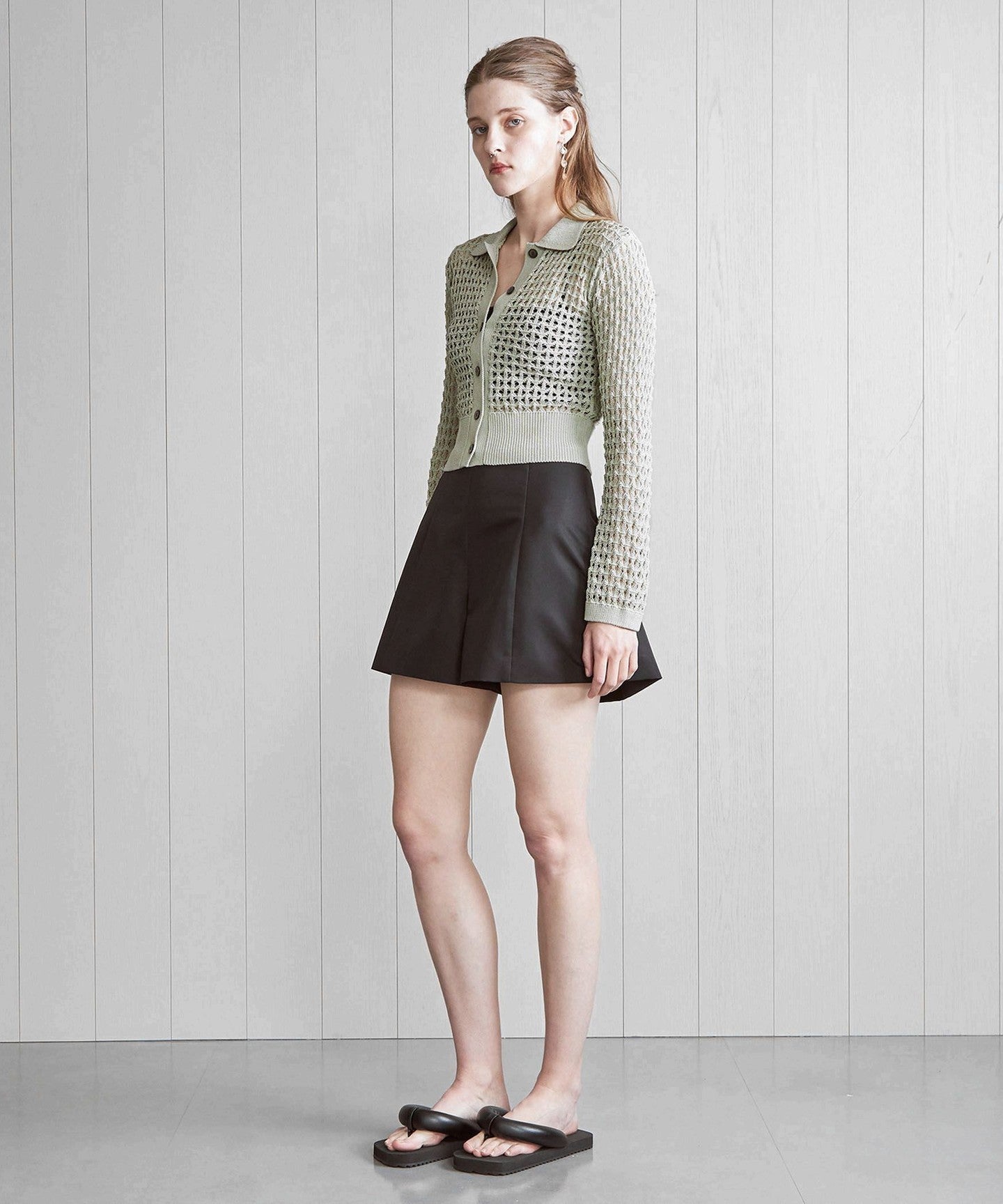 These shorts feature a flared silhouette reminiscent of a miniskirt.