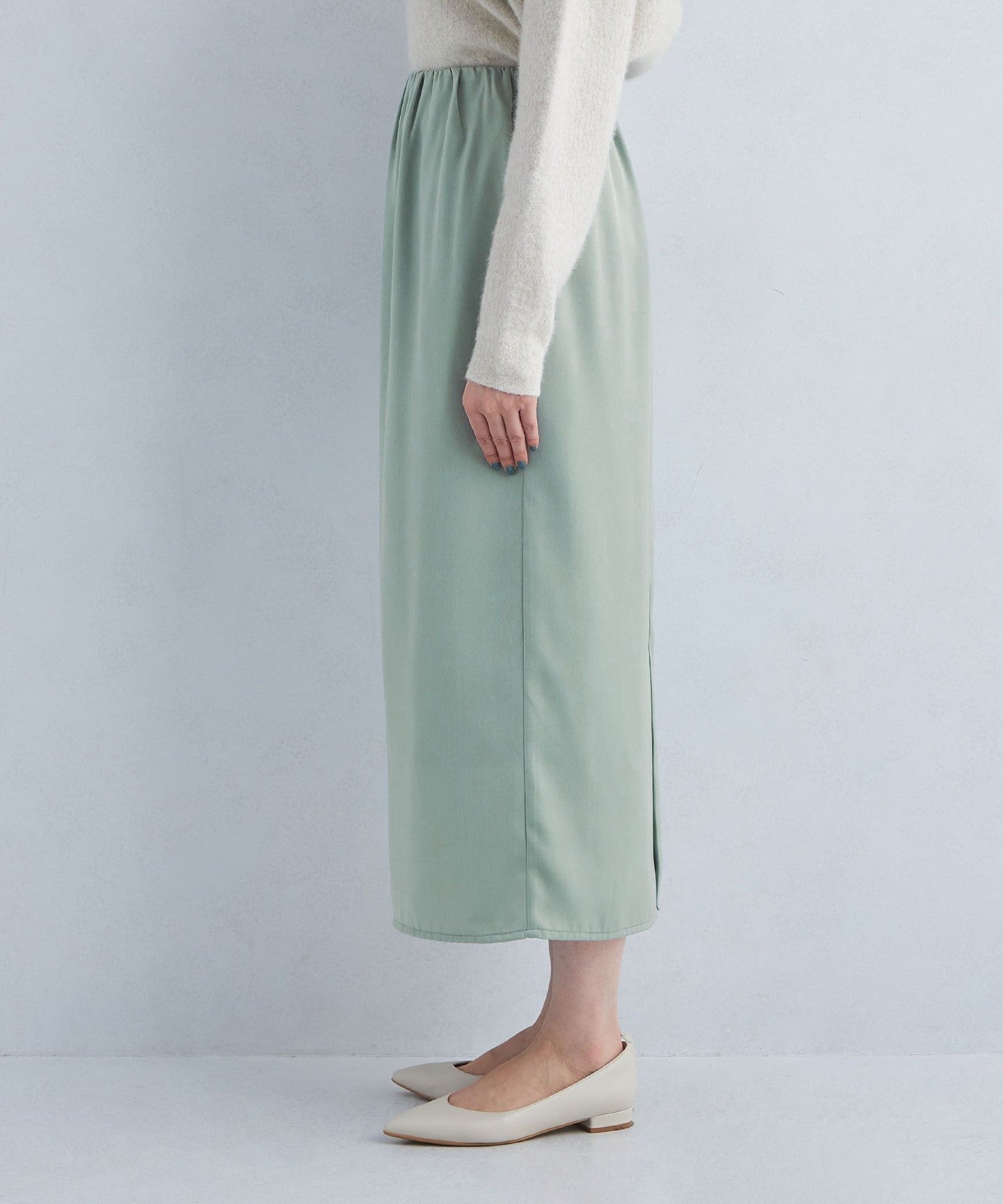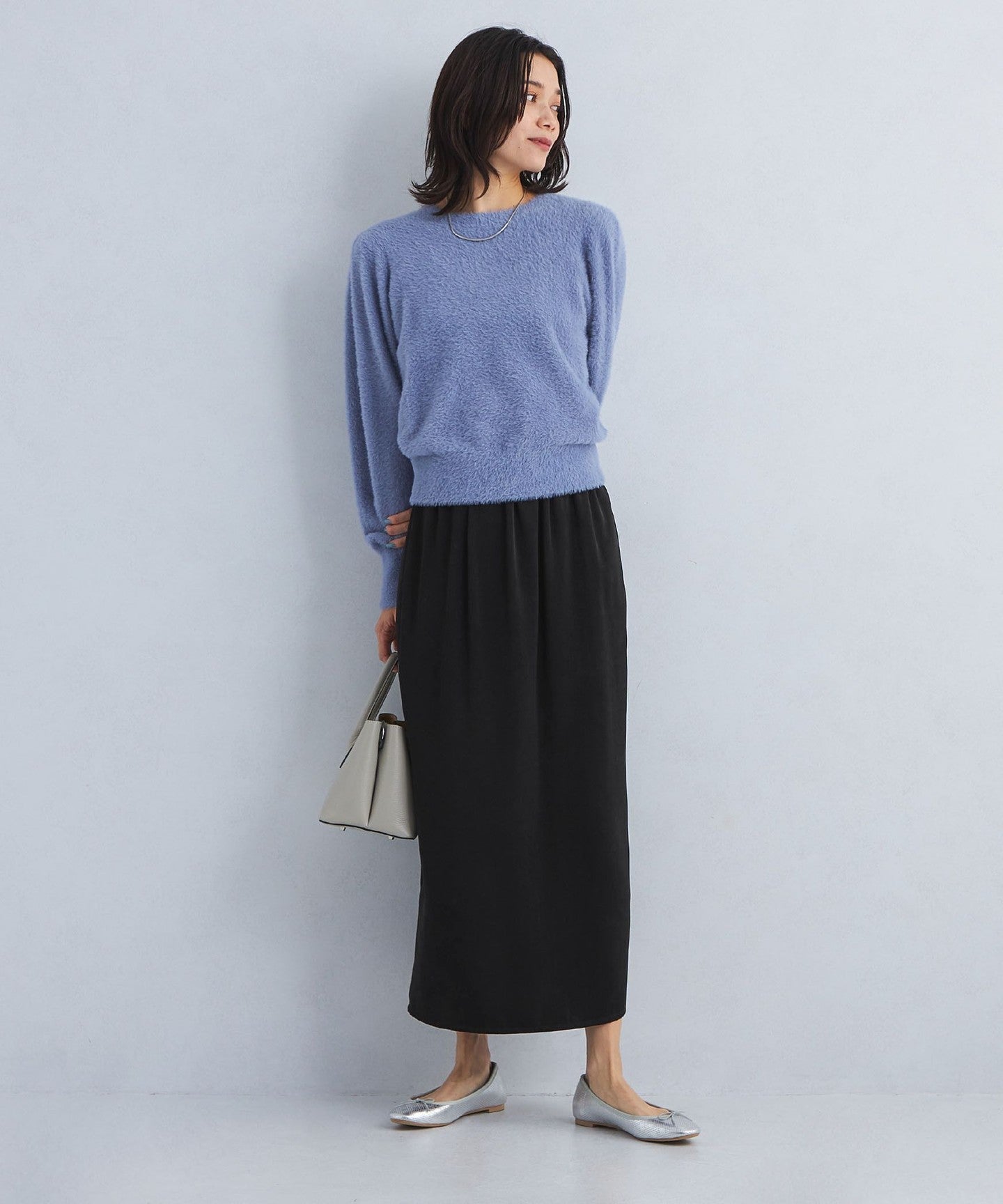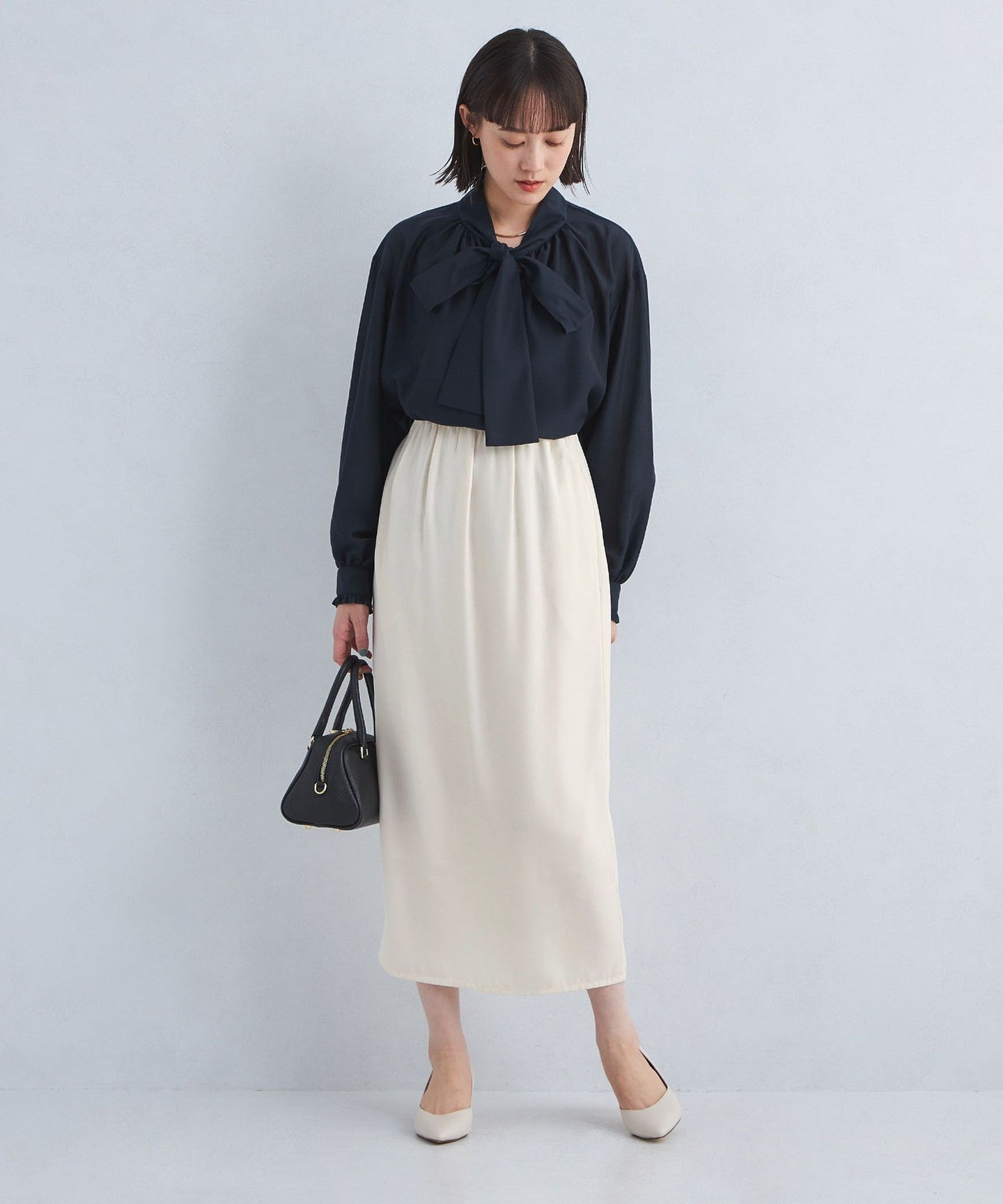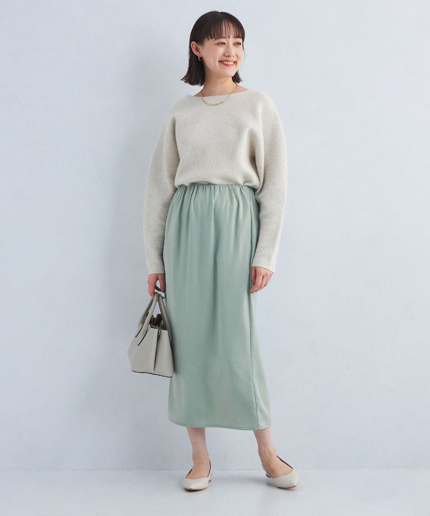 It goes well with a neat style with a compact knit or blouse tucked in.