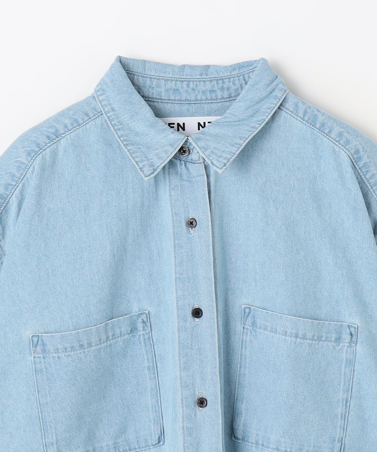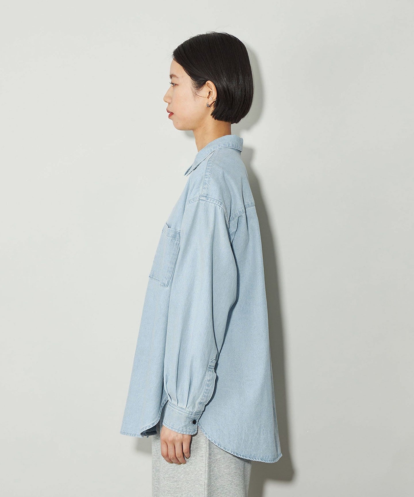 This denim shirt is not too casual, made from light-weight denim that is more dress-like than work-style, and has been bleached to give it a solid look.