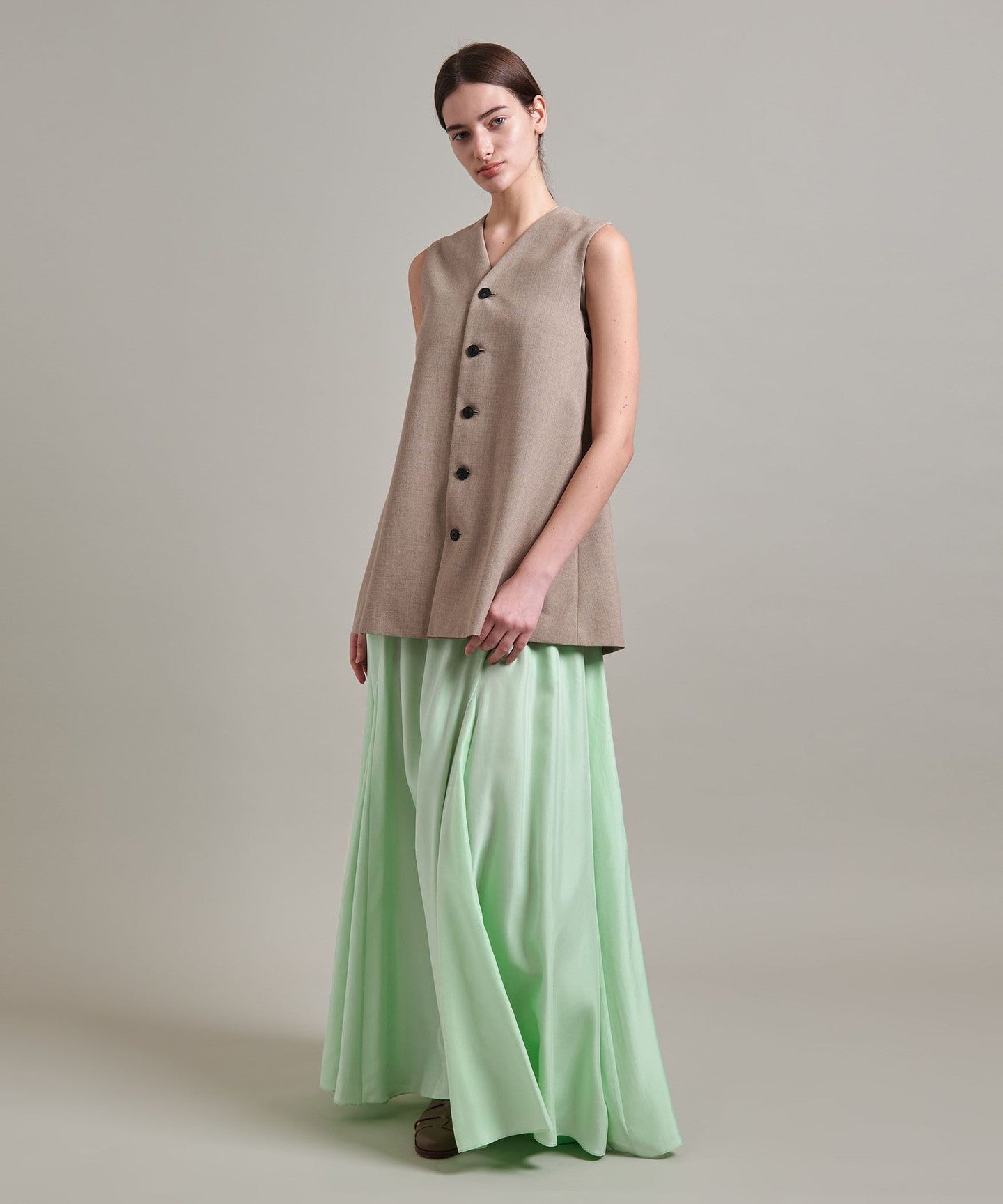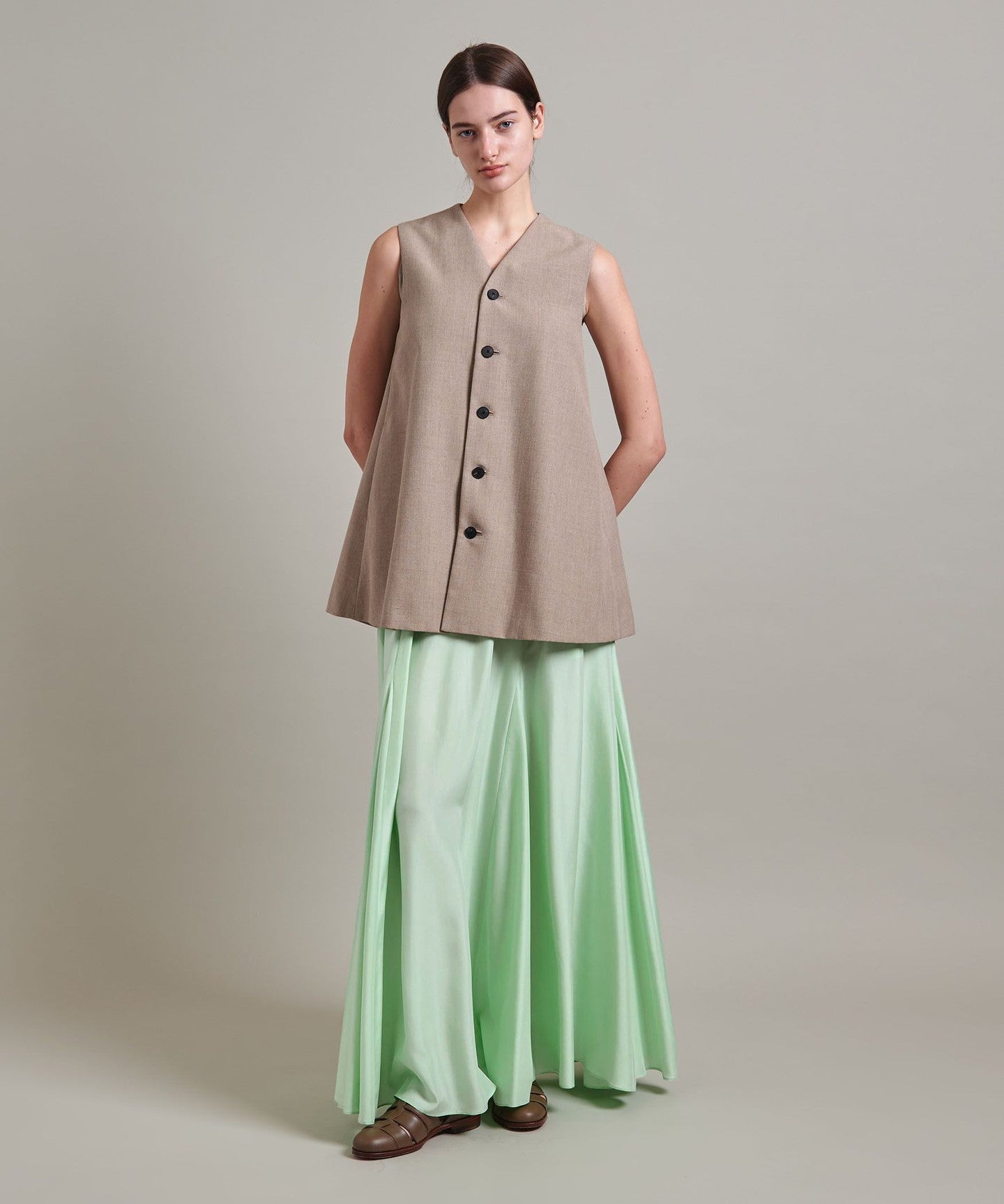 It goes well with a simple T-shirt or summer knit, and we also recommend pairing it with a vest for a trendy look.