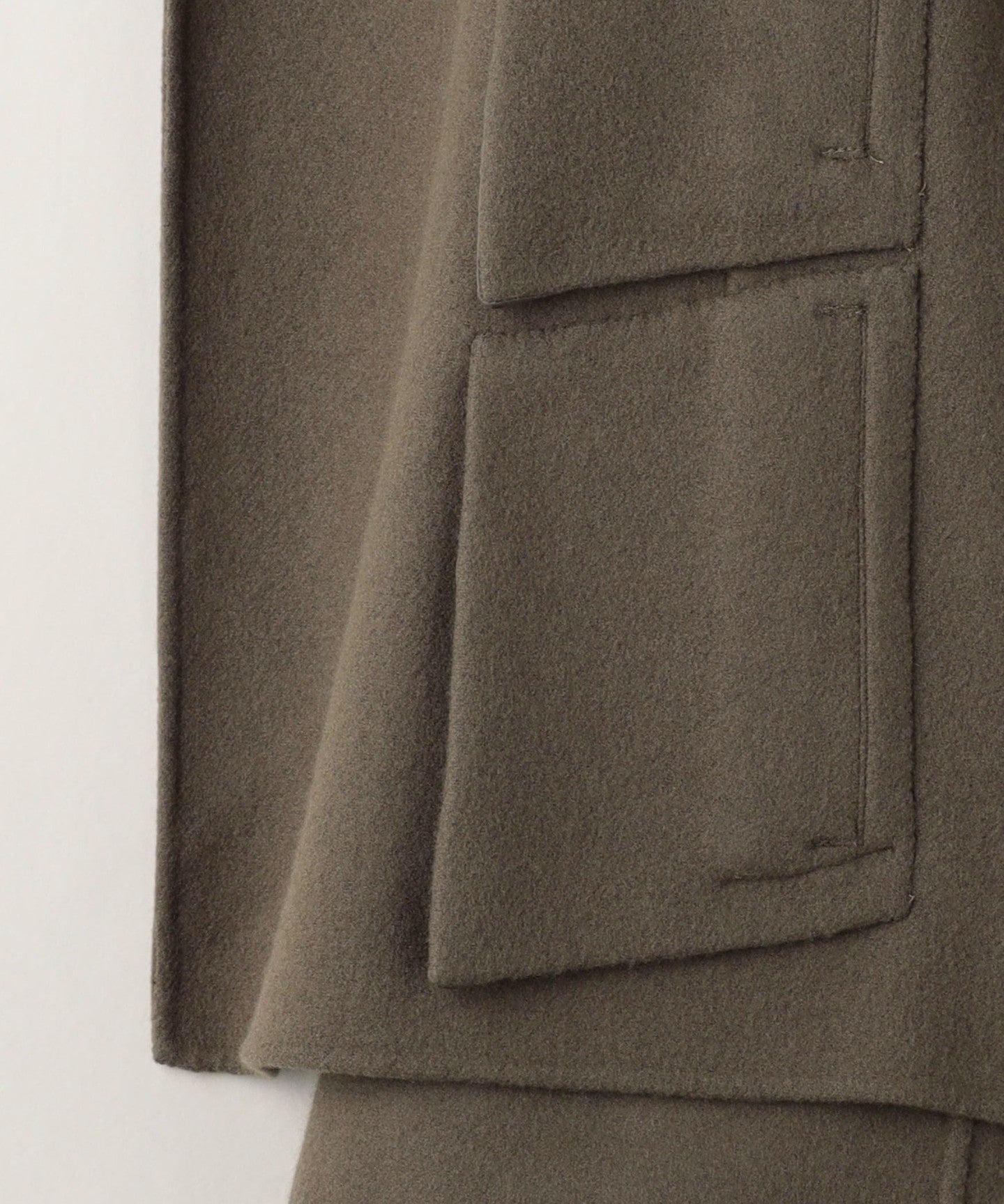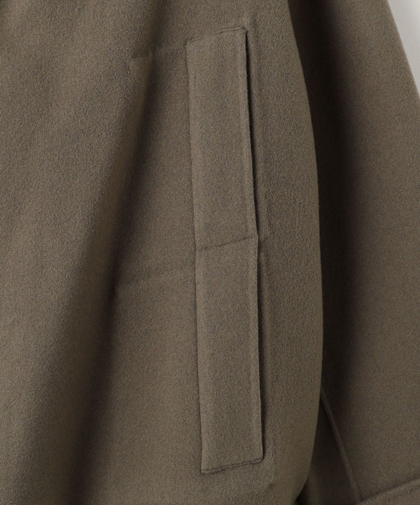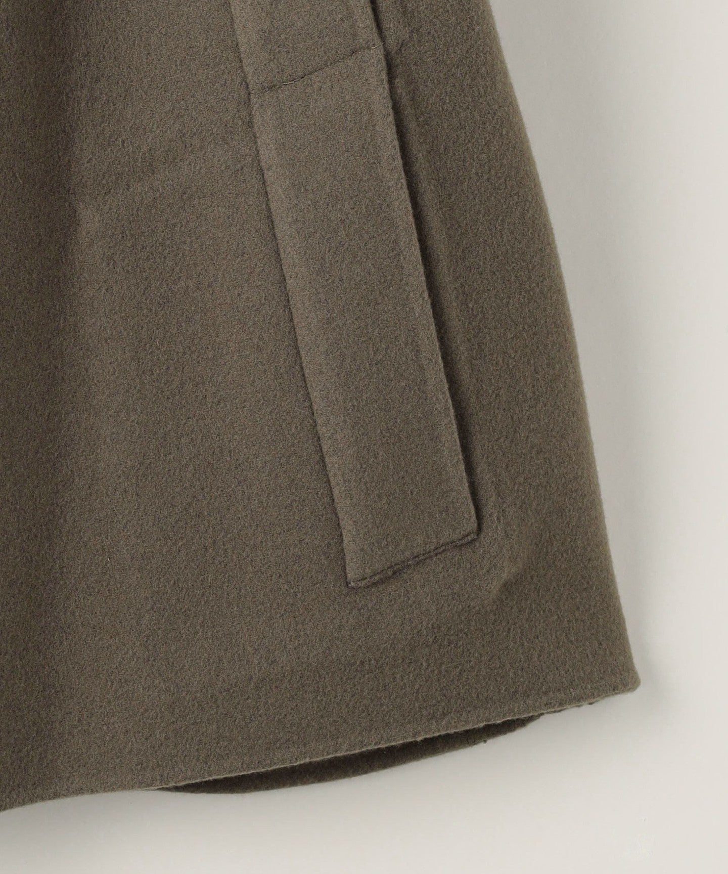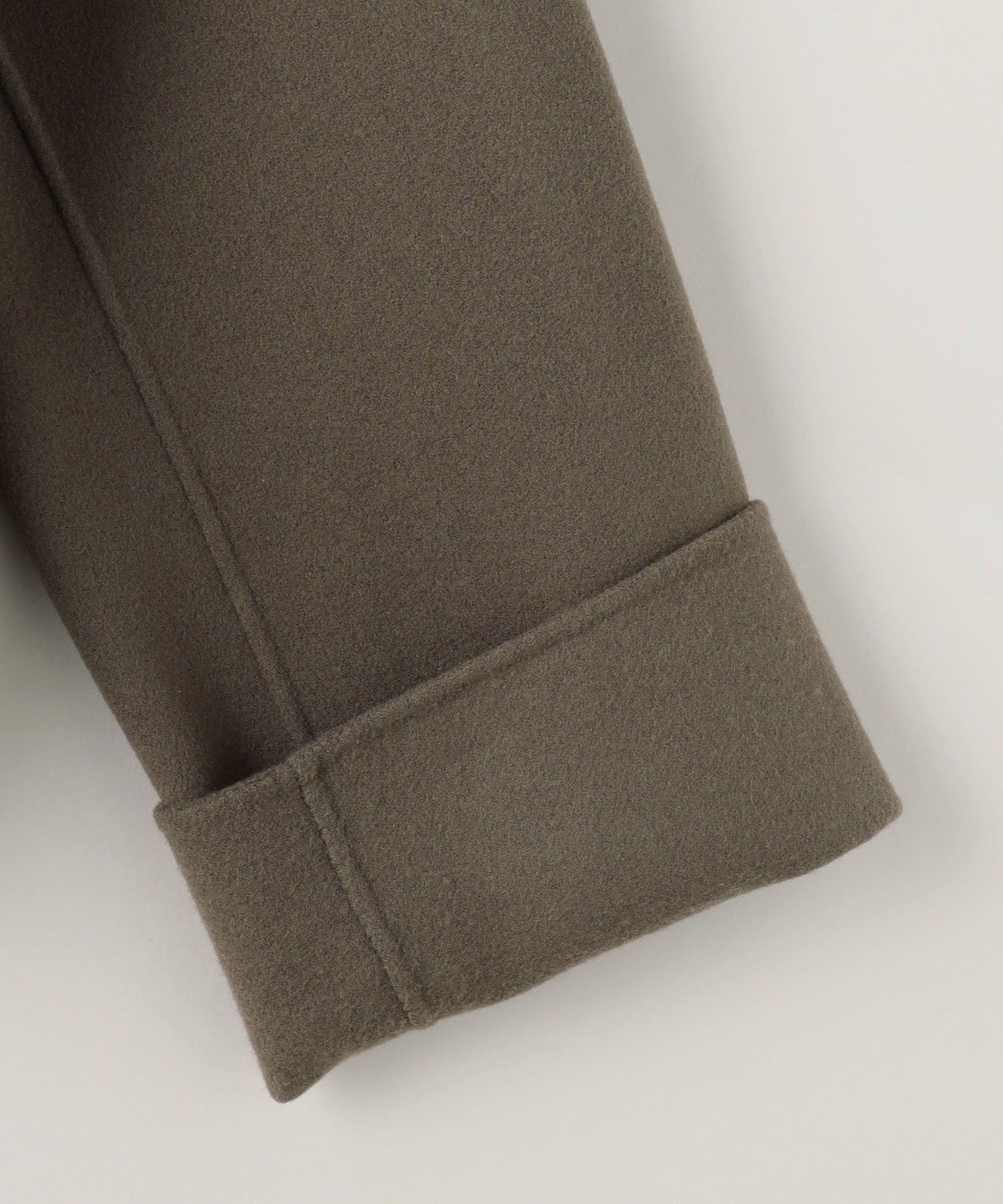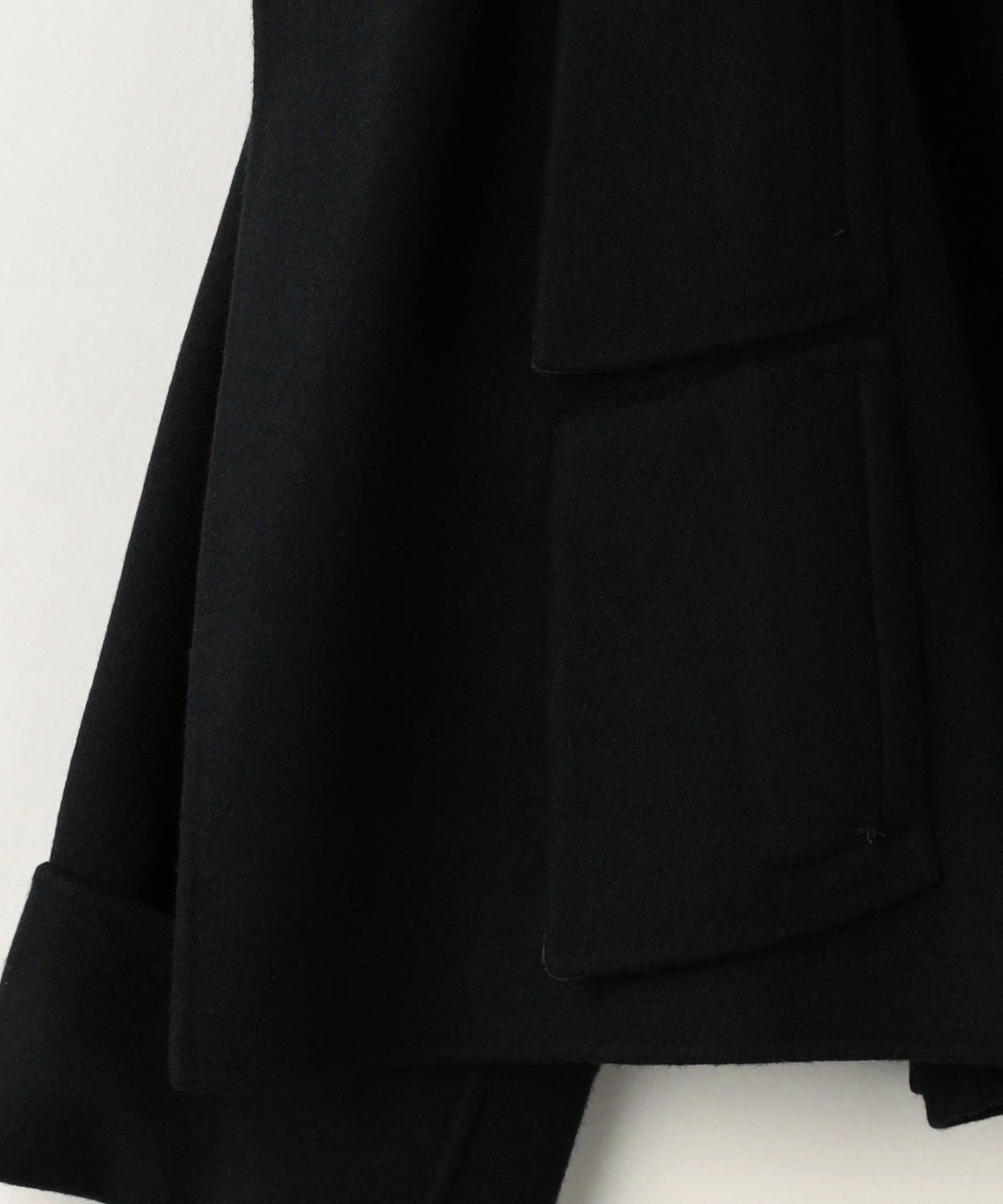 A short hooded coat with a hood that looks like a stole and a relaxed silhouette.