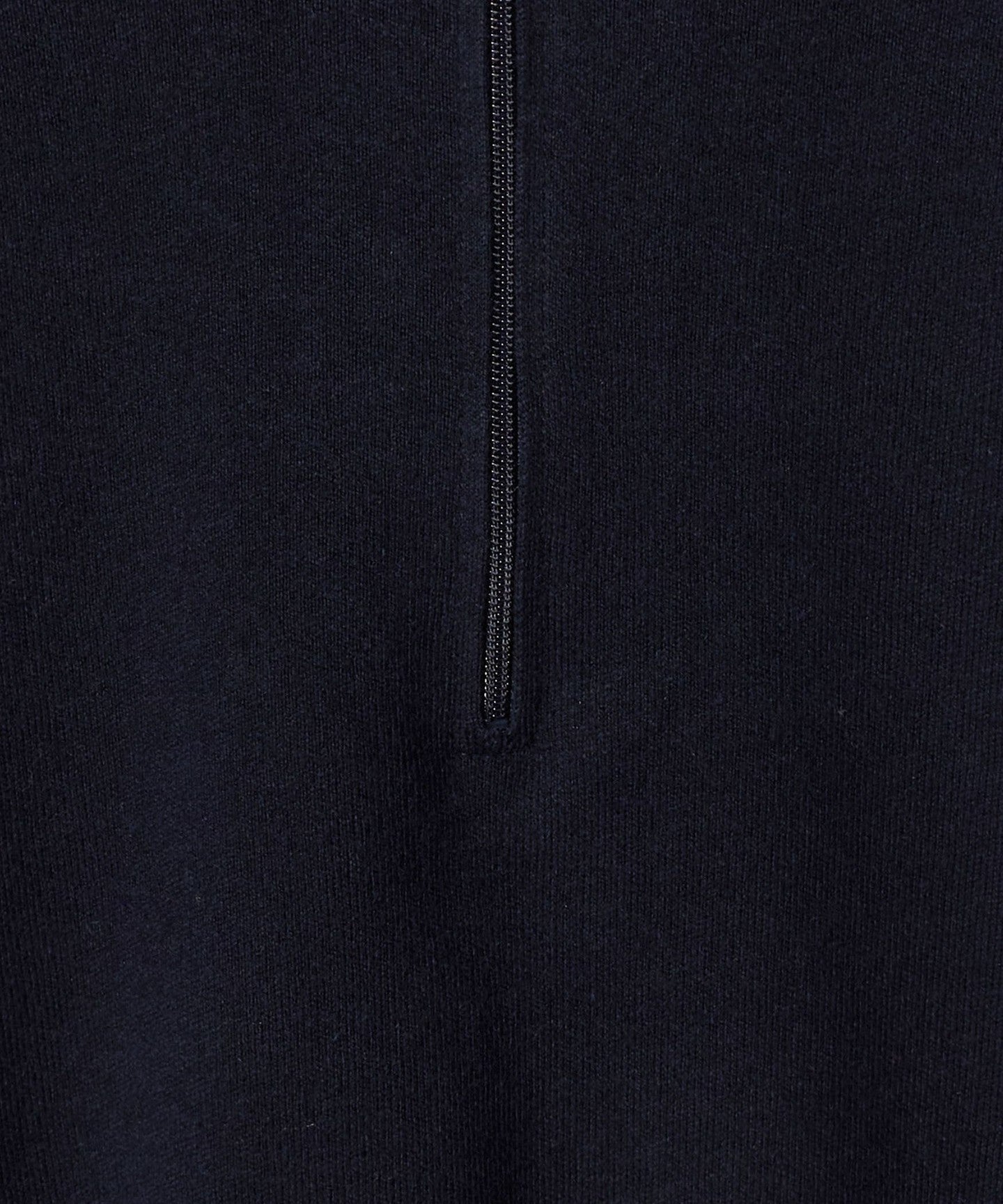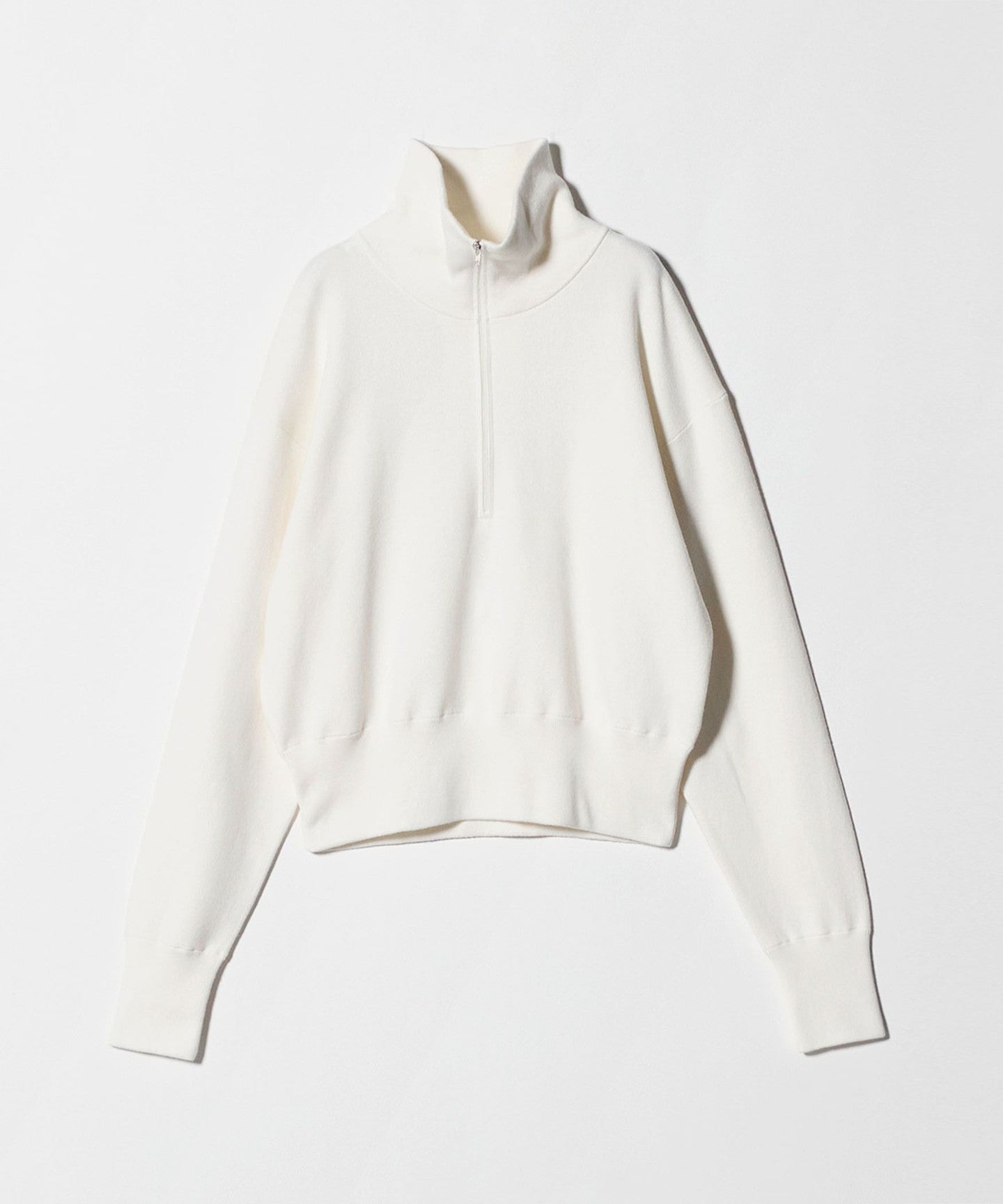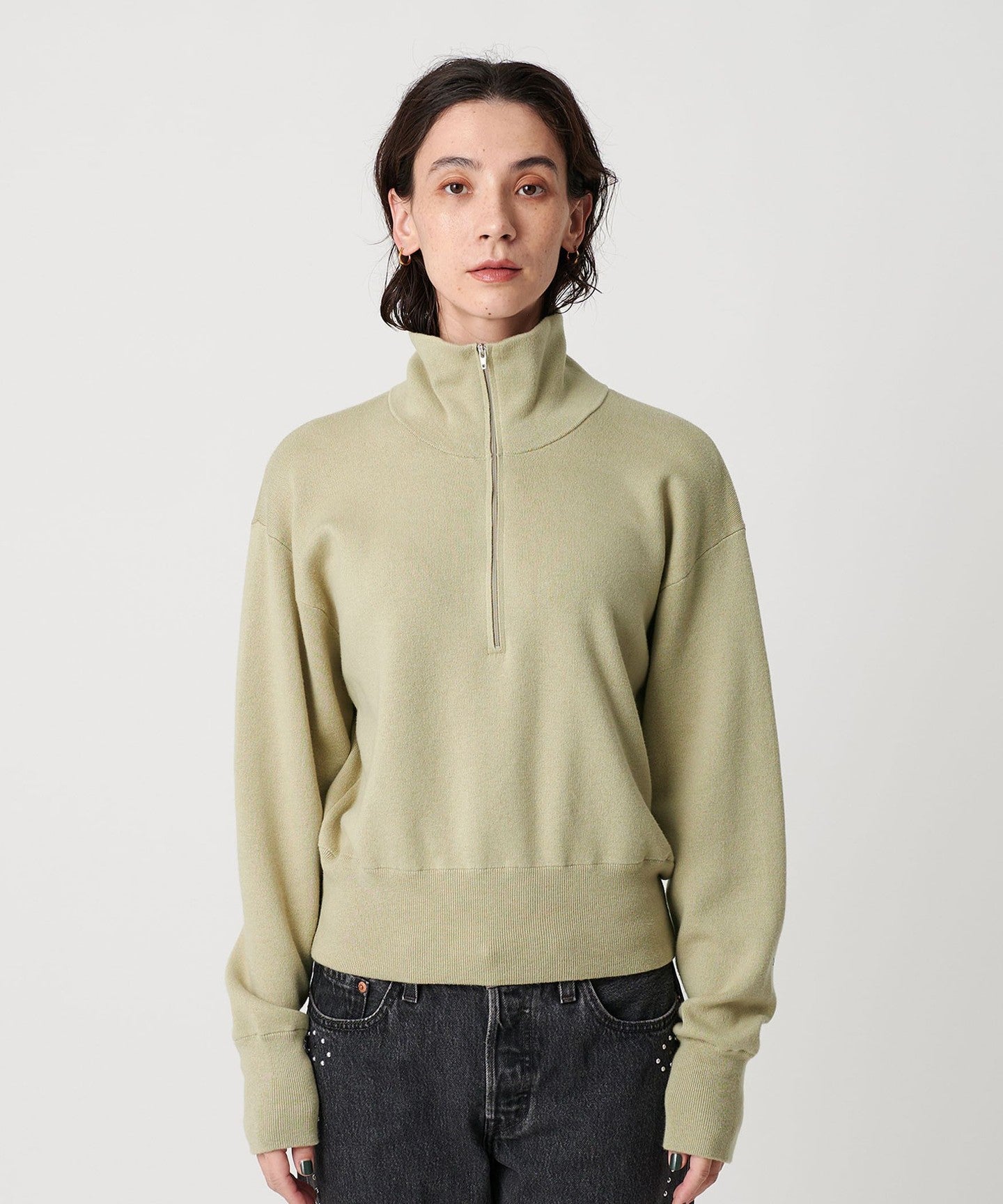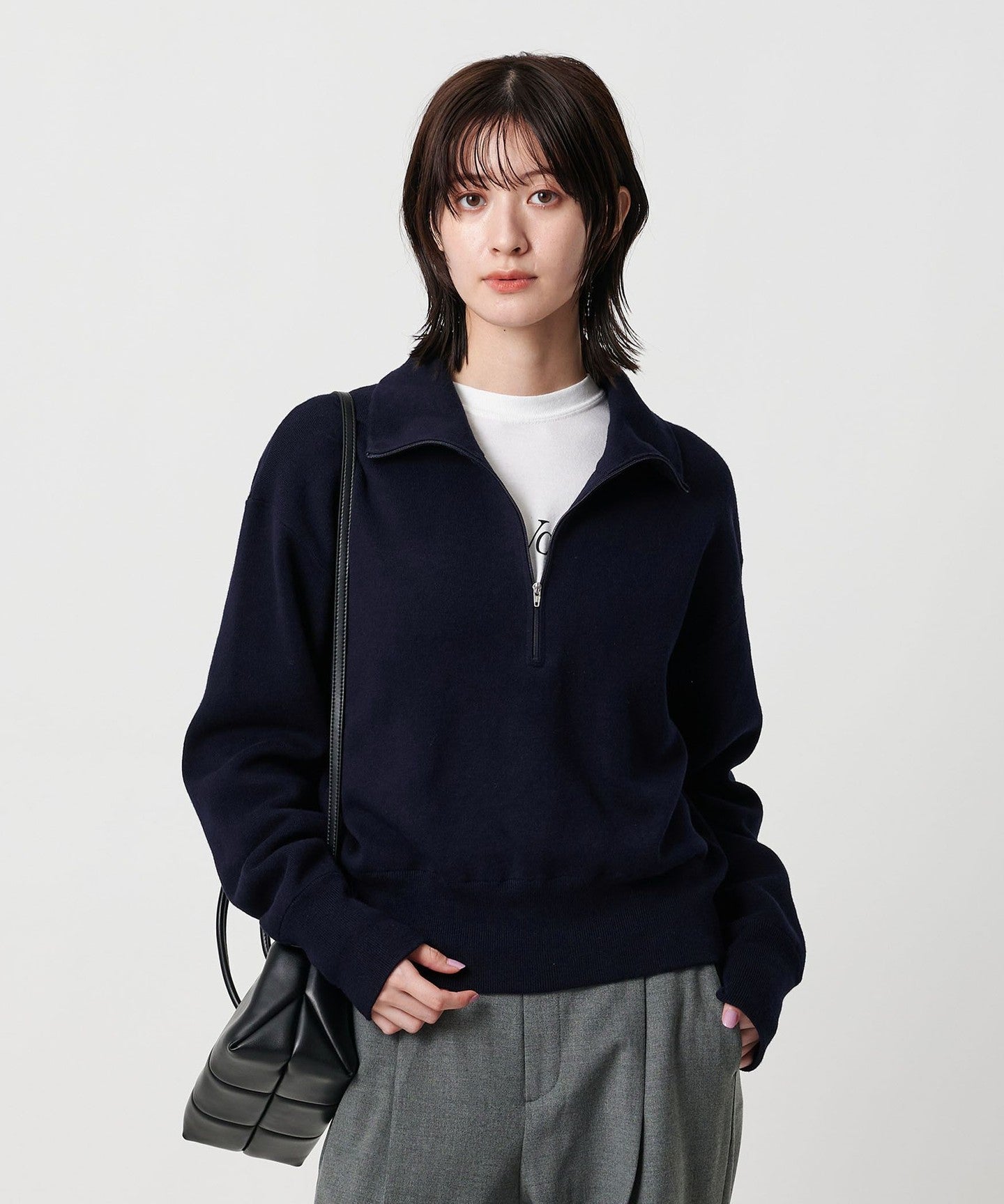 This pullover features a half-zip design and is made from sweatshirt-like knit fabric, giving it a casual yet elegant feel.