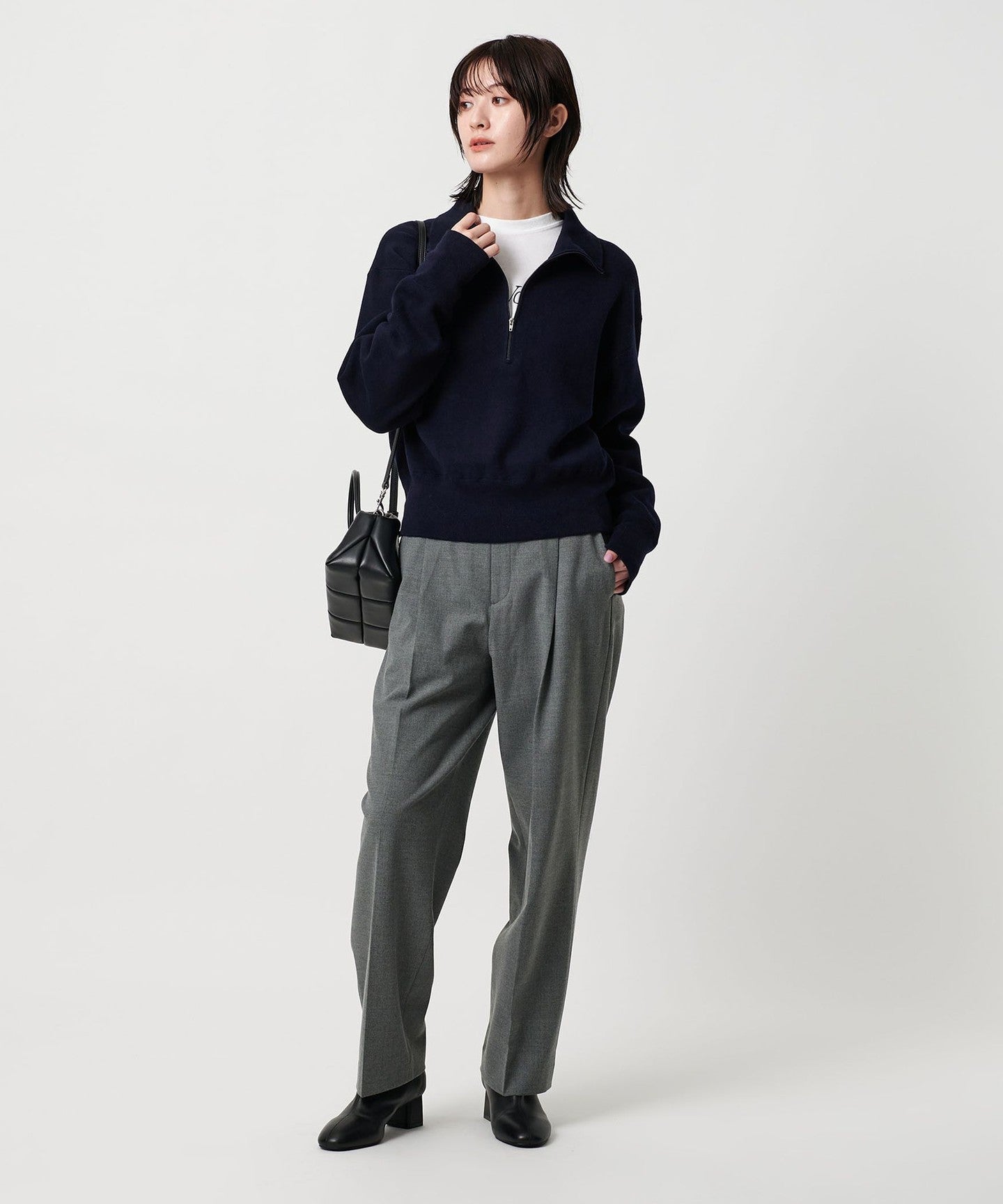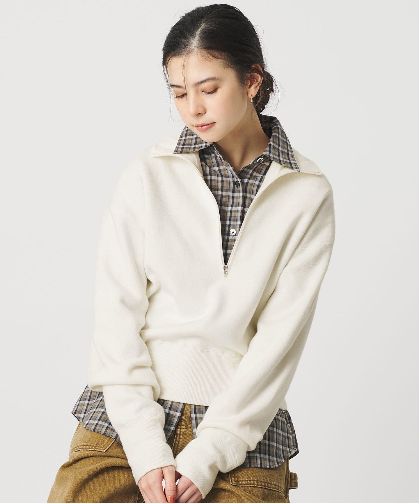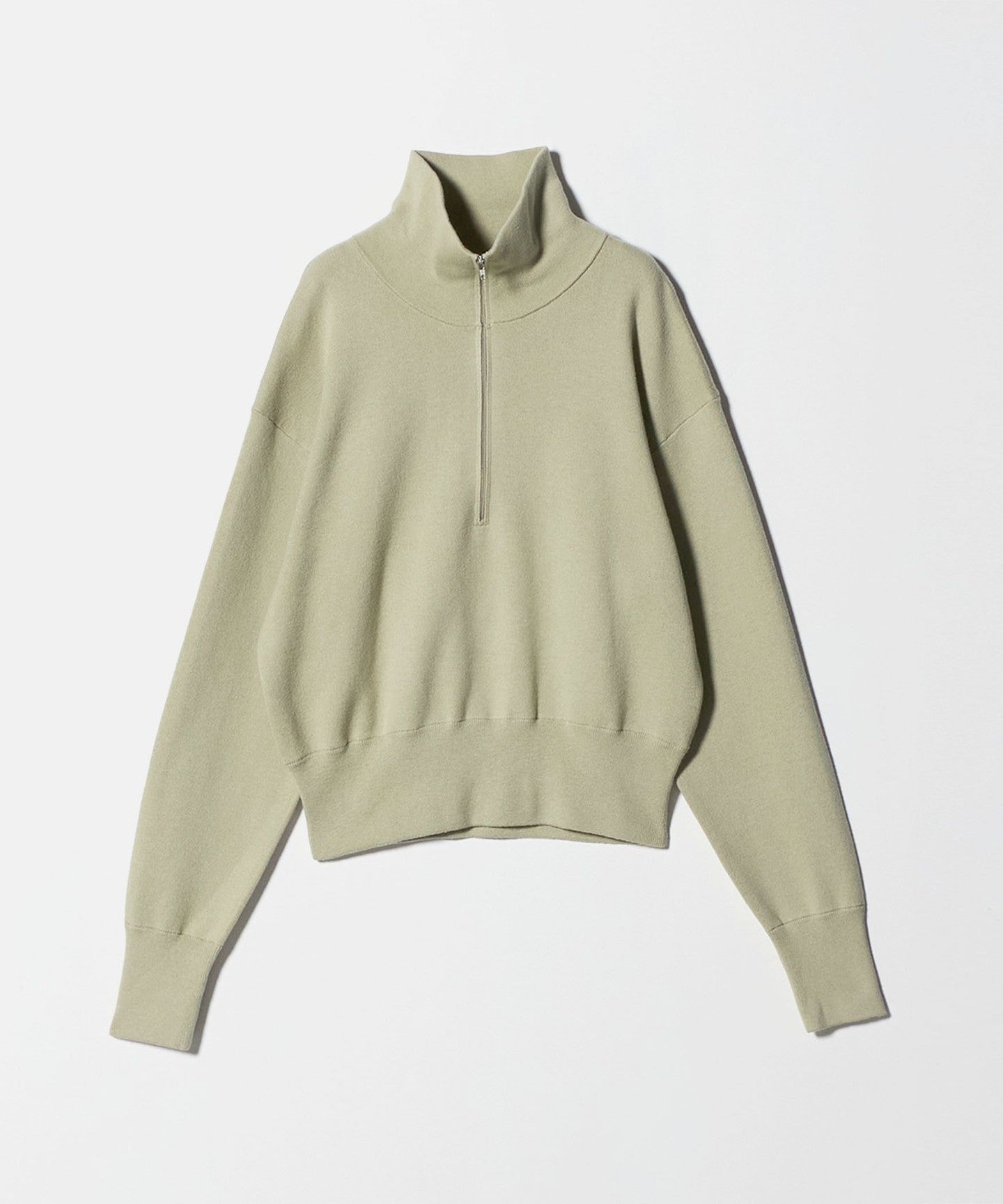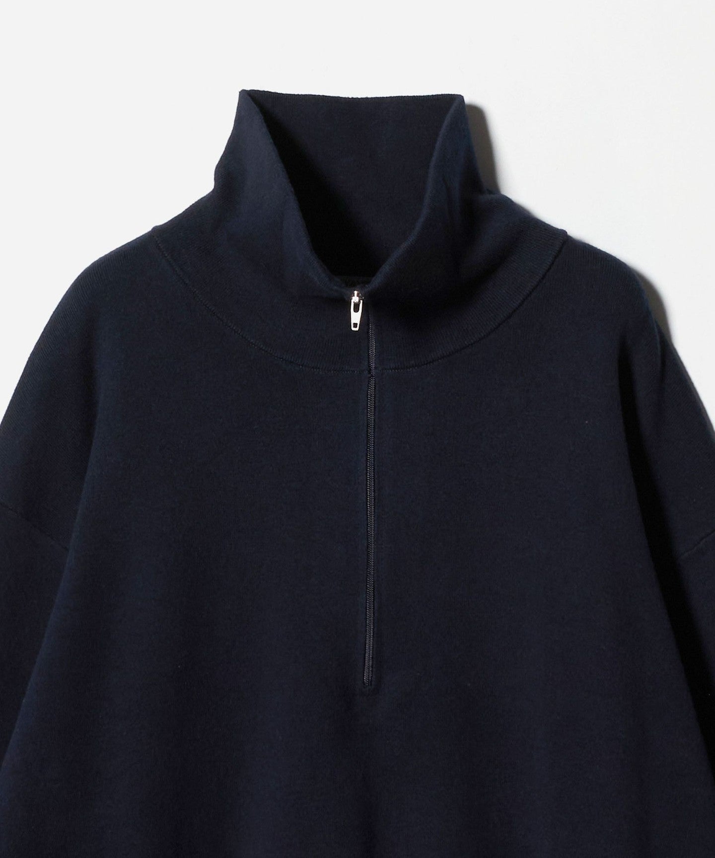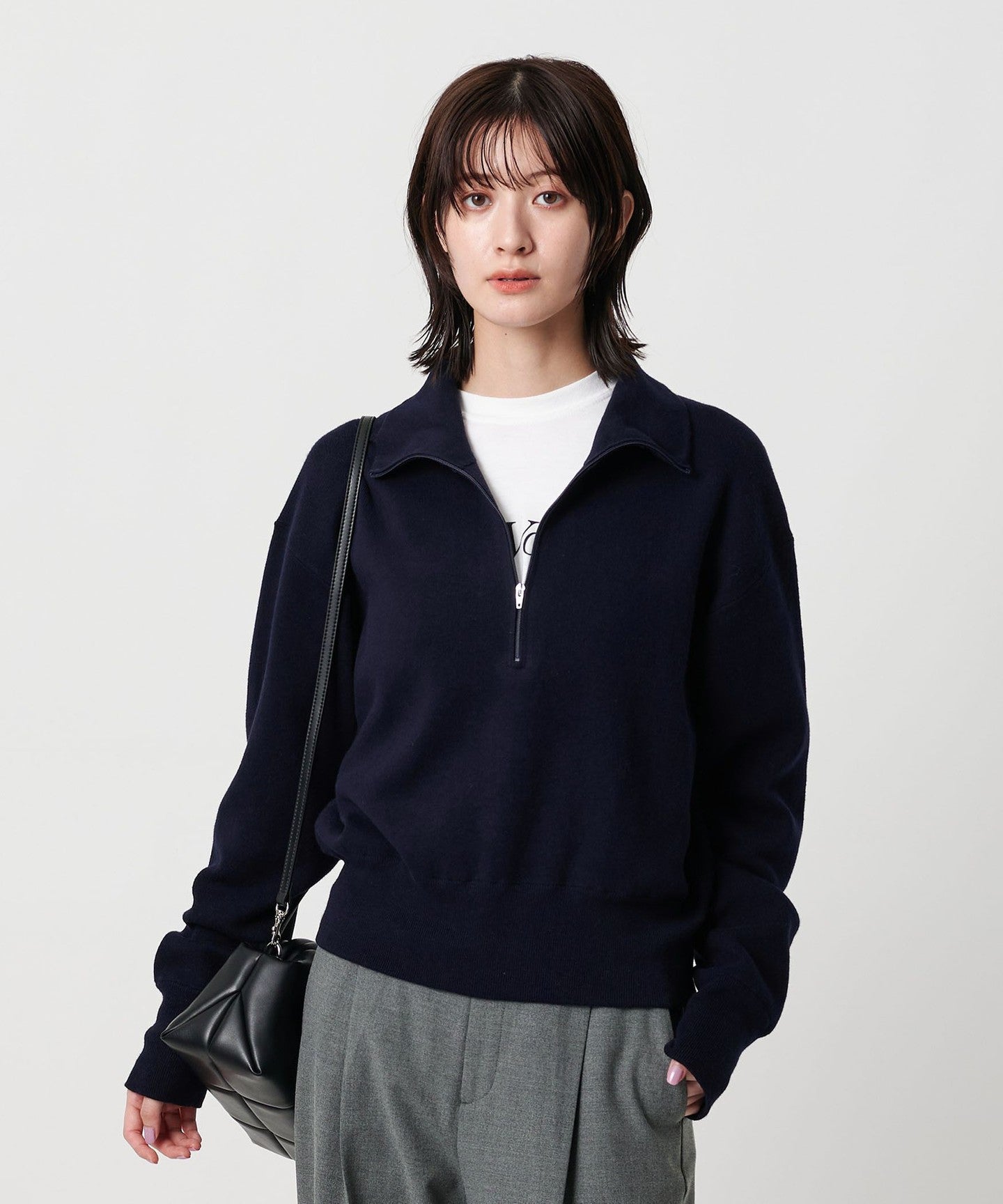 This pullover features a half-zip design and is made from sweatshirt-like knit fabric, giving it a casual yet elegant feel.