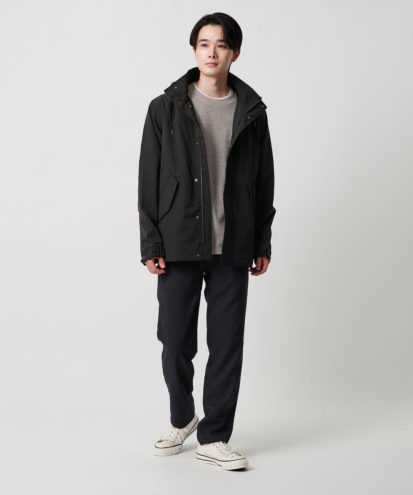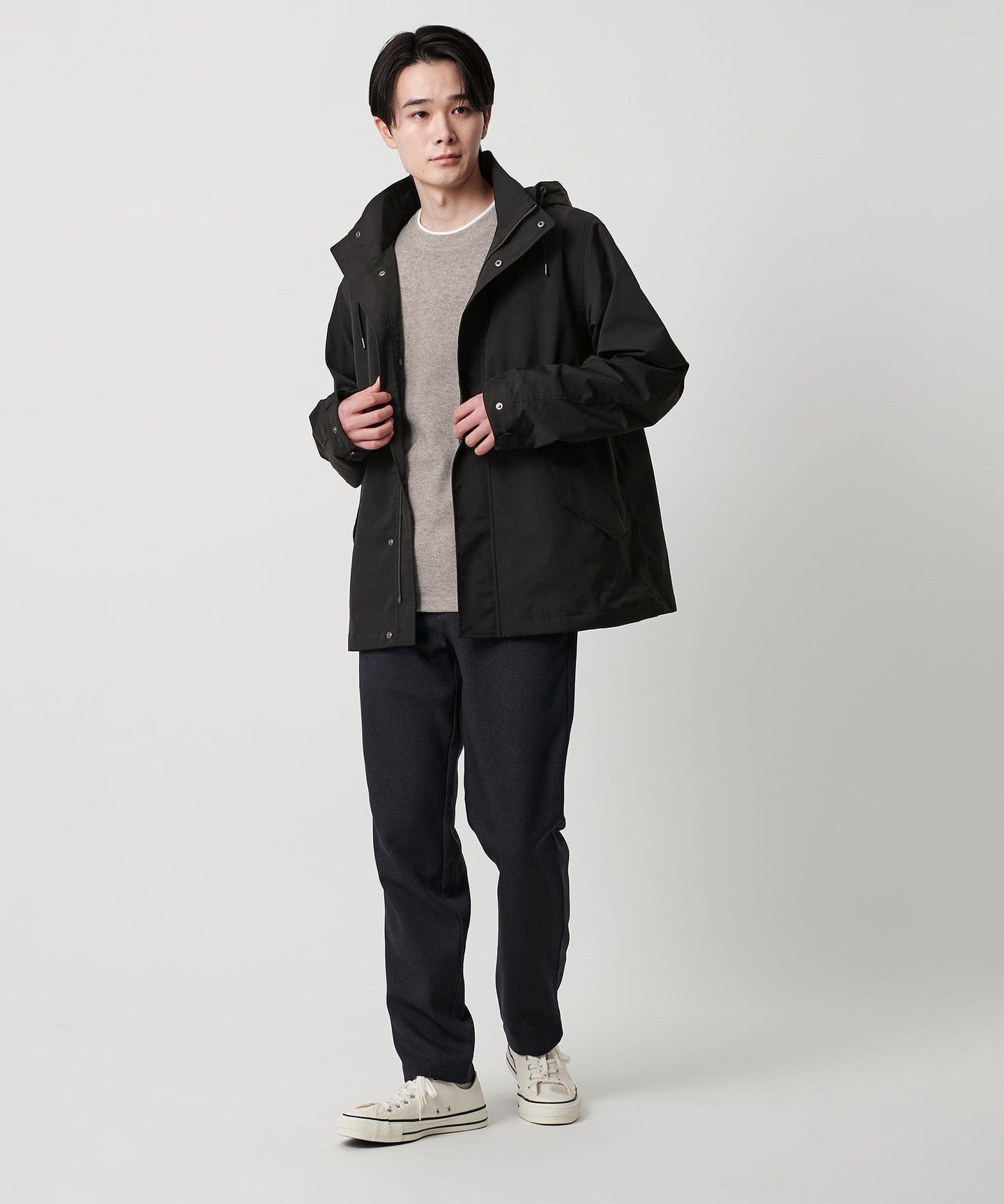 The design retains the details of a mod coat, giving it a moderately casual feel.