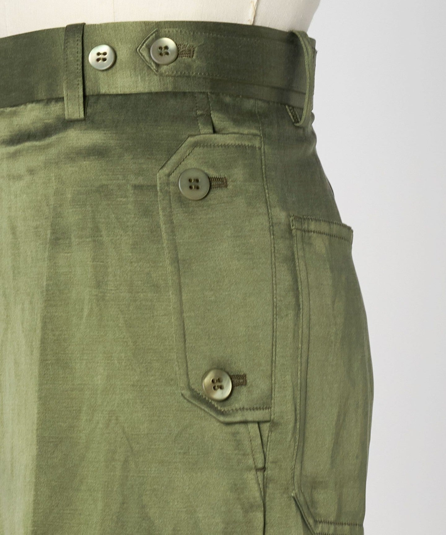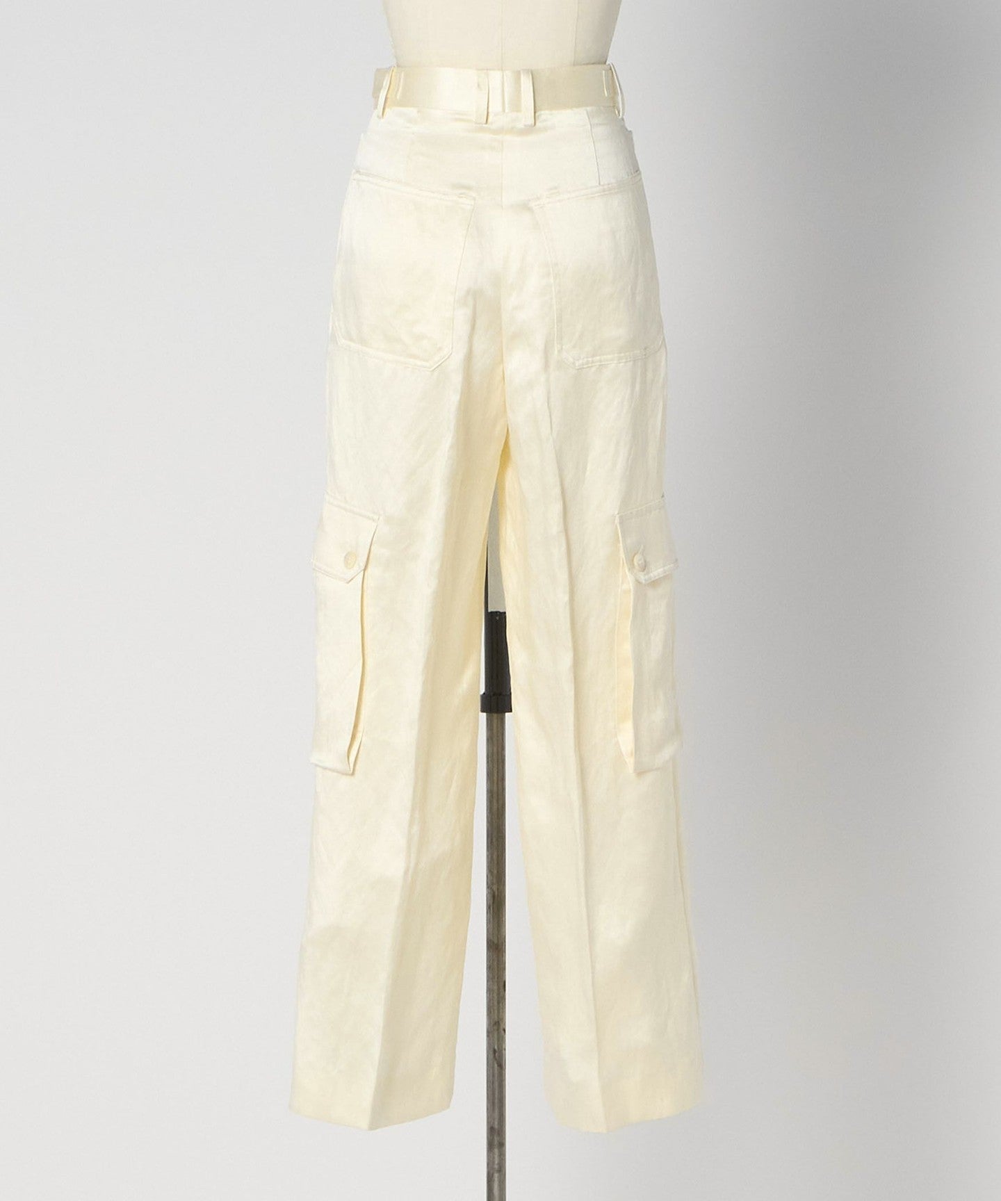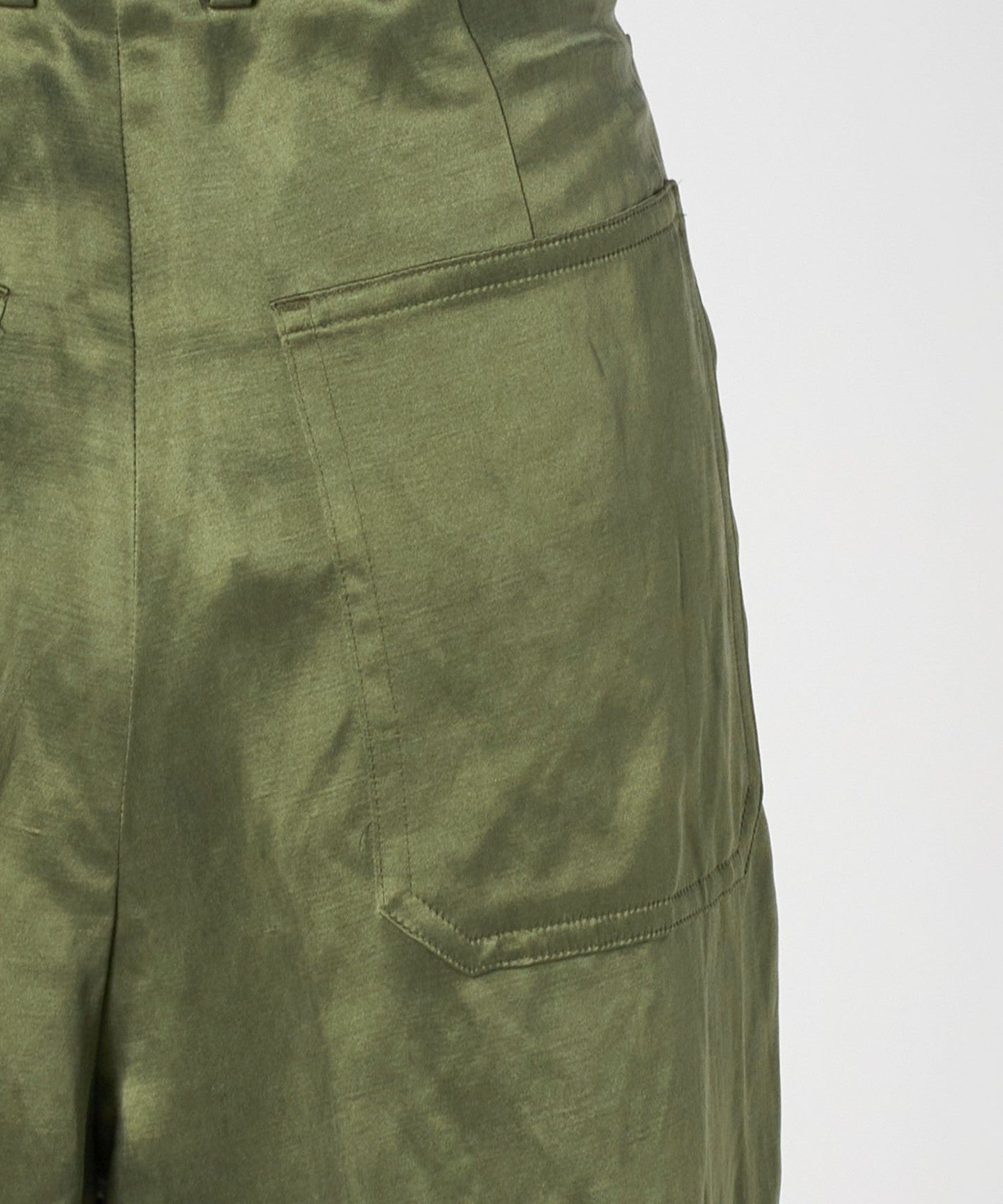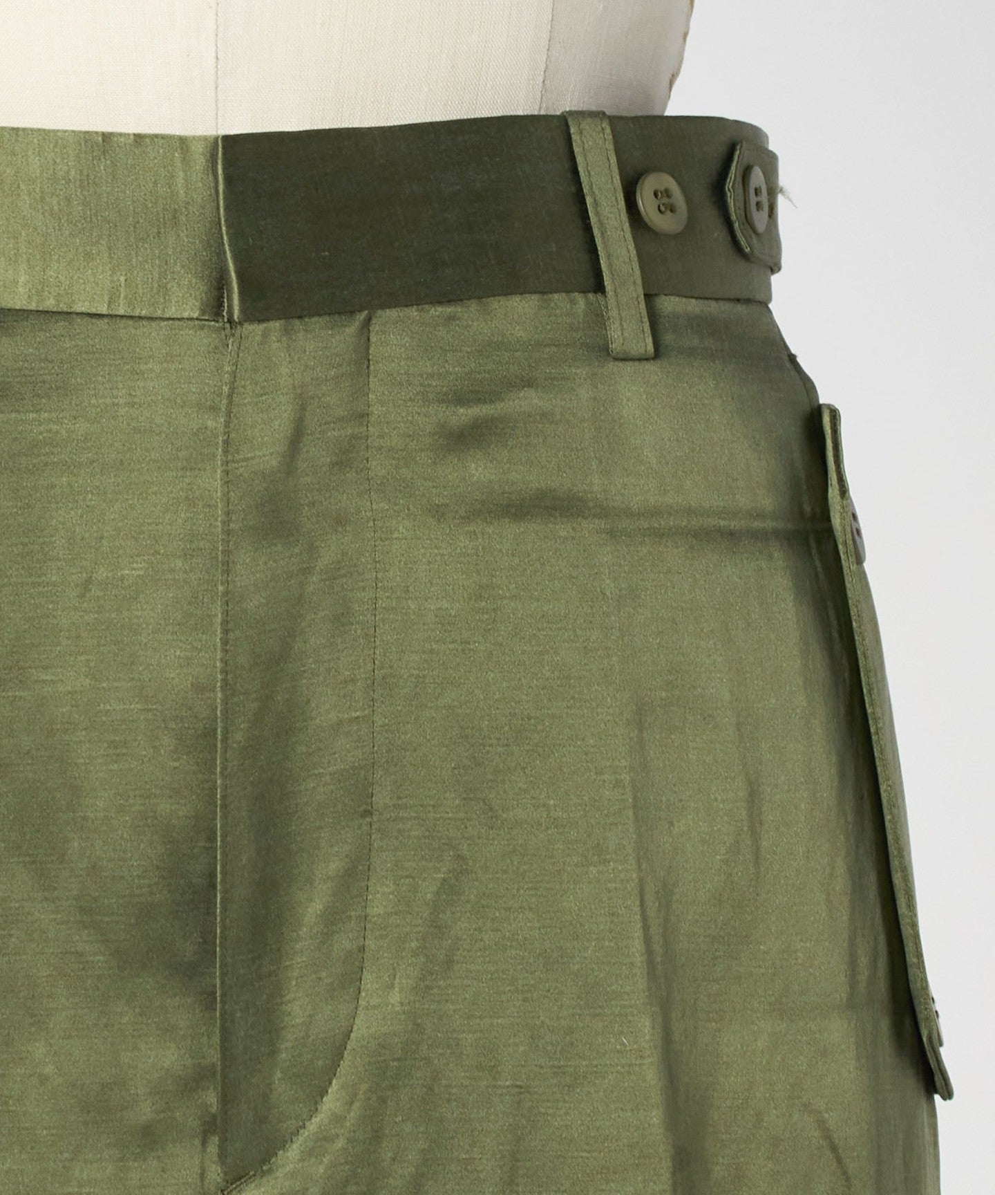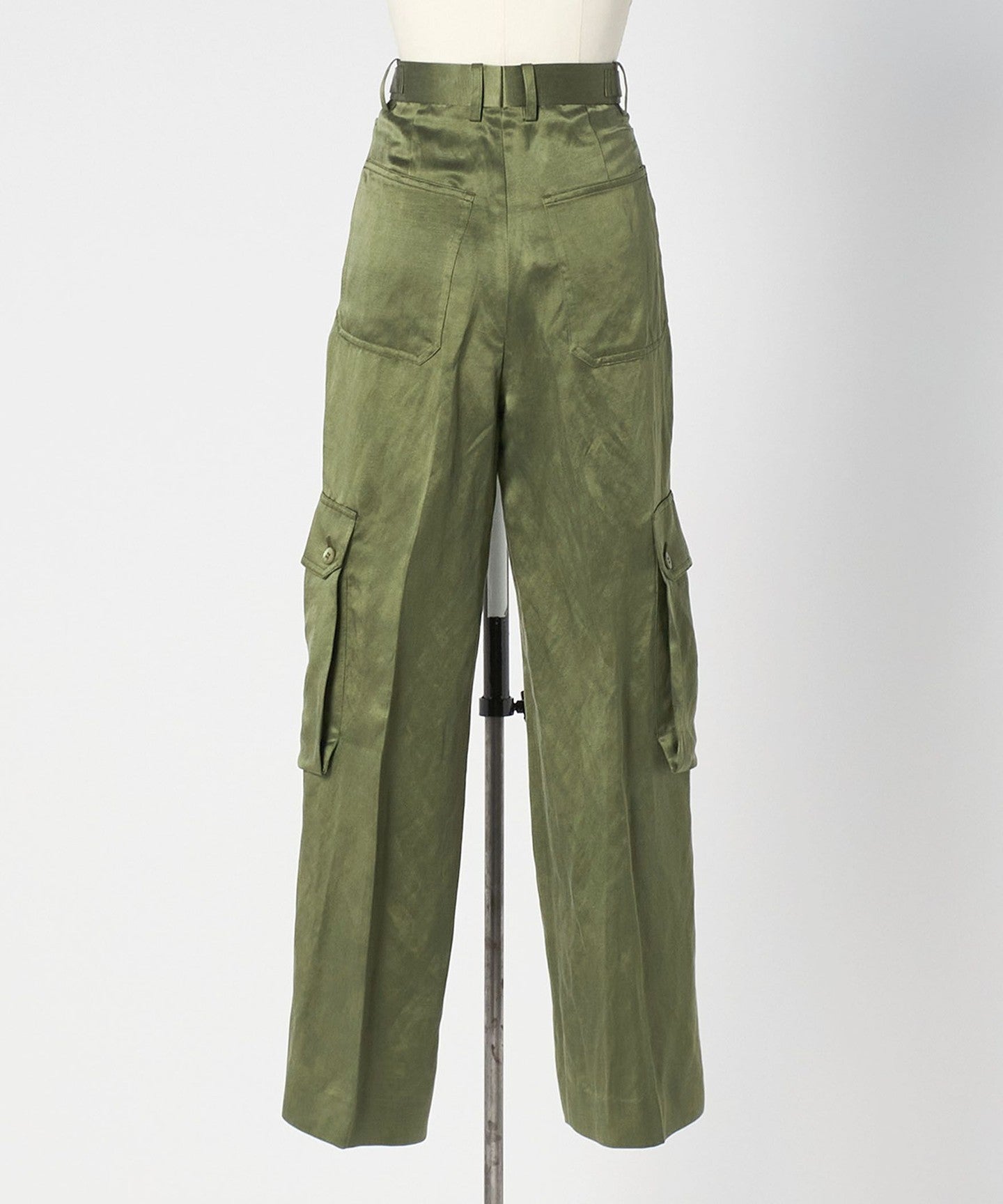 These pants are made of satin material that has been processed to resemble vintage cloth, giving them an elegant and sophisticated look.