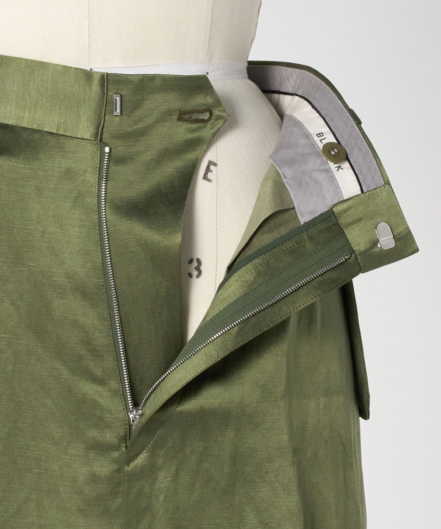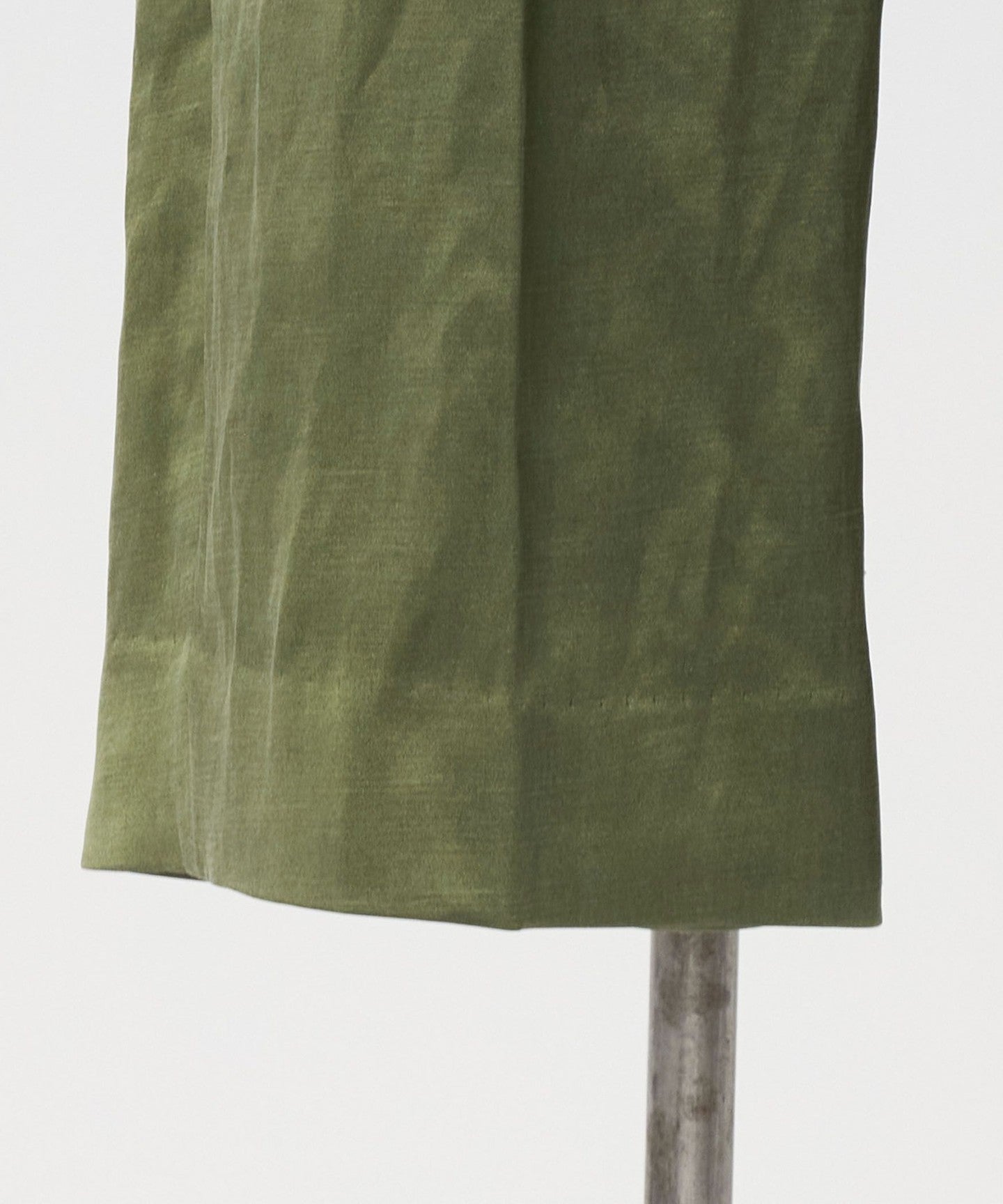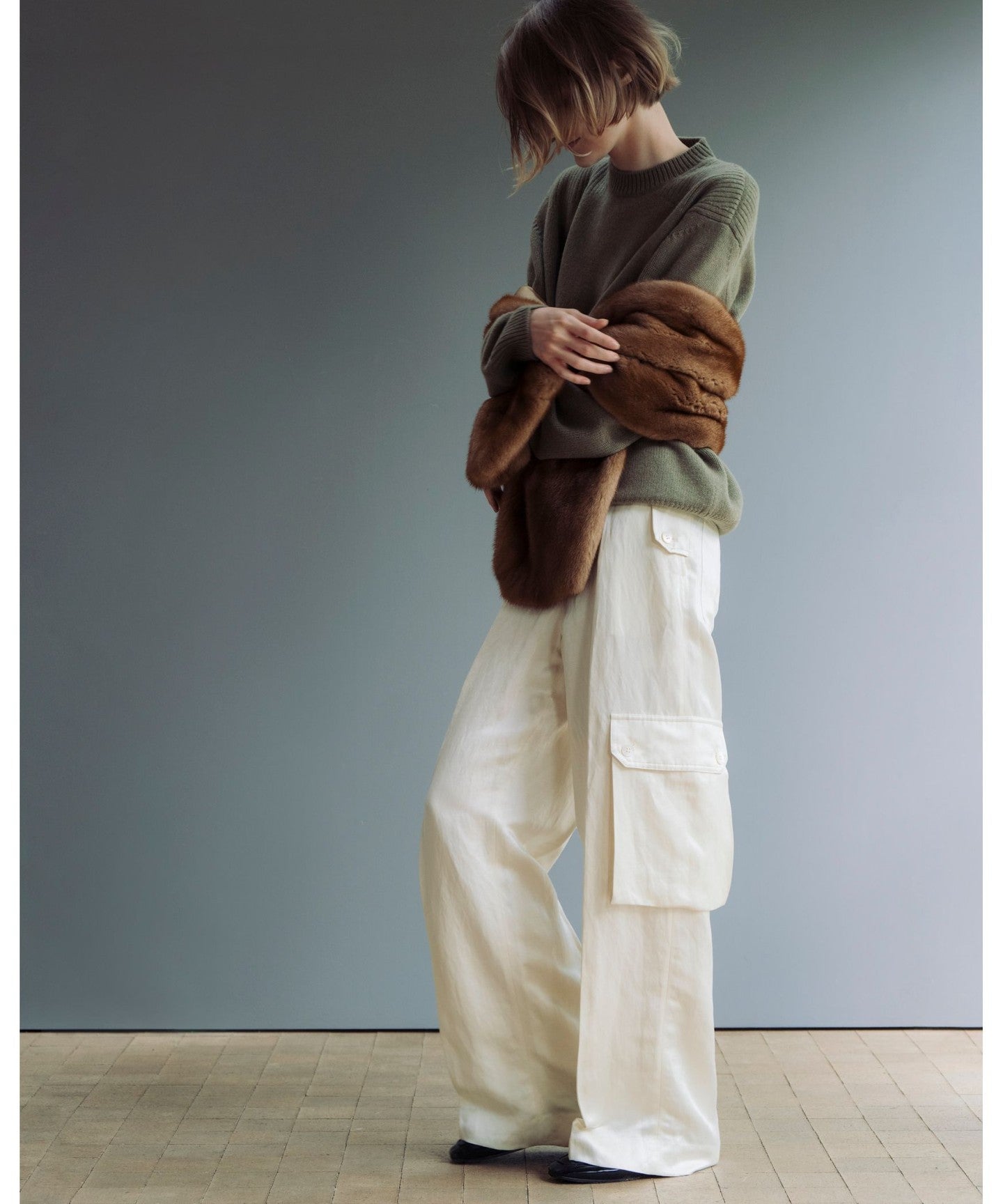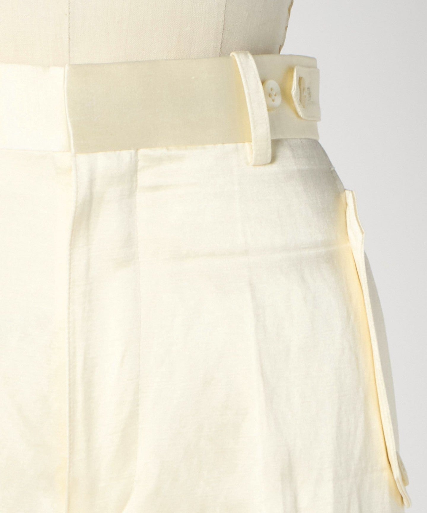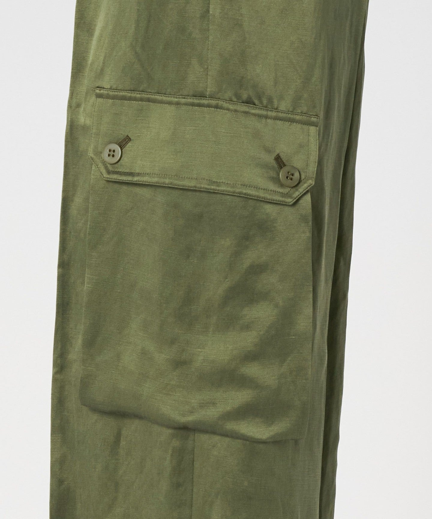 These pants are made of satin material that has been processed to resemble vintage cloth, giving them an elegant and sophisticated look.