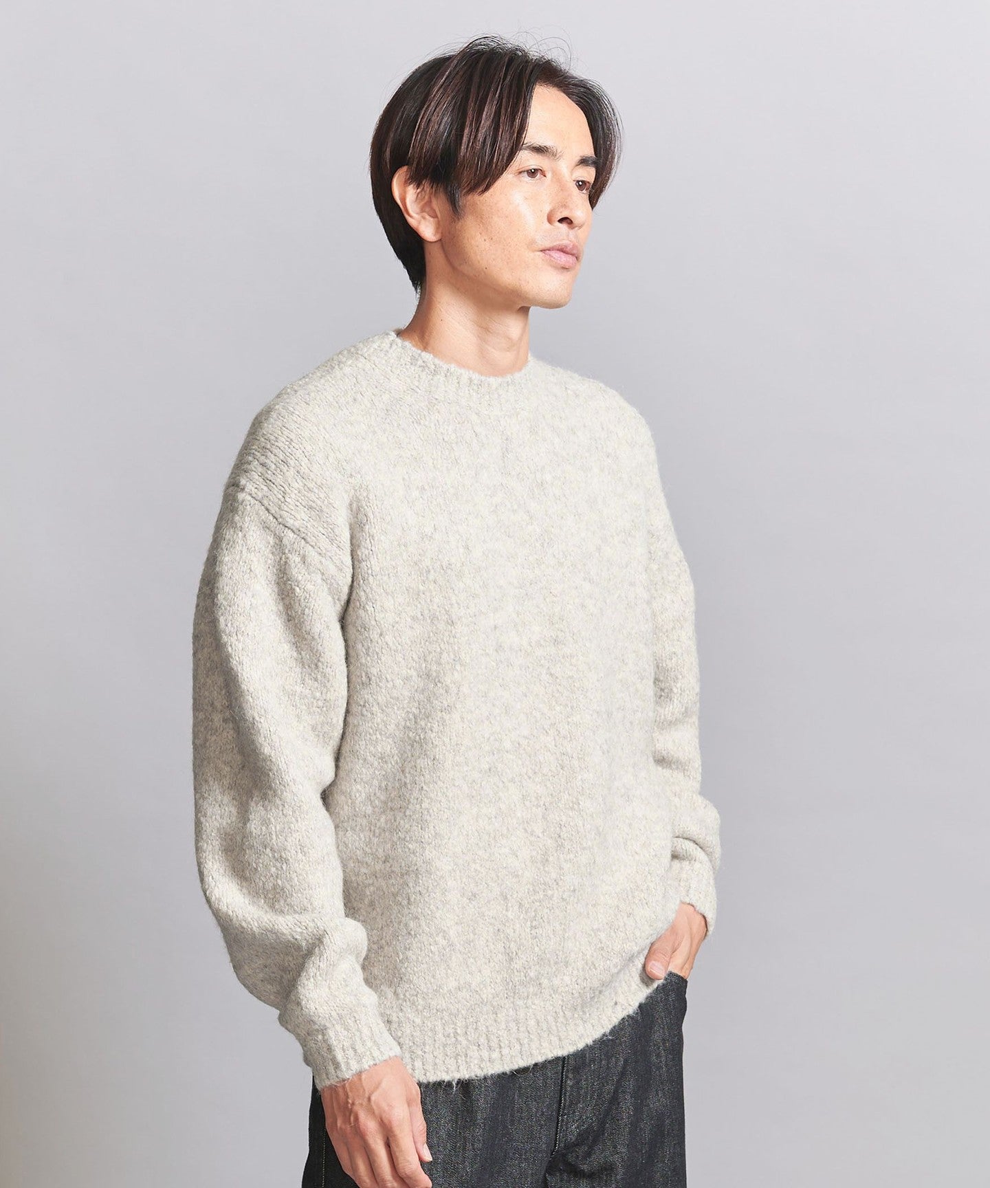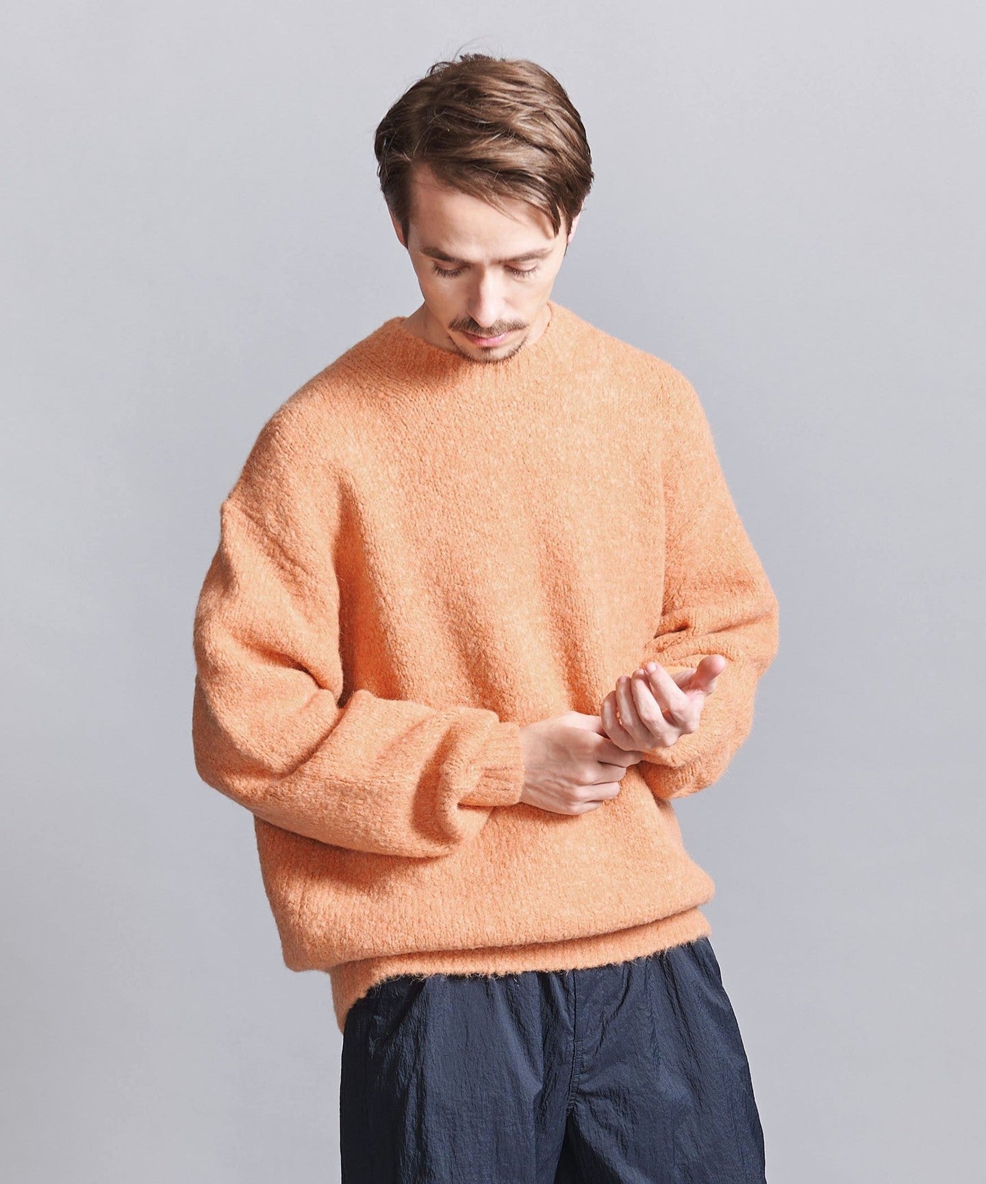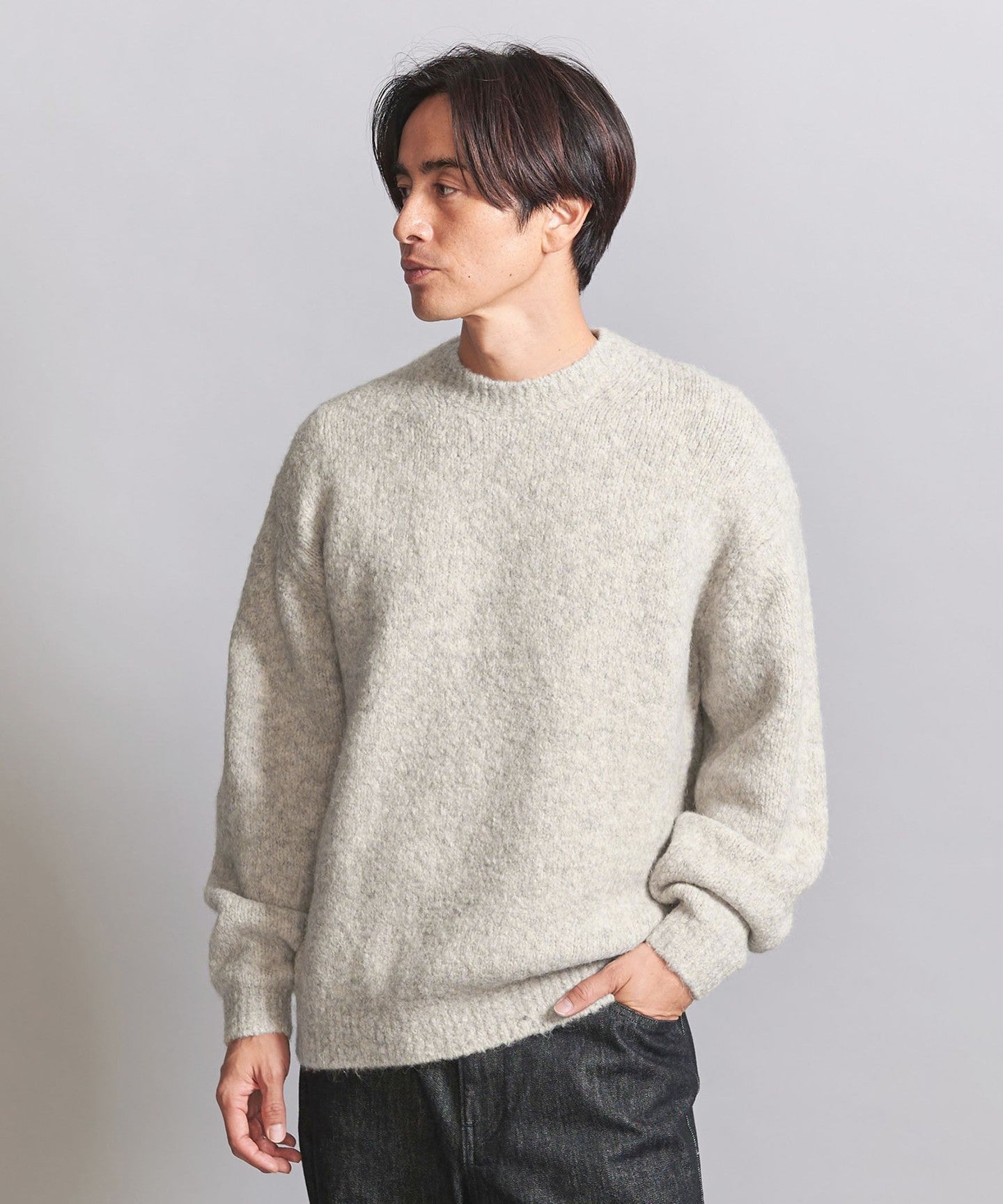 A crew neck knit that features a fluffy, cloud-like look and lightness.