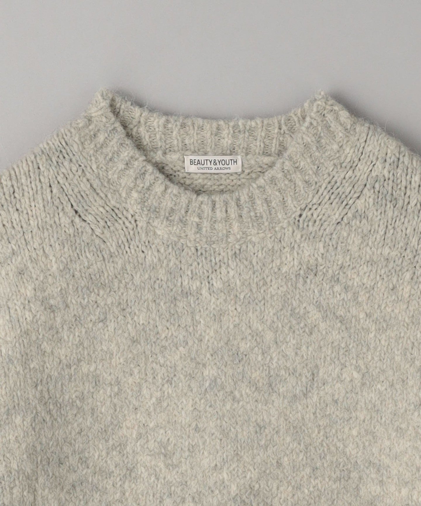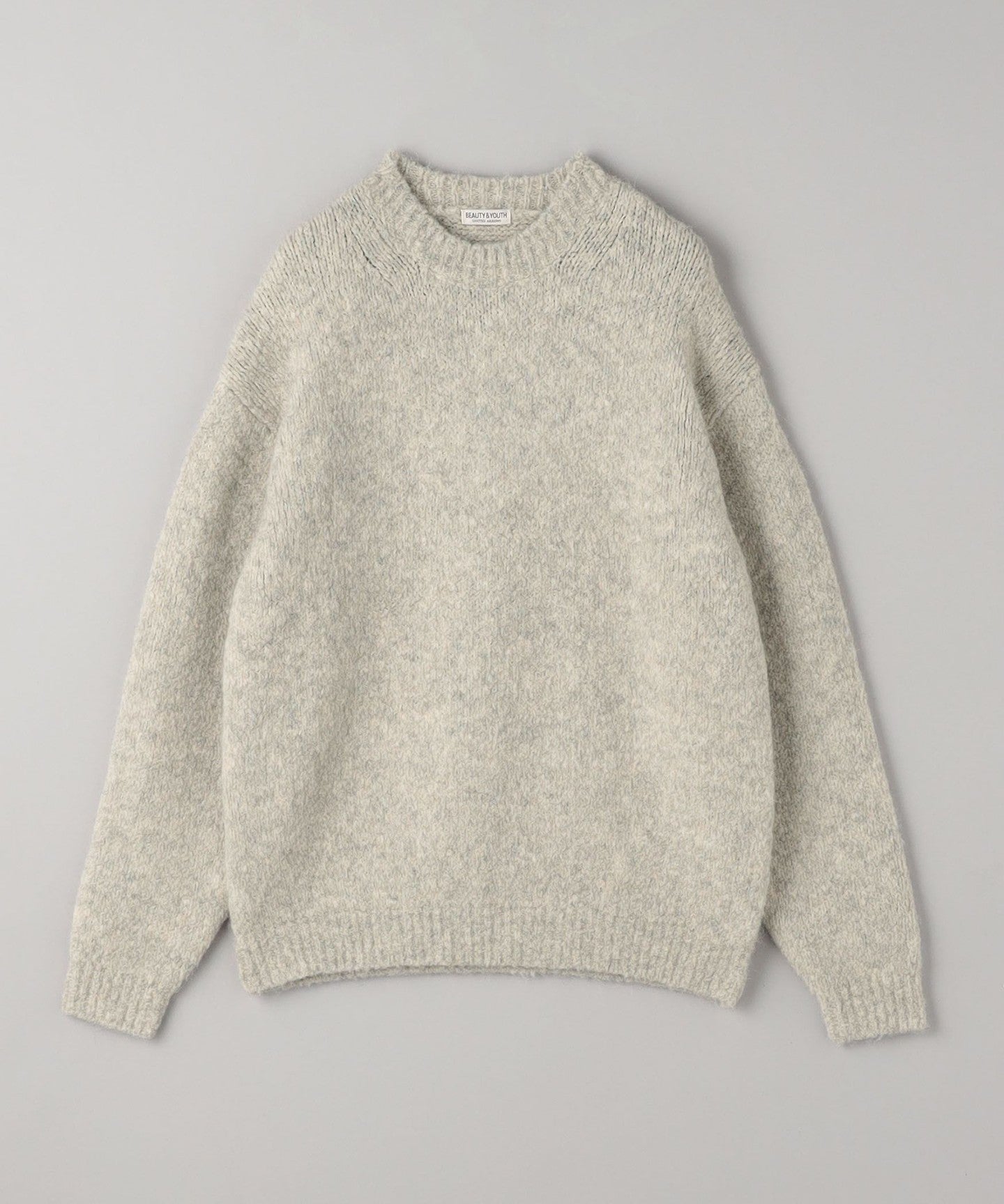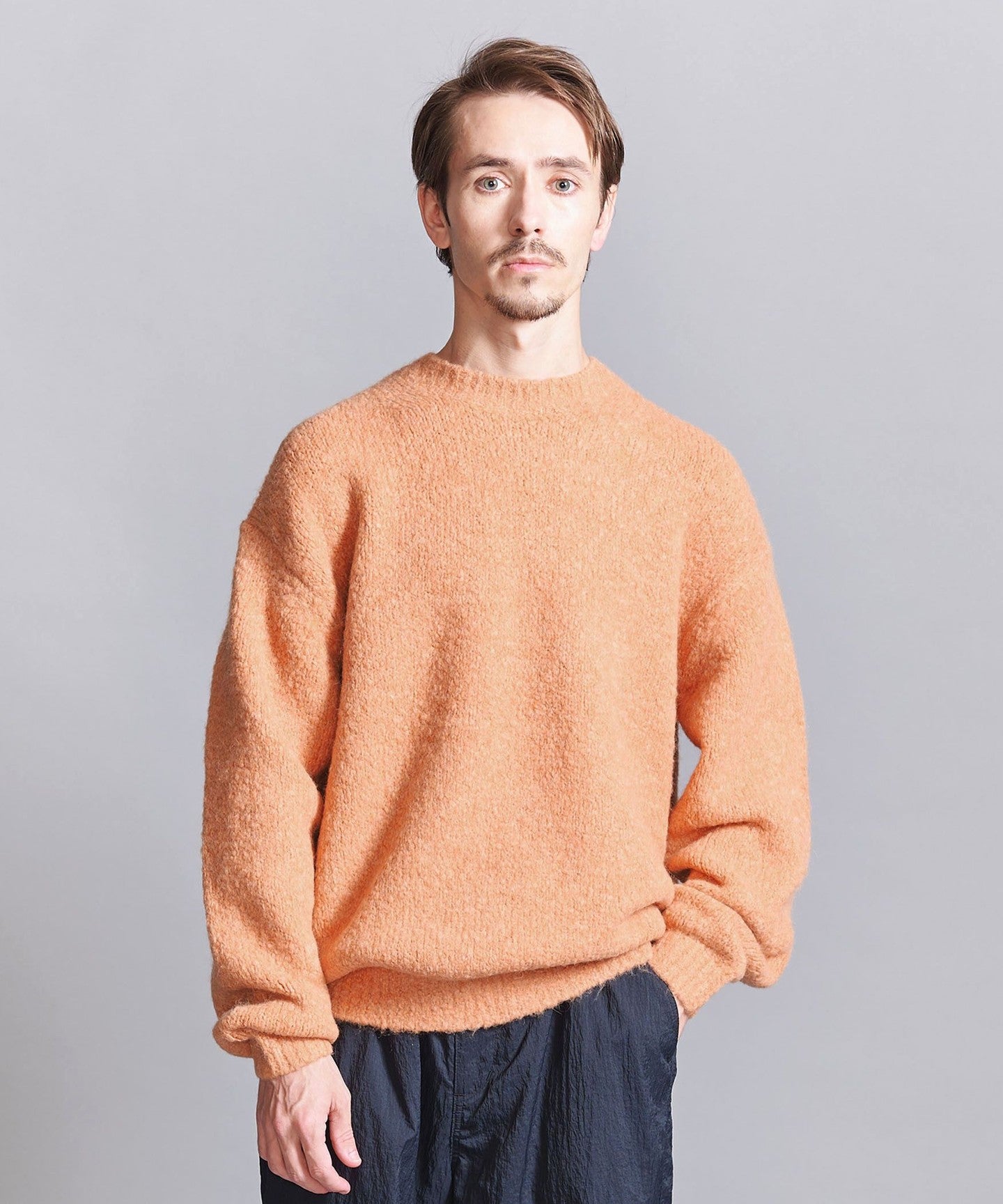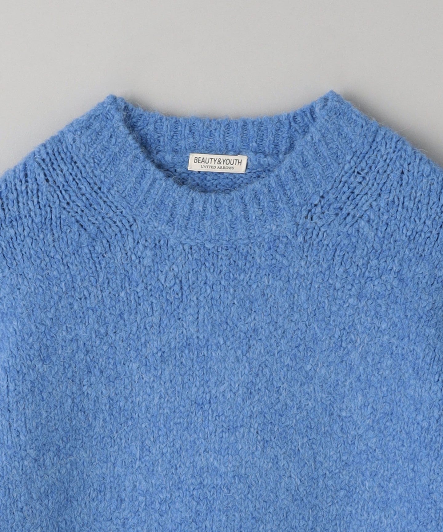 A crew neck knit that features a fluffy, cloud-like look and lightness.
