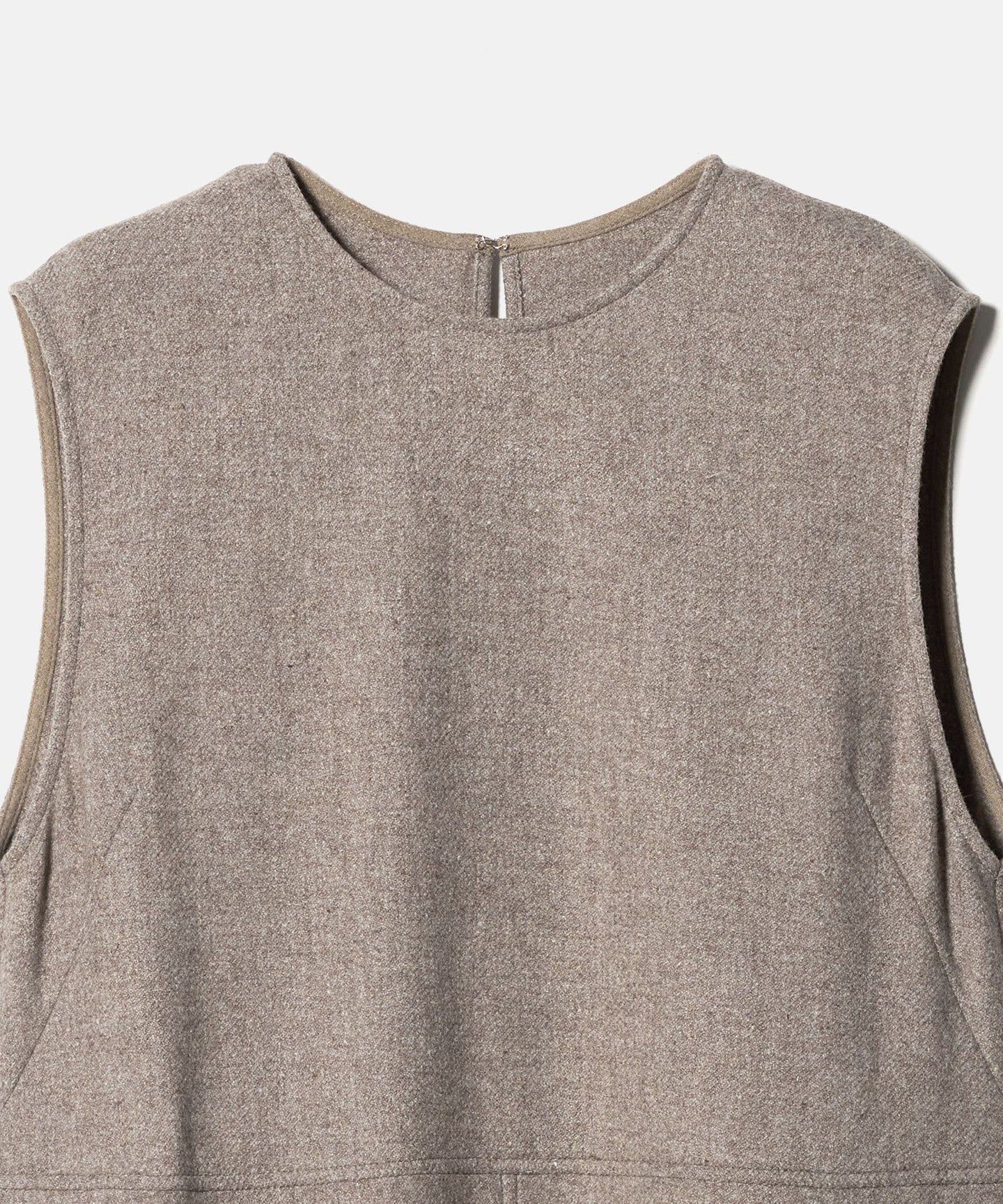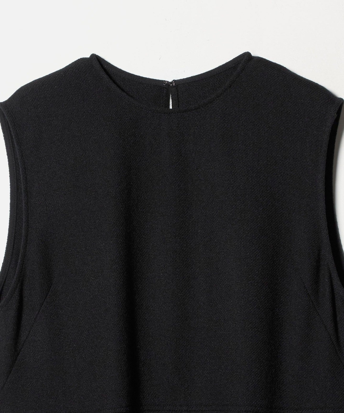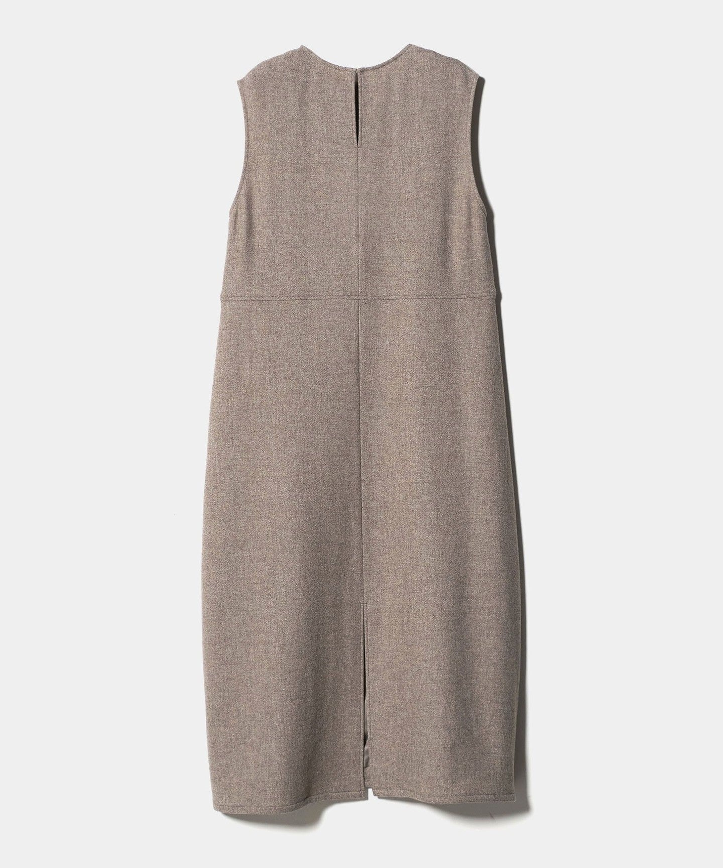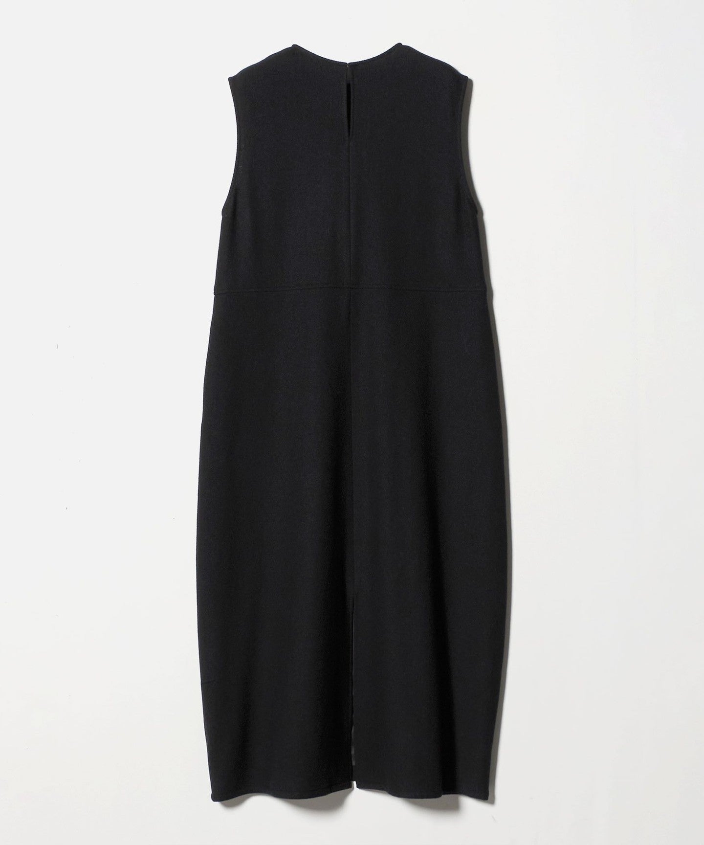 A sleeveless dress featuring a rounded cocoon silhouette.