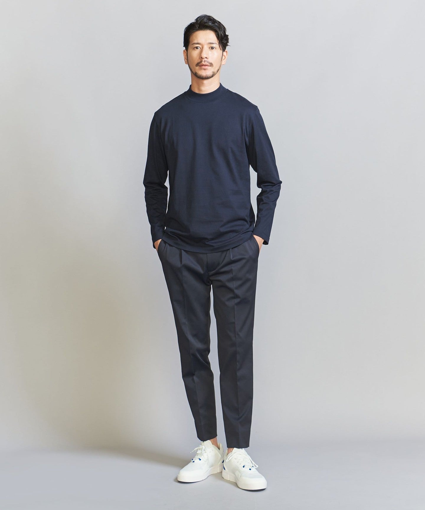 The sleeve cap is made higher to match the shape of the human arm, and the sleeves are attached slightly forward, so we have focused on creating a pattern that looks natural and neat, and the shape of the mock neck collar has been intentionally balanced so that it looks good when paired with a jacket.