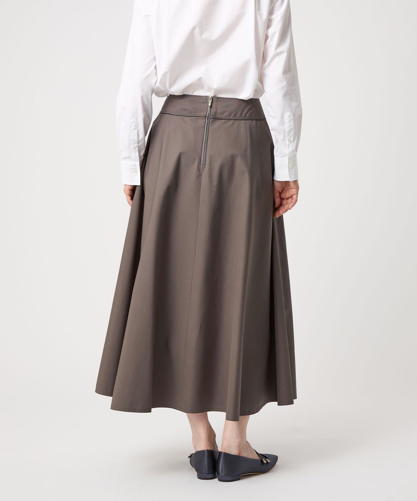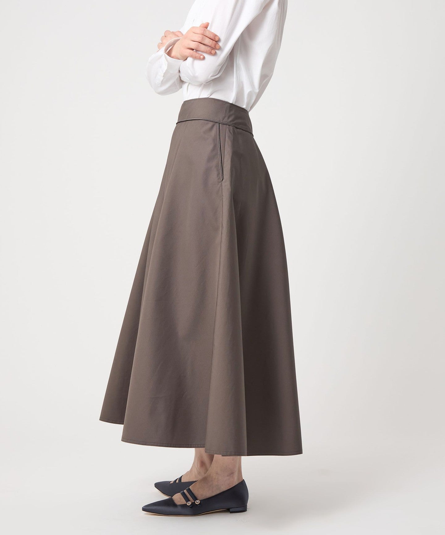 This skirt has an attractive flared silhouette created by taking advantage of the tension of the fabric.