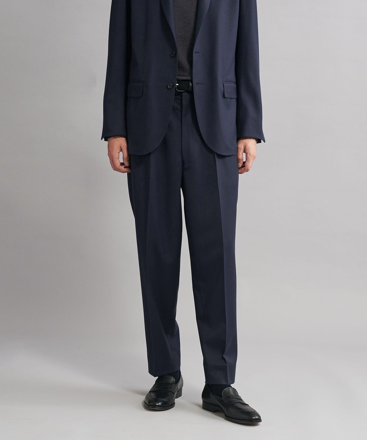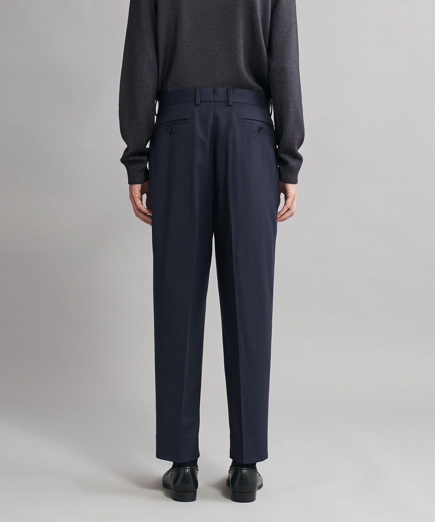Solid flannel 1 pleat slacks RELAX MODEL -Stretch-
