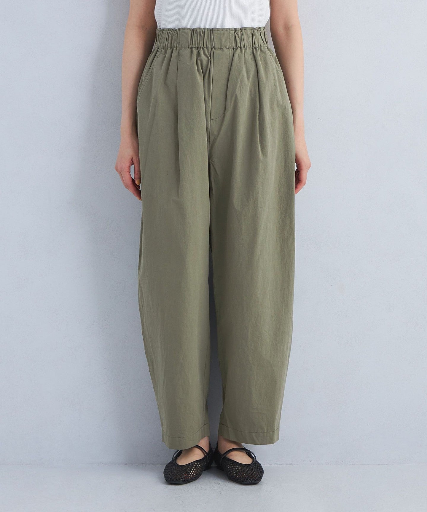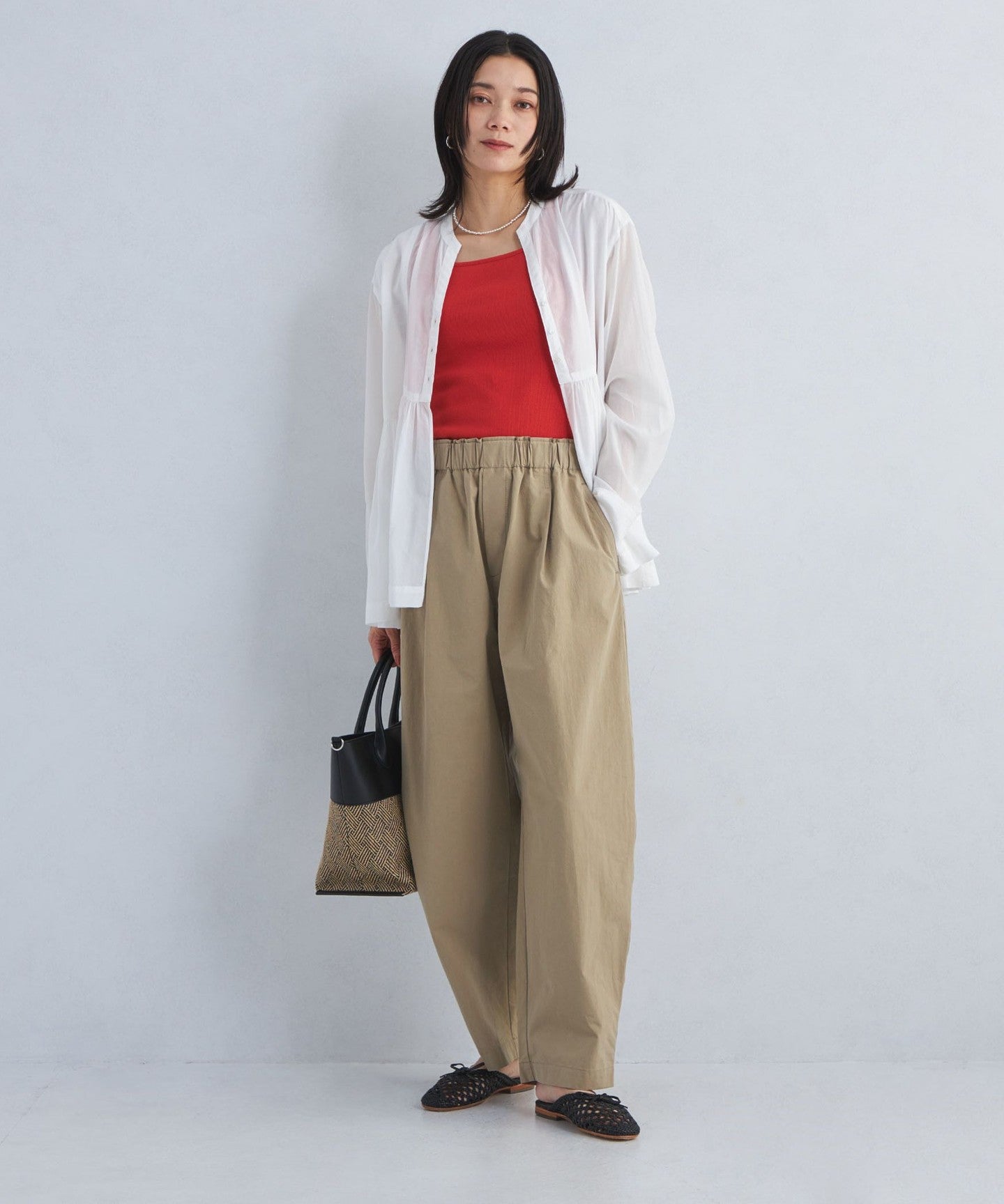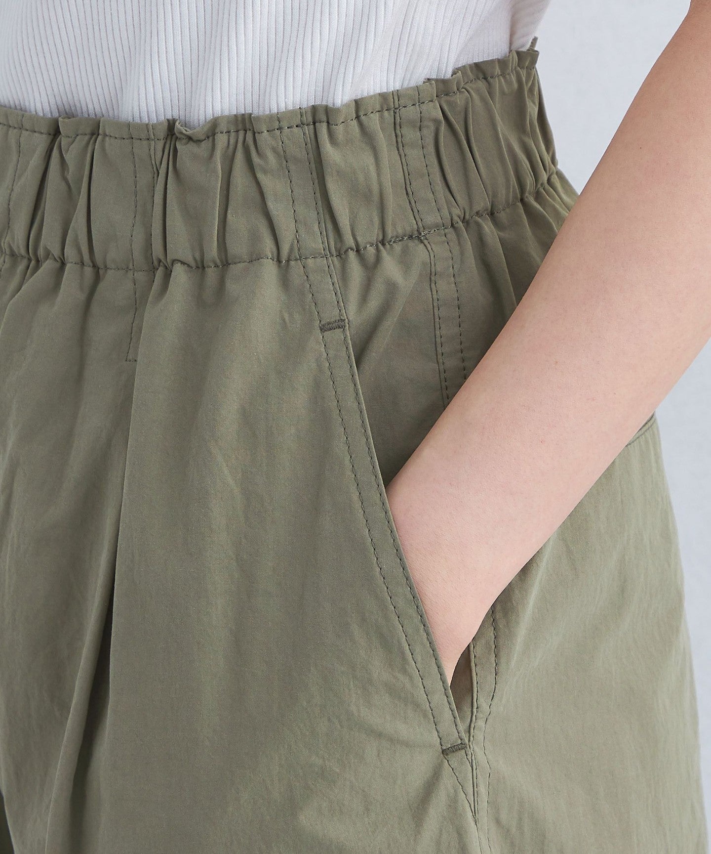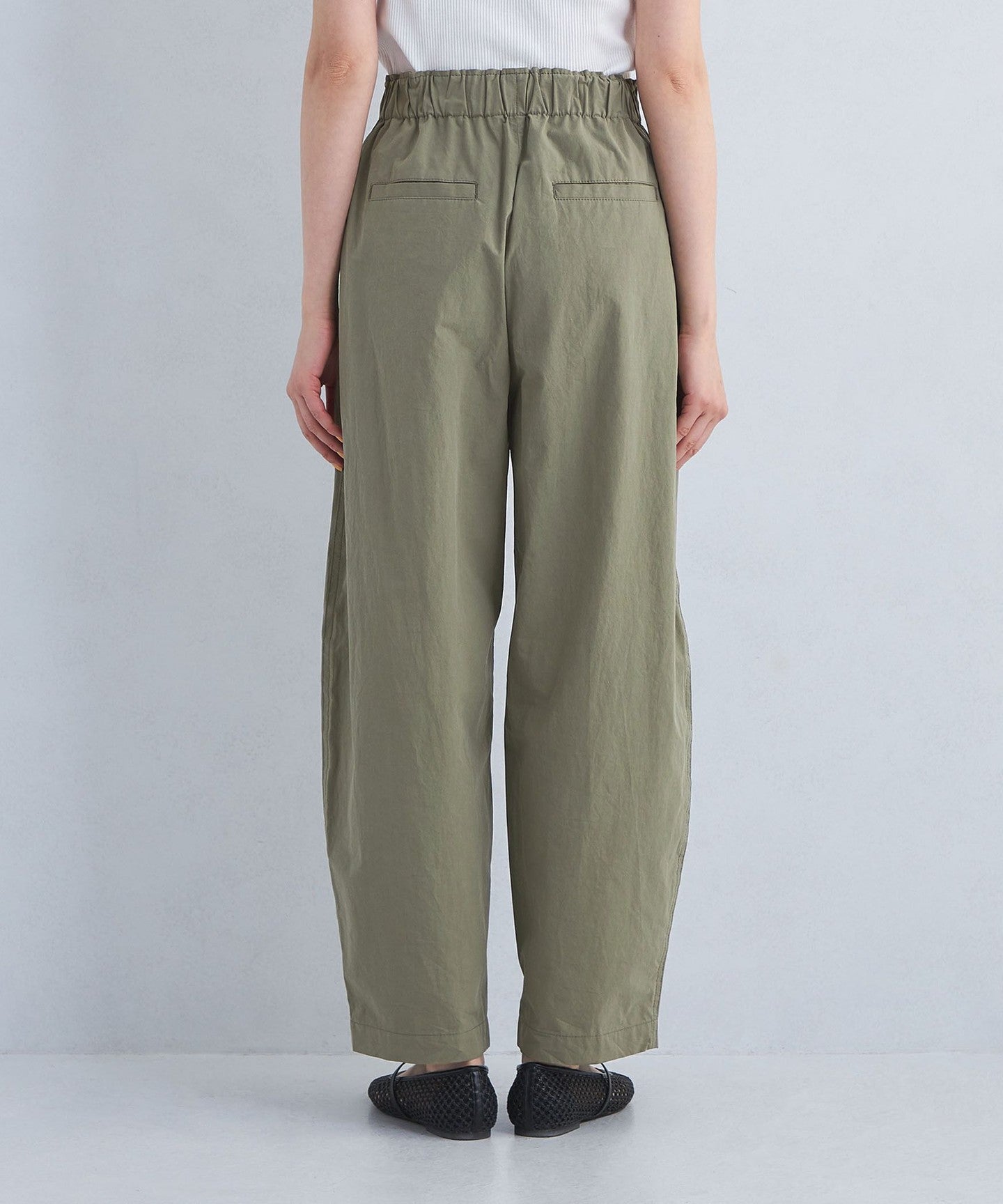 The waist design incorporates tucks and gathers to create a three-dimensional silhouette.