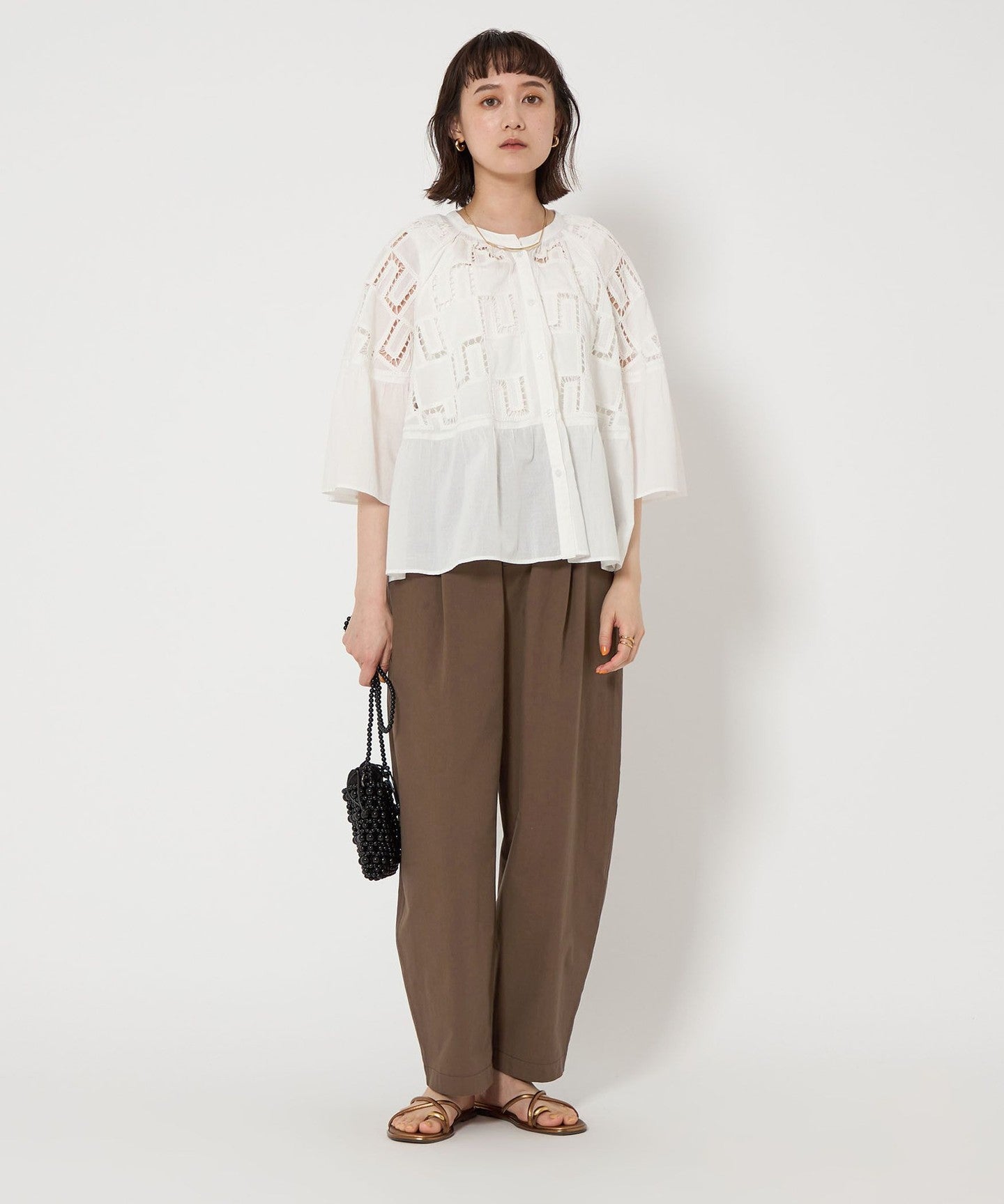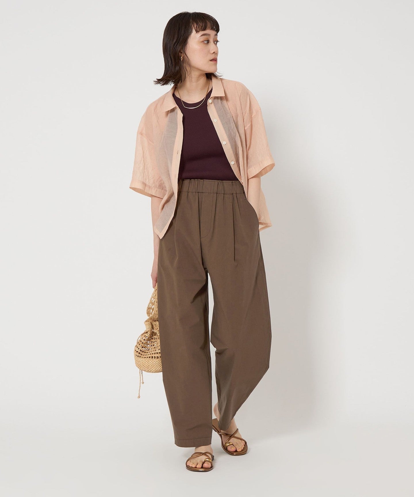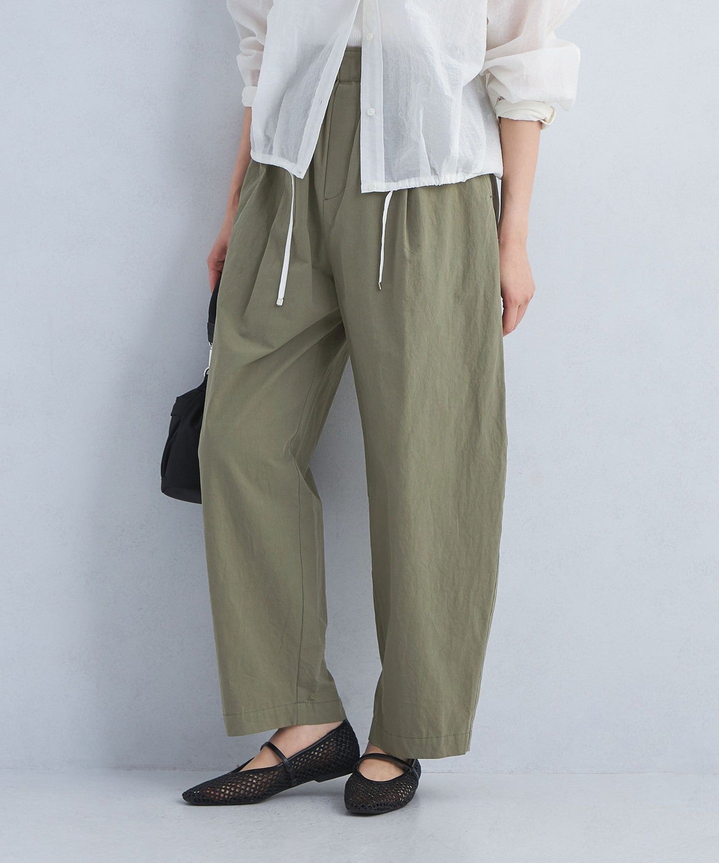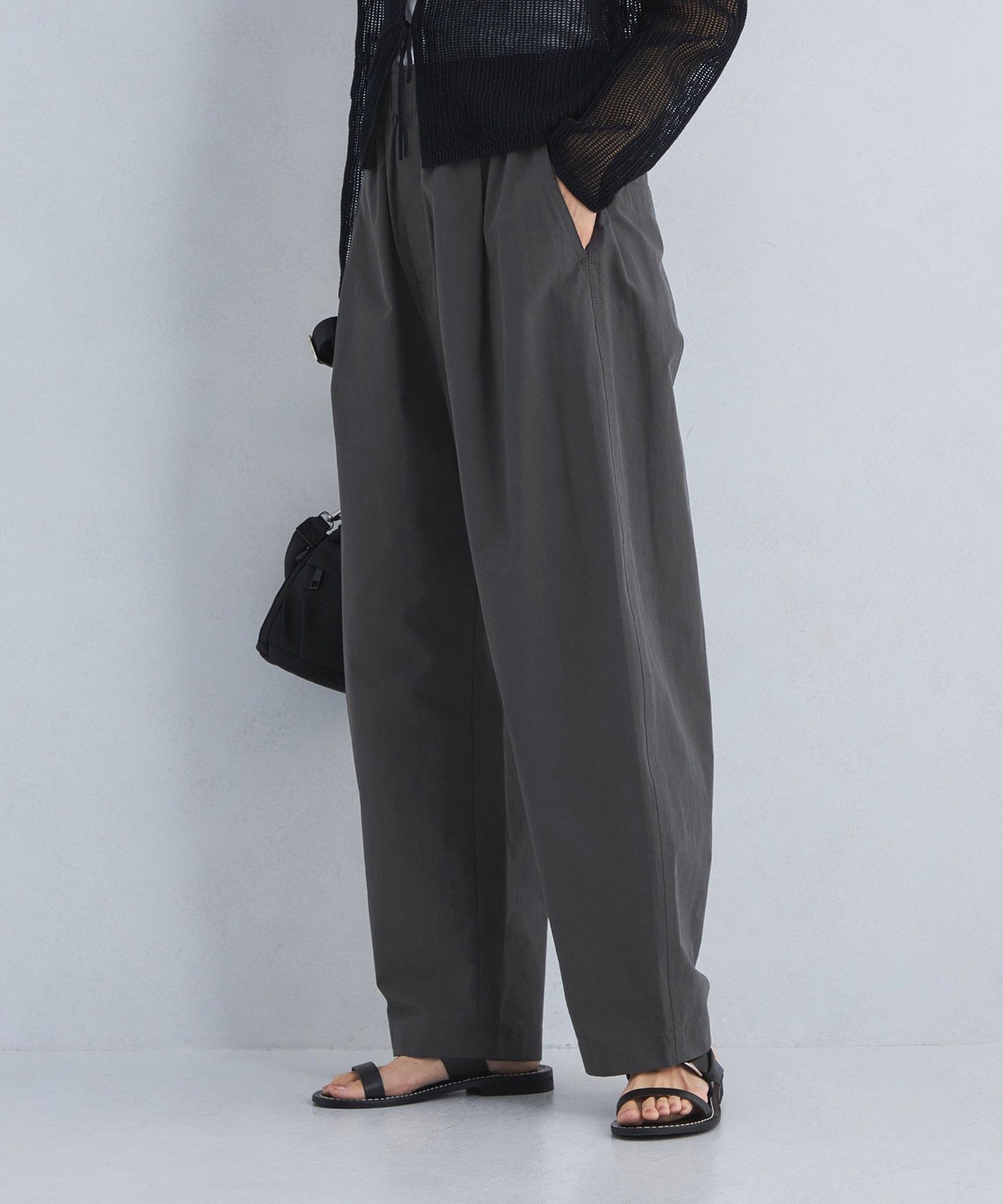 The waist design incorporates tucks and gathers to create a three-dimensional silhouette.