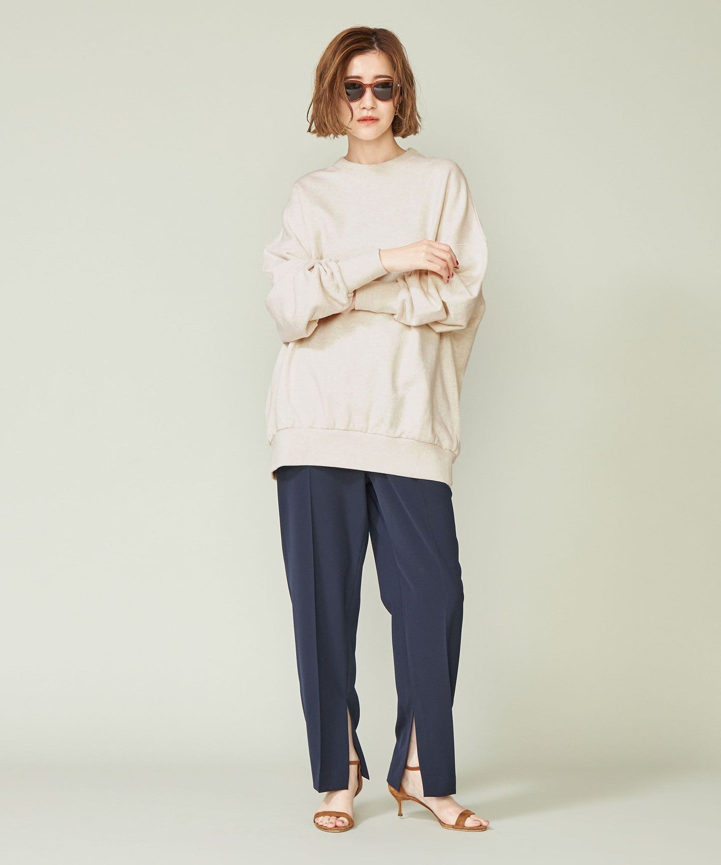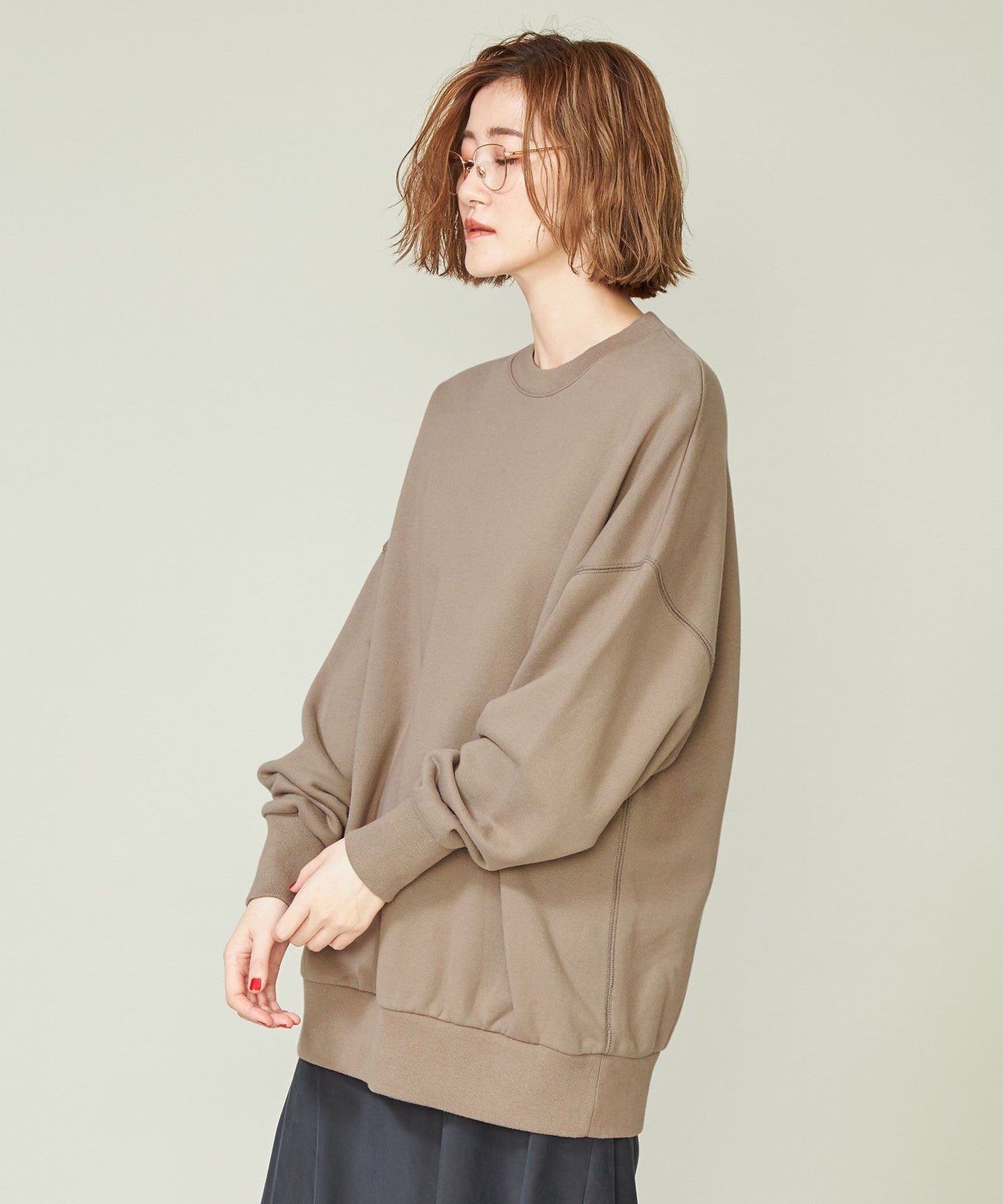 A big silhouette pullover sweatshirt that goes well with tight skirts and slim pants.