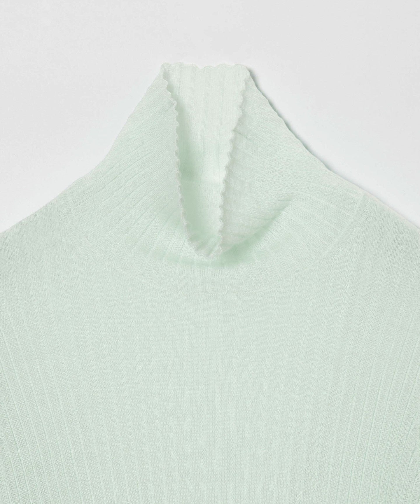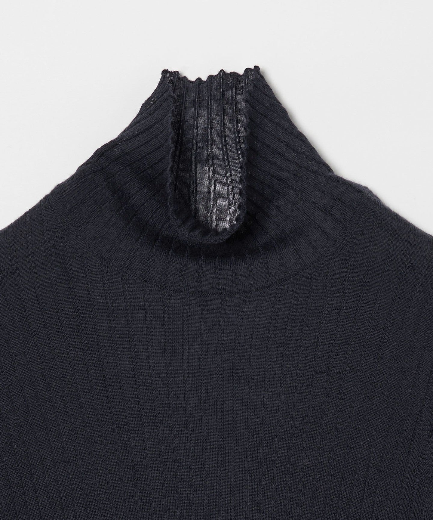 秋口から着られるように、タートルネックを一重にして首元が重くならないようにしています。