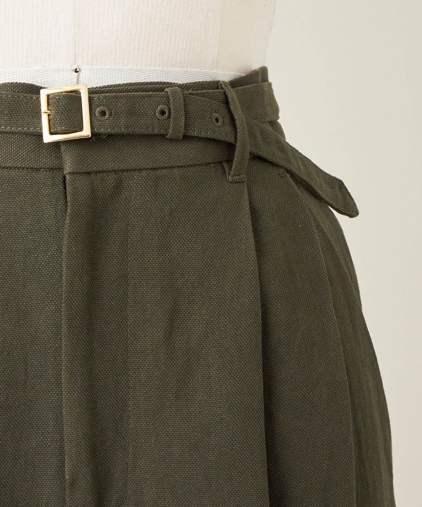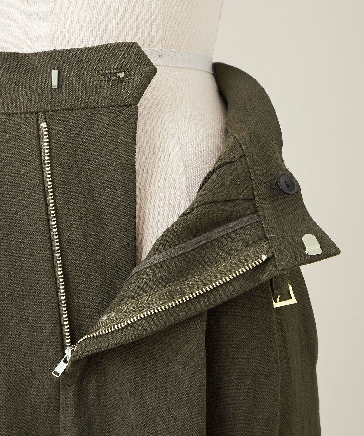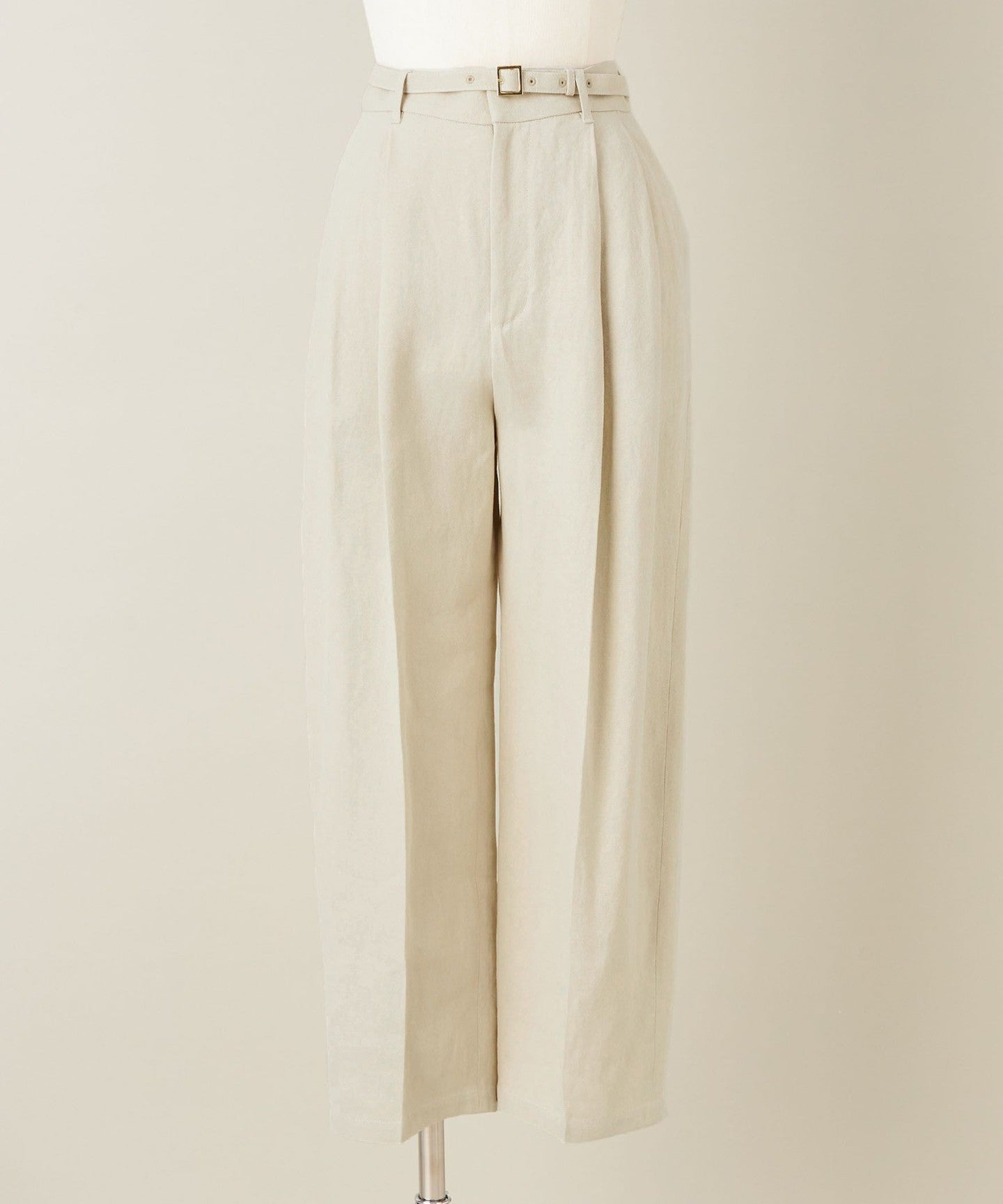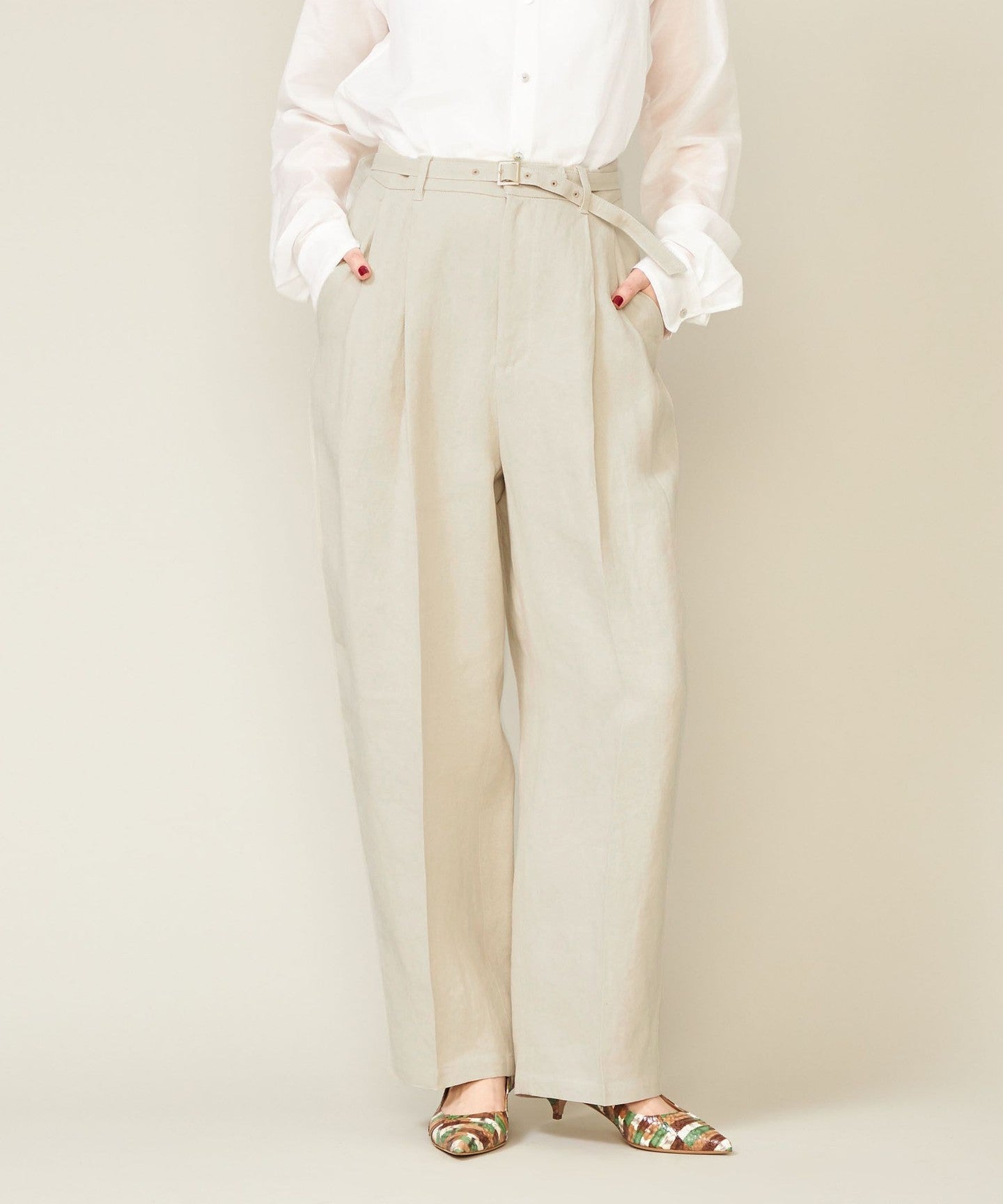 These two-pleat pants with a belt feature the natural look of washi paper.