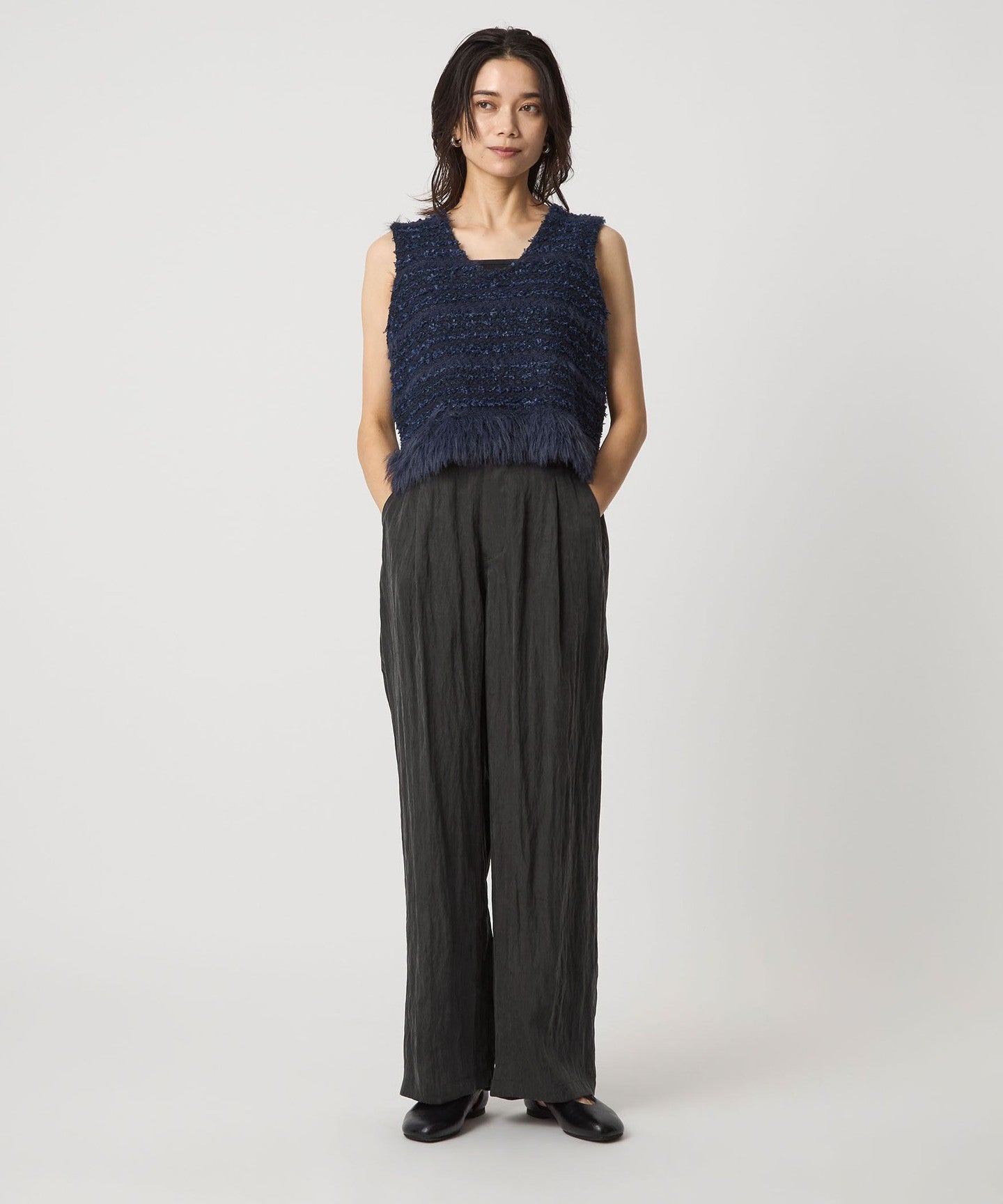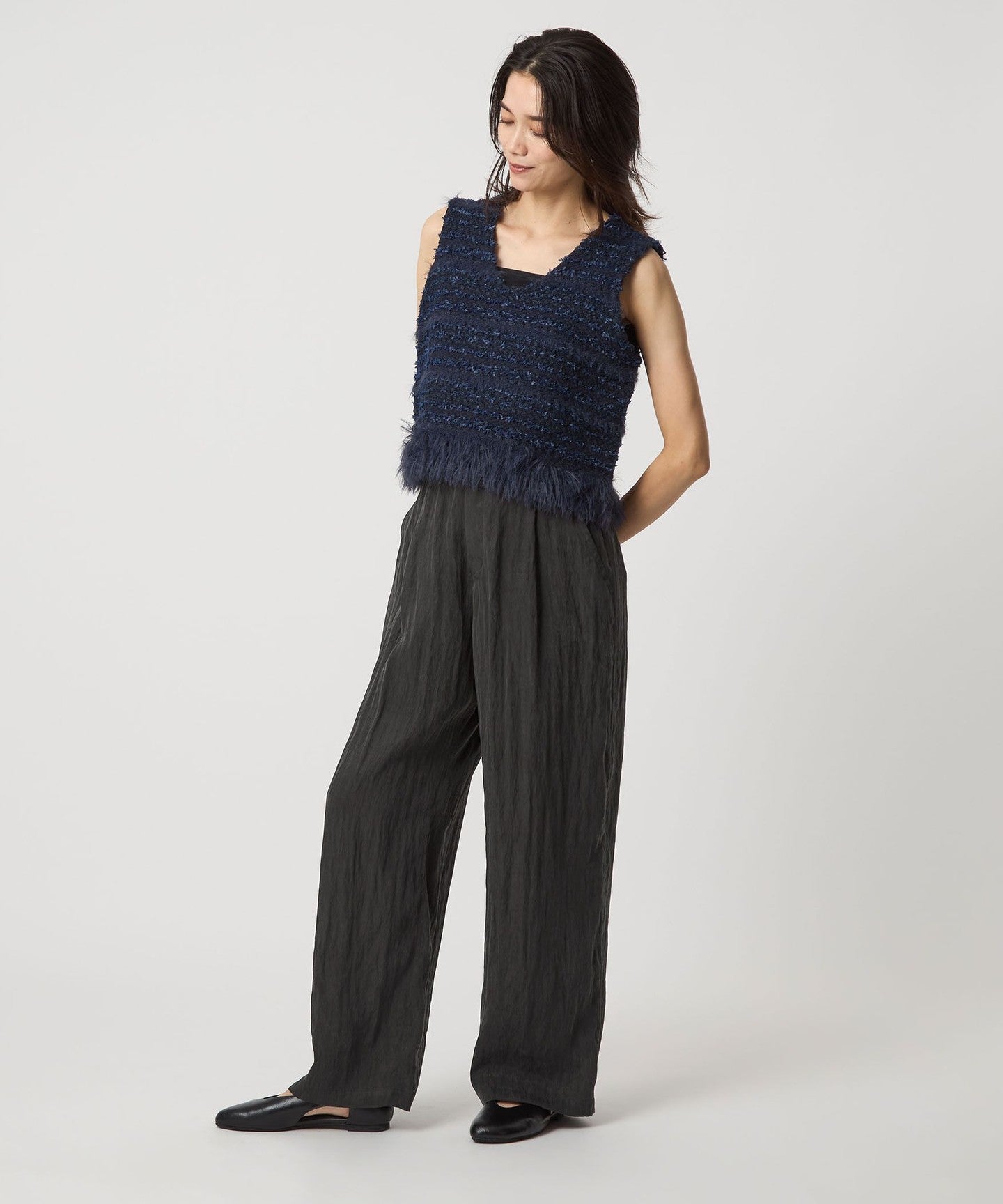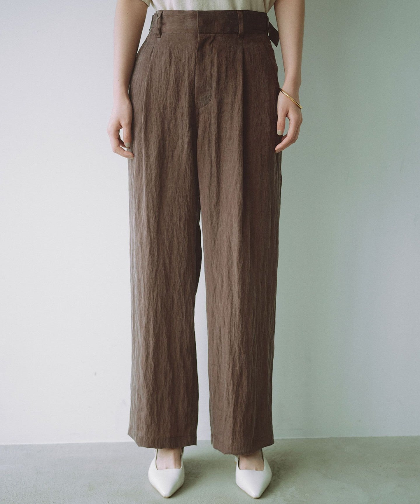 One tuck creates a relaxed silhouette, TIE The crotch point is set high to give the appearance of being pulled up.