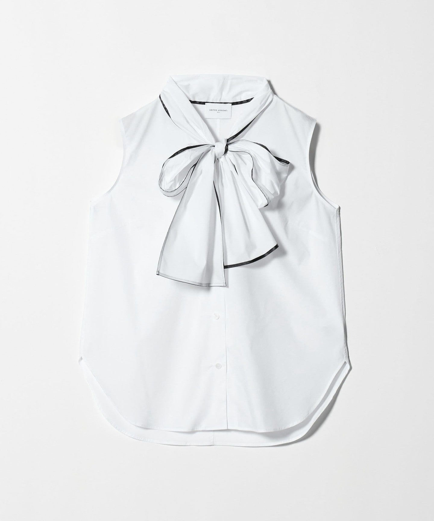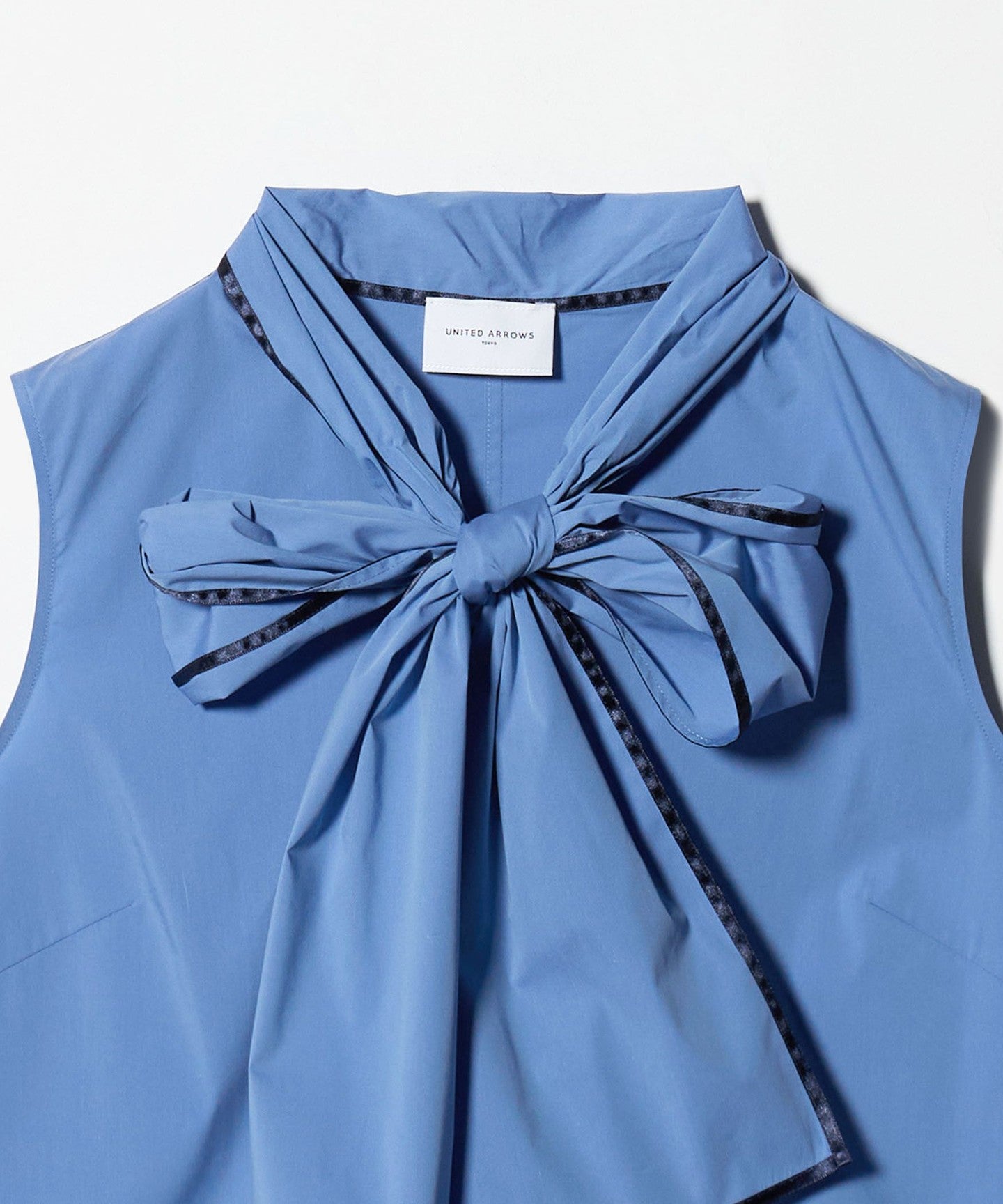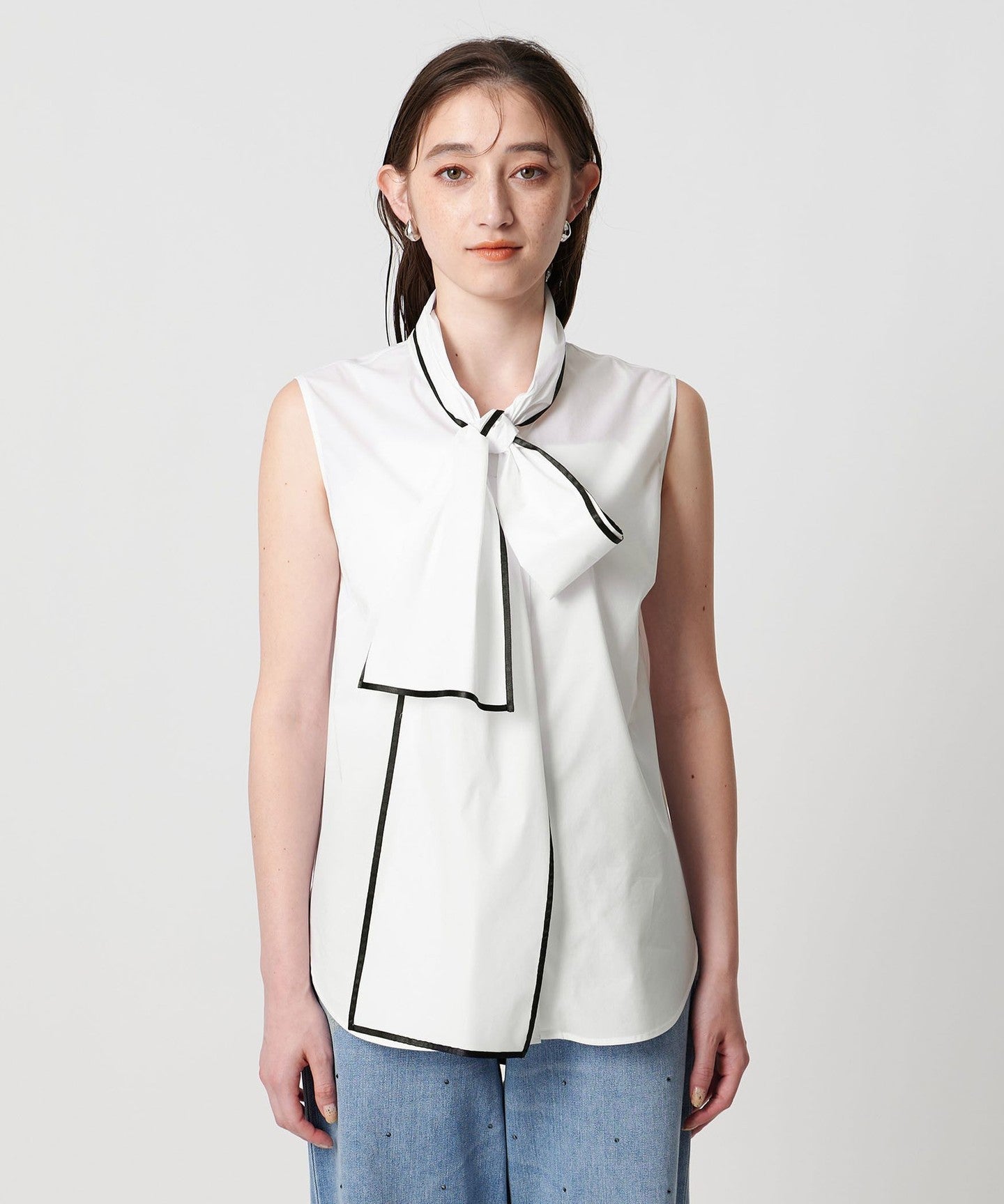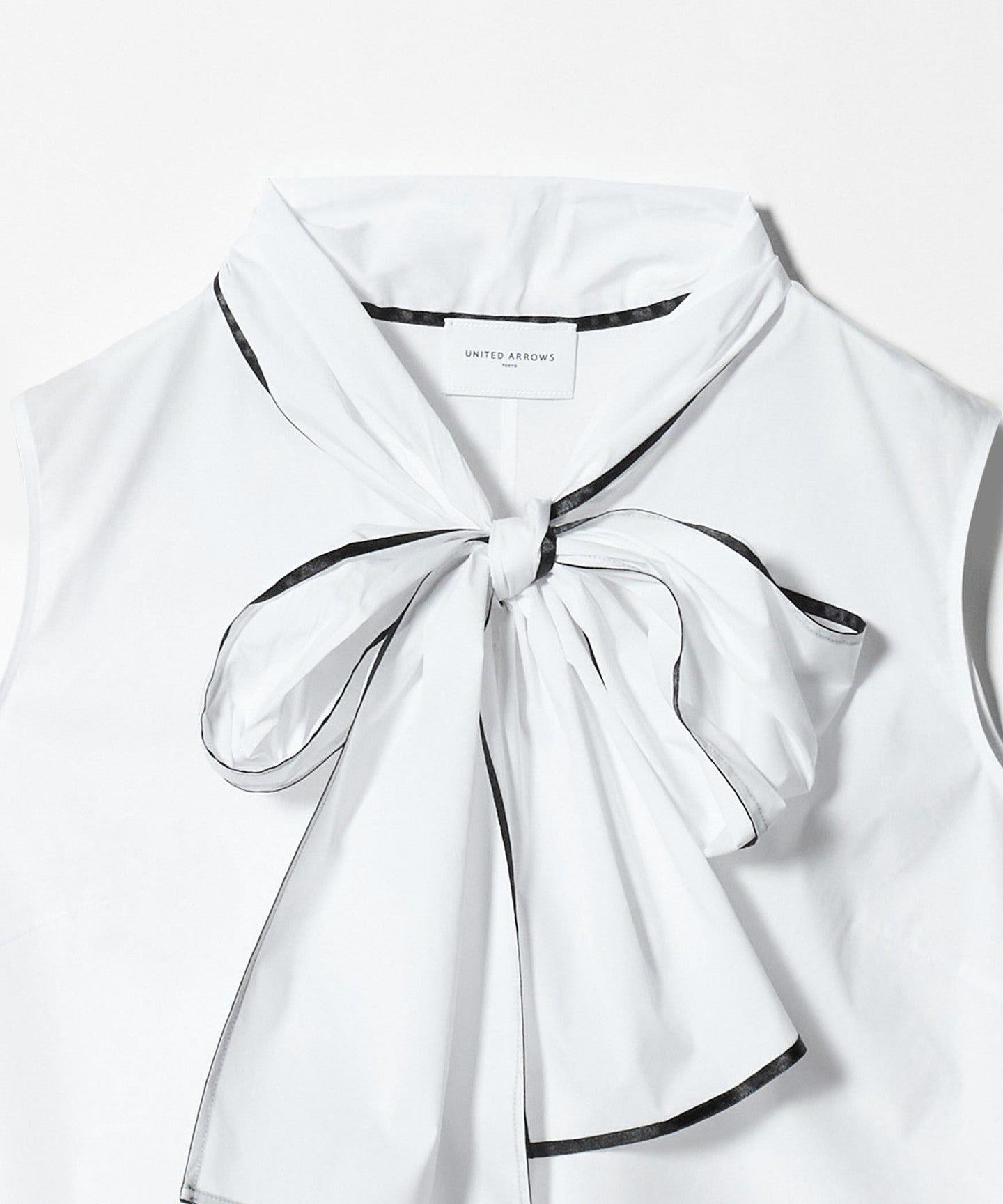 A clean sleeveless blouse with a gorgeous ribbon tie.