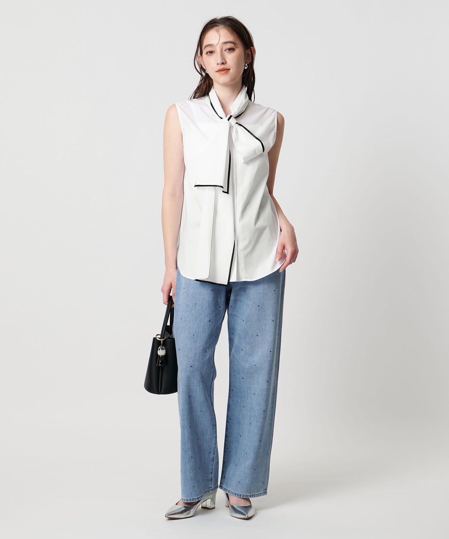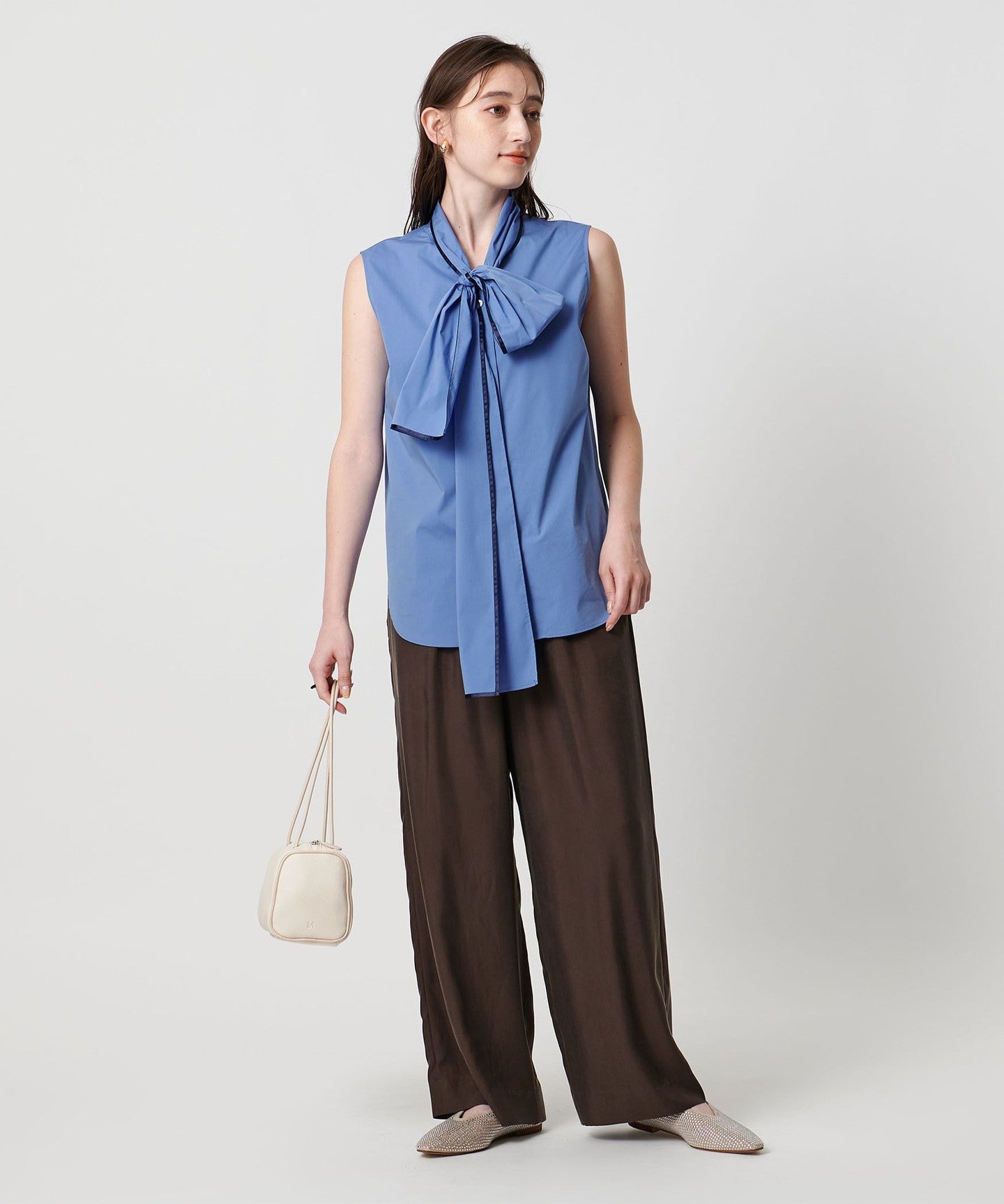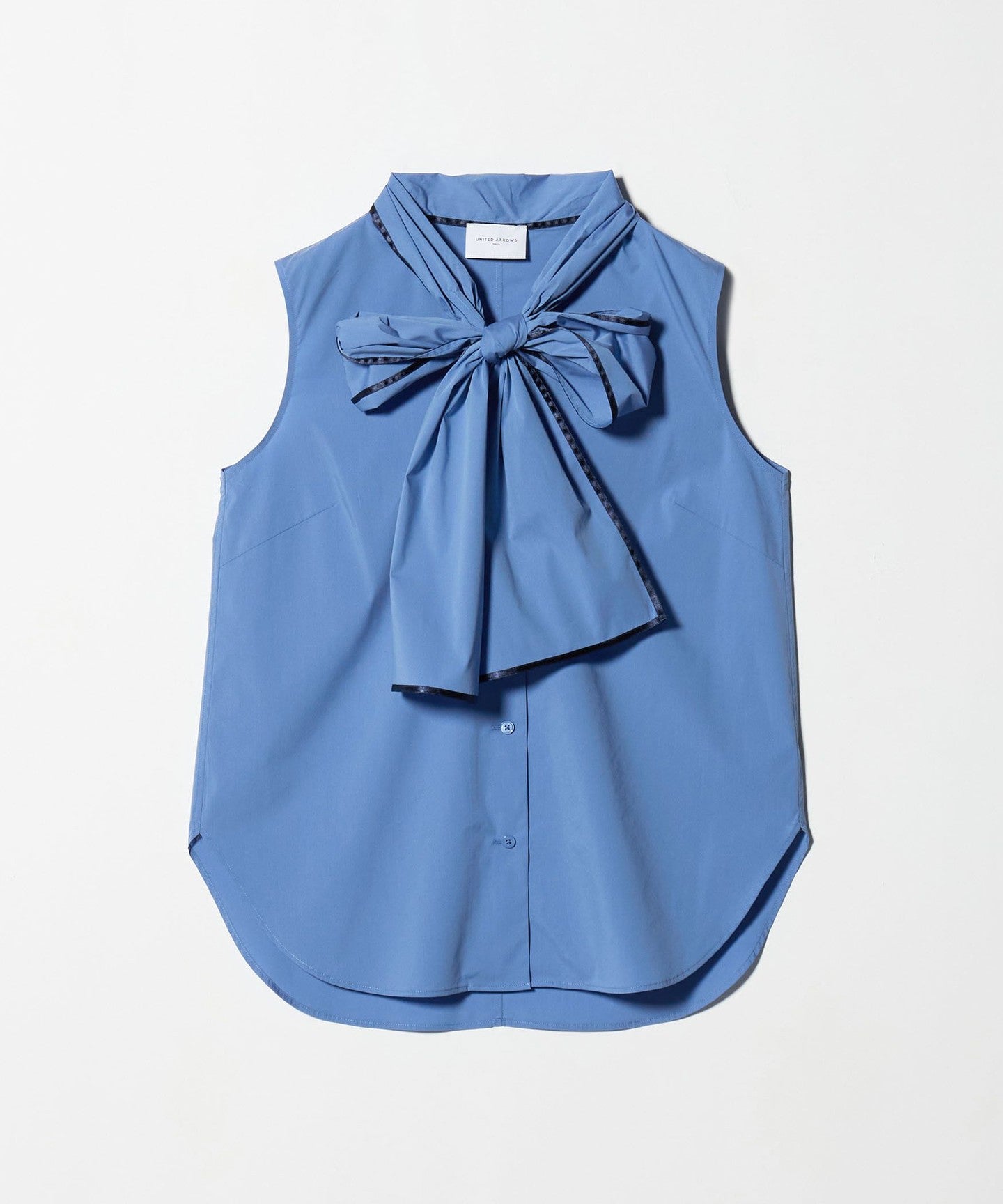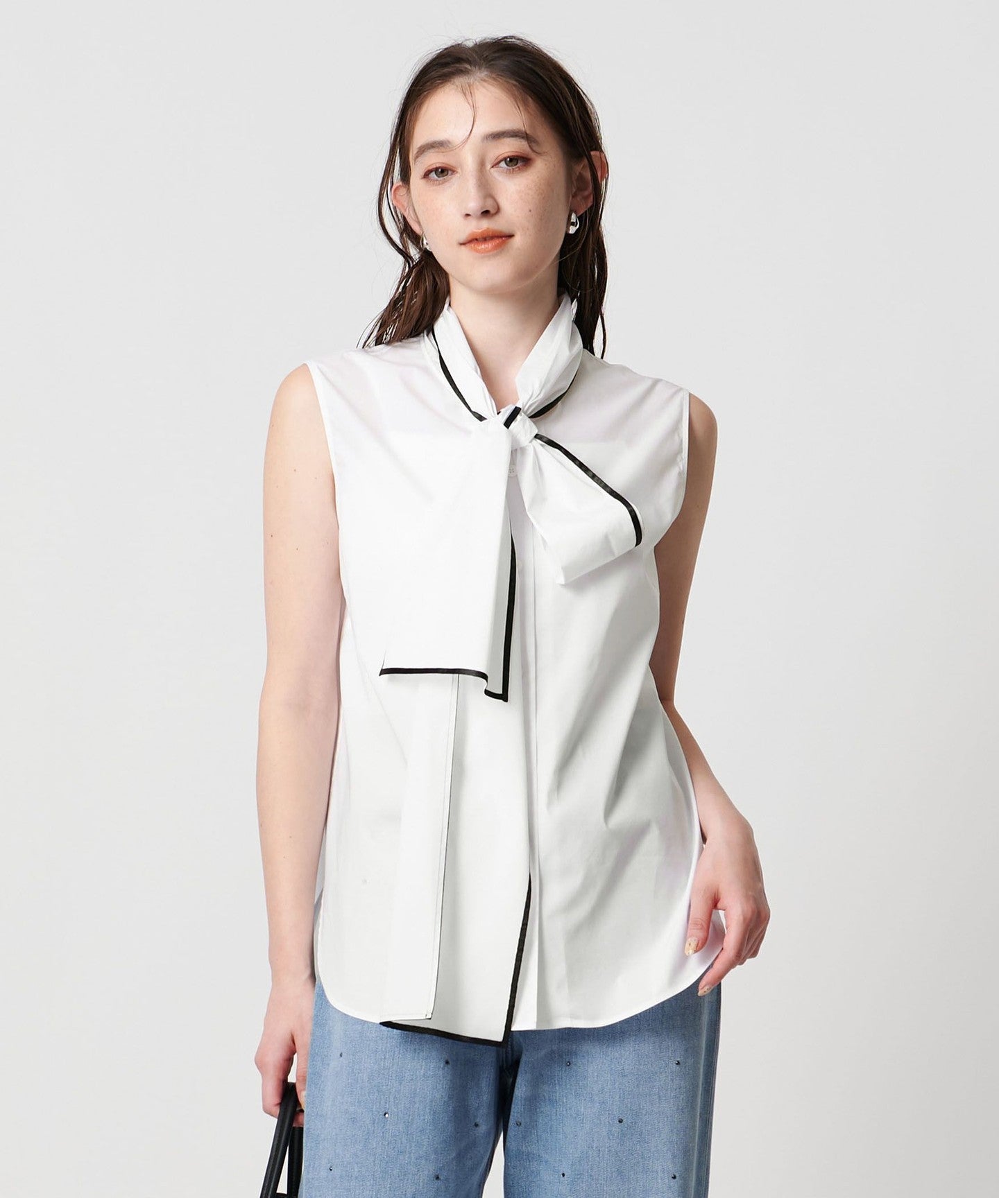 A clean sleeveless blouse with a gorgeous ribbon tie.
