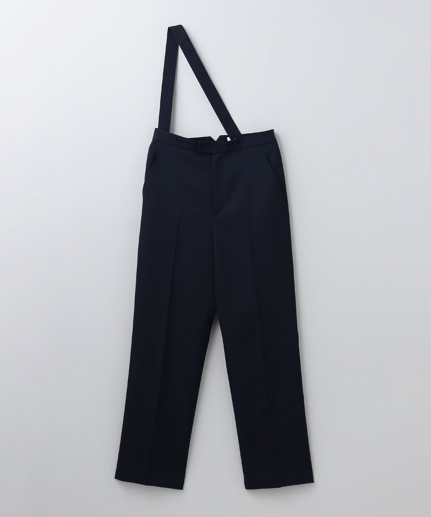 These chic navy pants come with one suspender for a modern look.