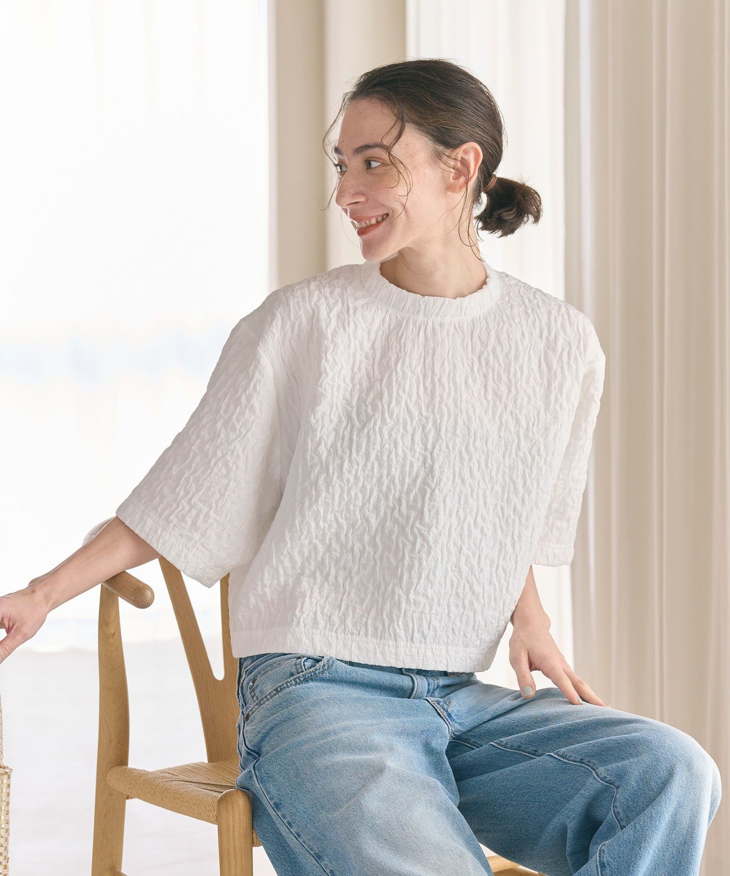It uses a ruffled jacquard fabric with an eye-catching textured appearance.