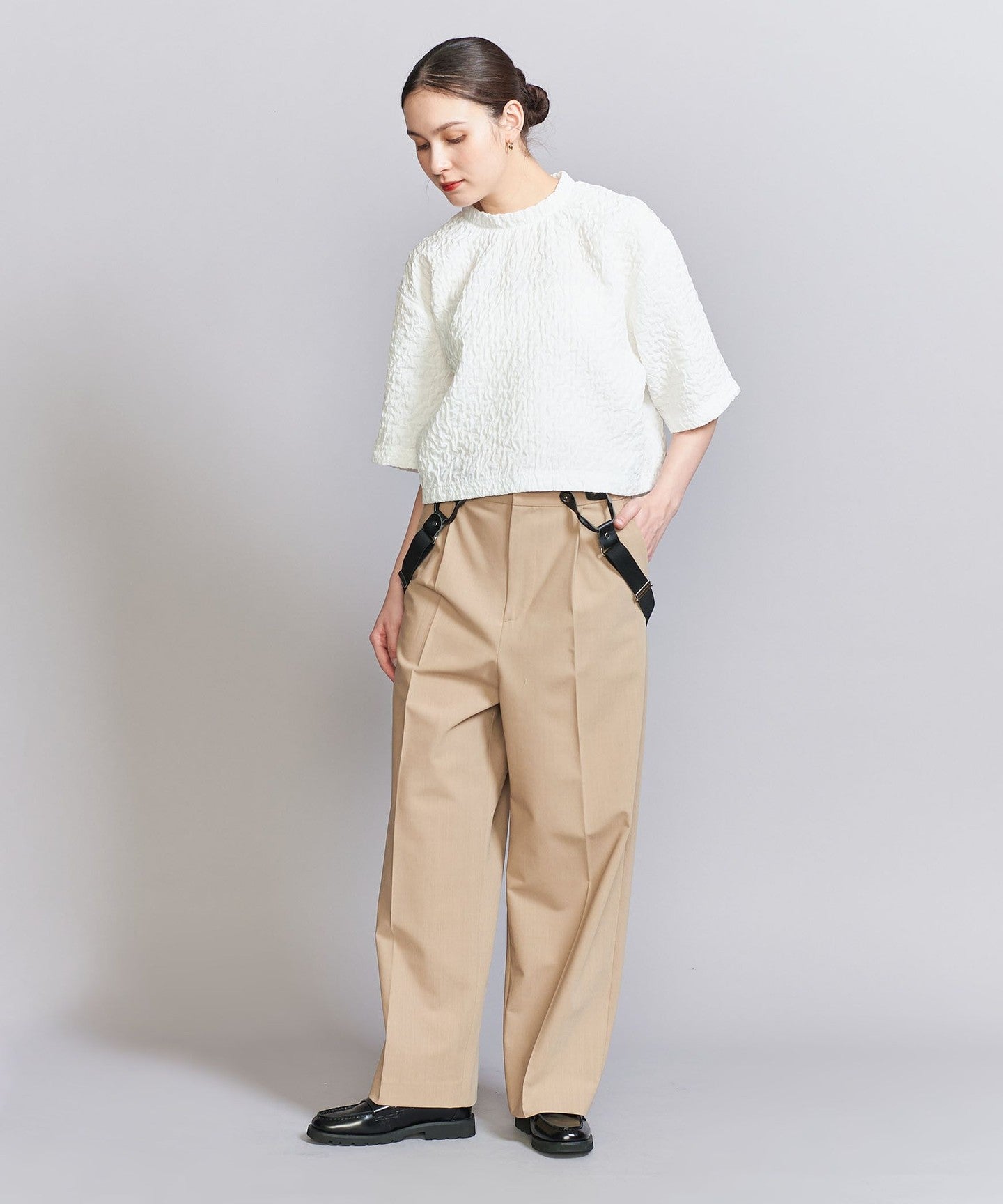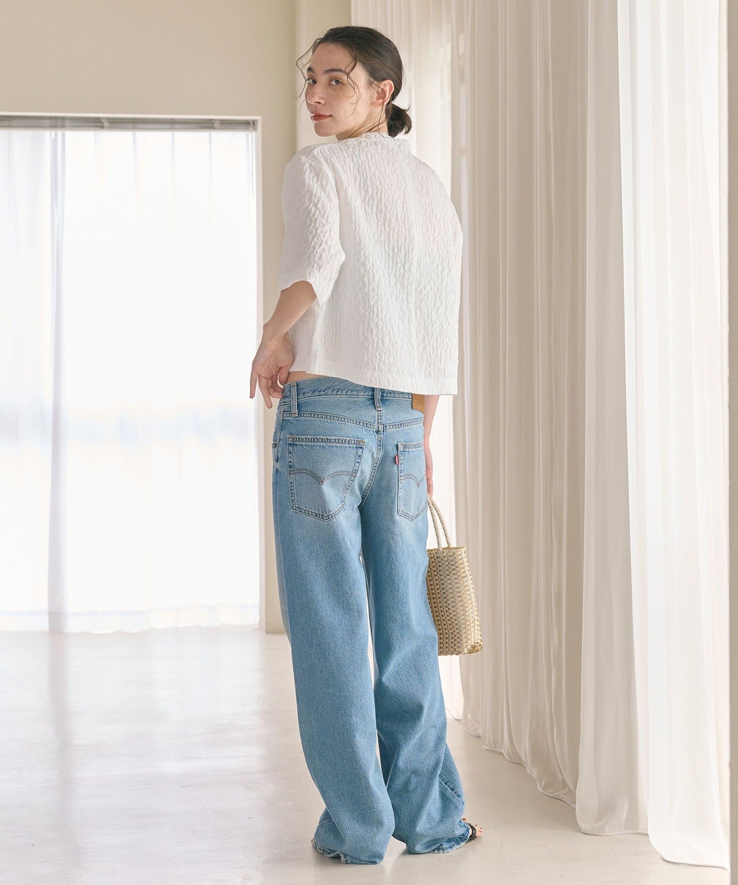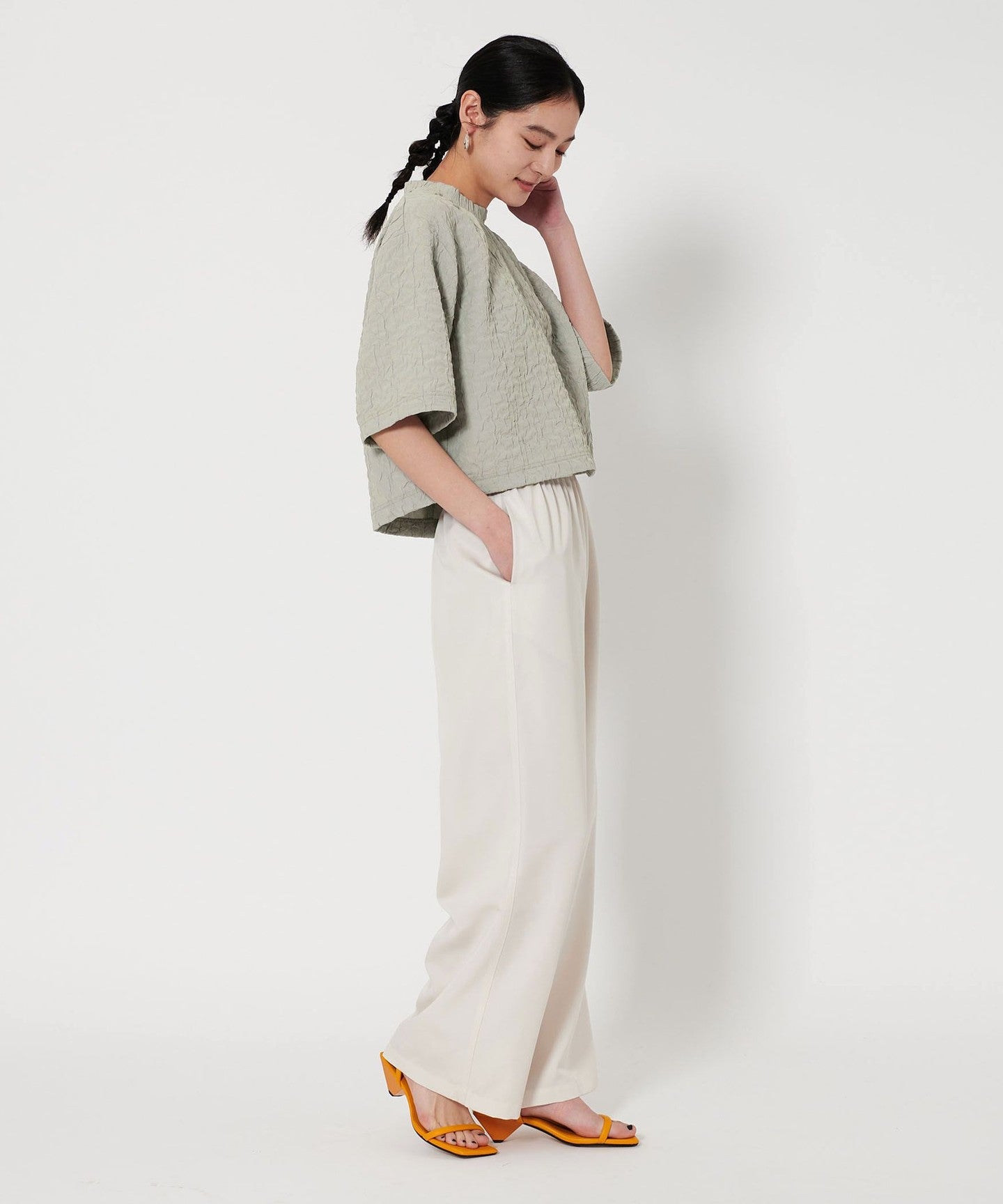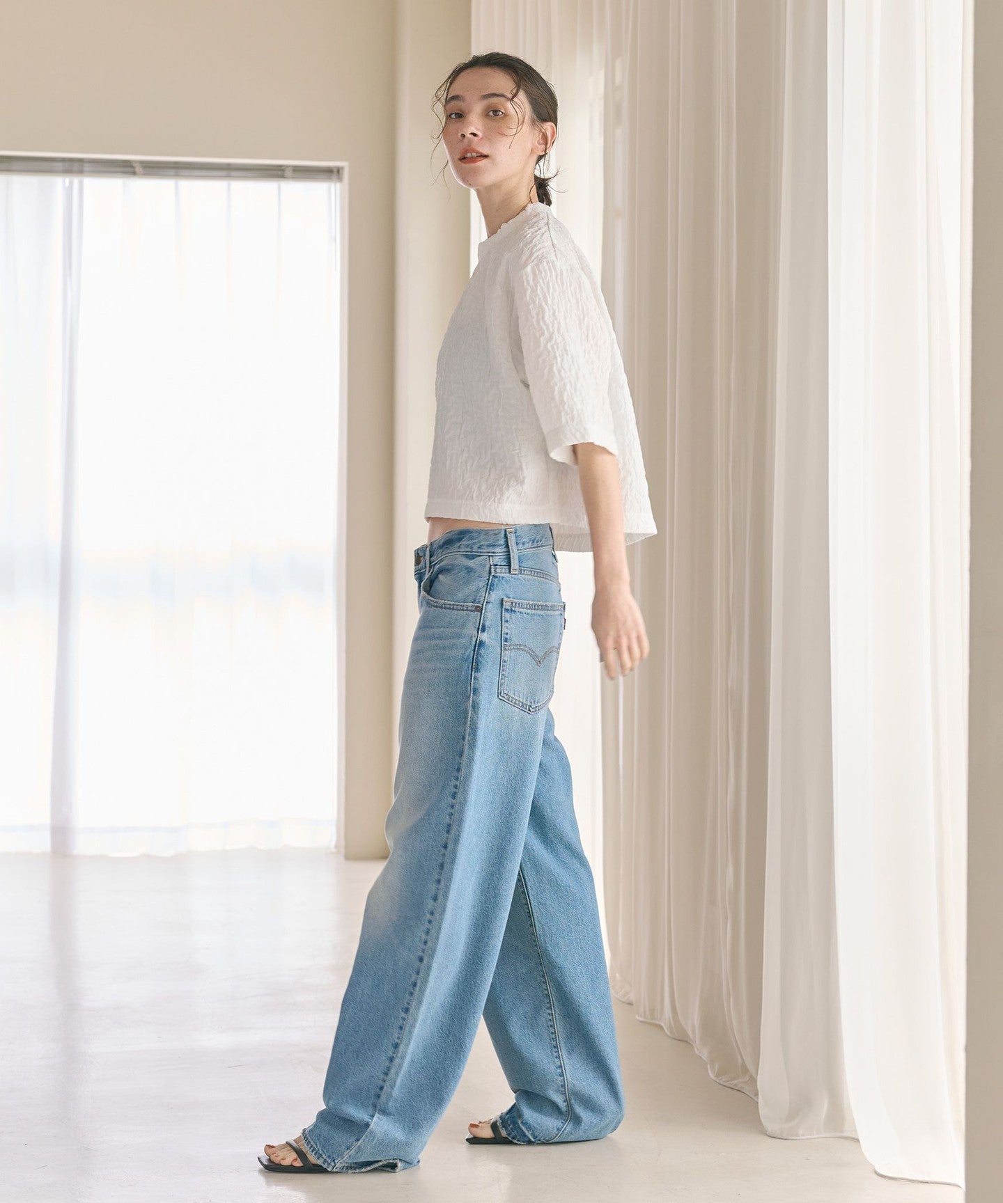 We recommend pairing it with an I-line denim skirt or wide pants.
