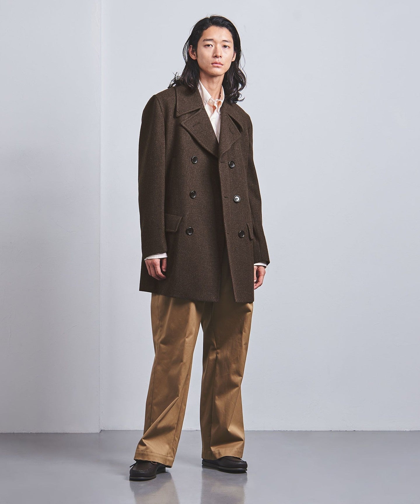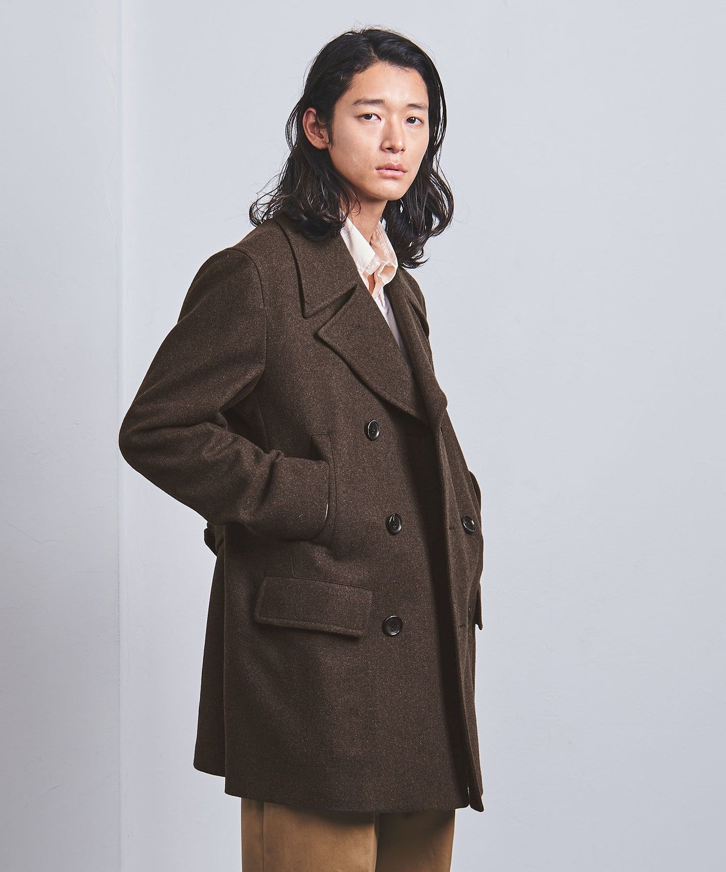 This peacoat has a slightly slim silhouette and wide lapels, giving it a modern look.