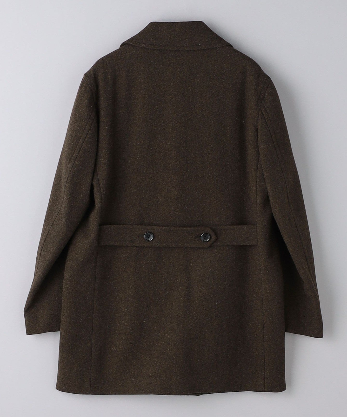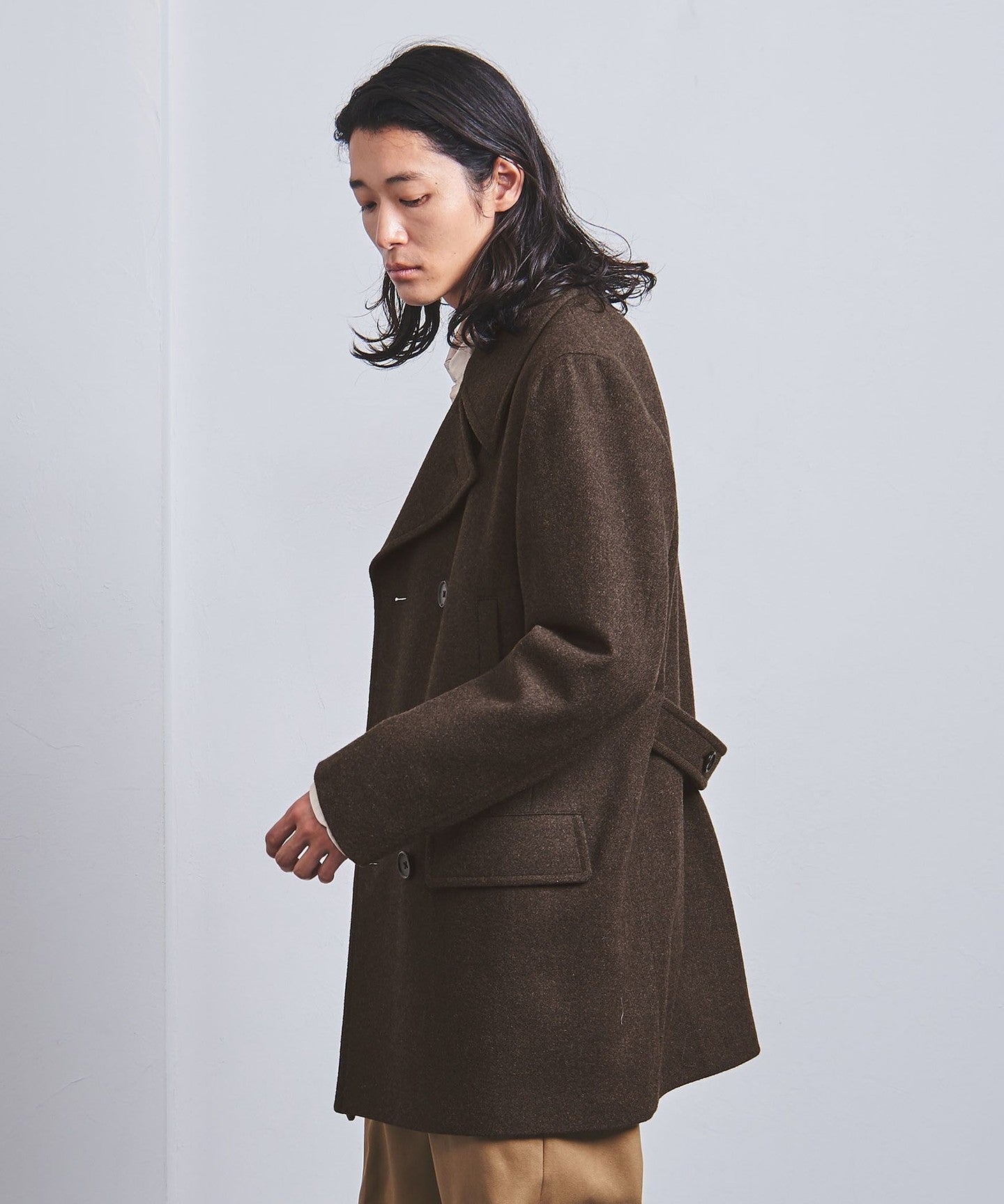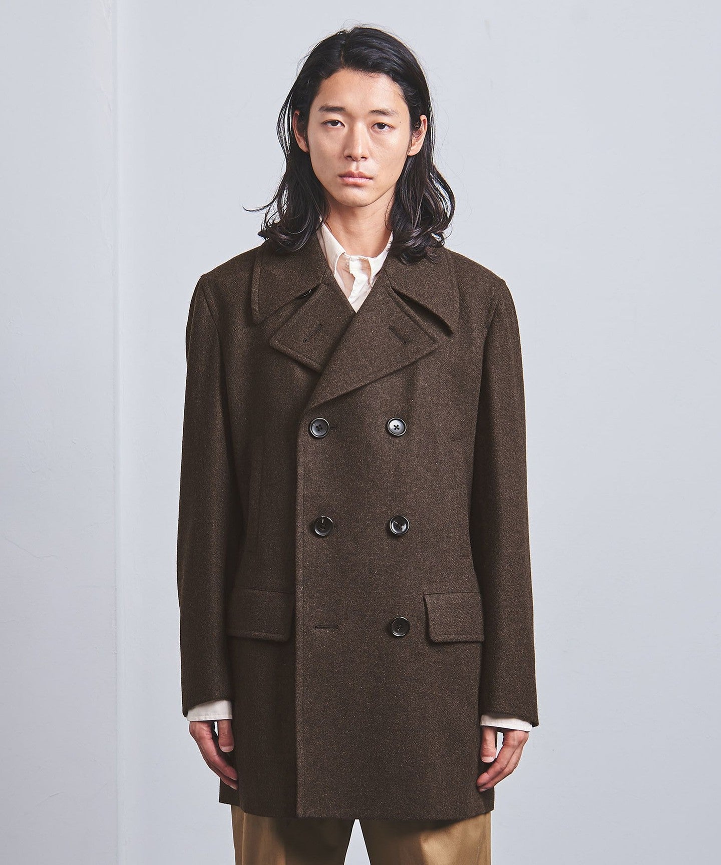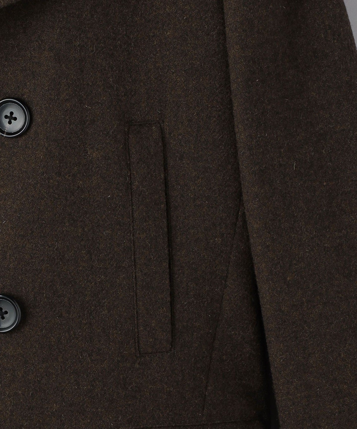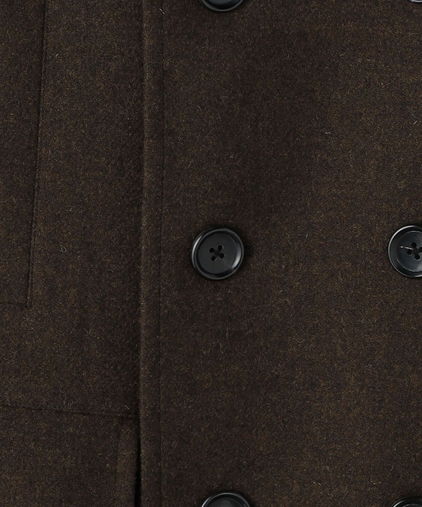 A pea coat with a warm dark brown color and a soft texture that gives it an elegant impression.