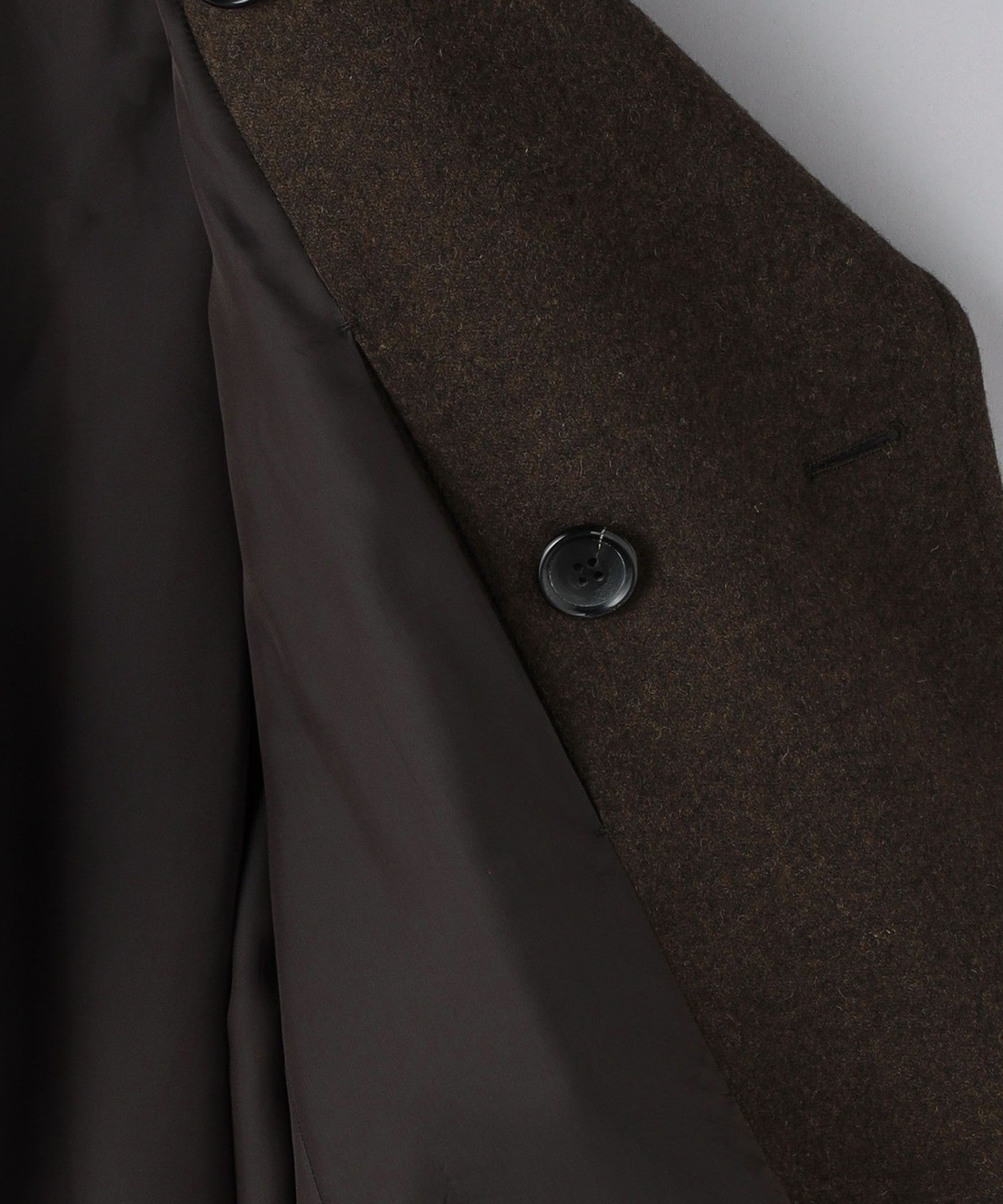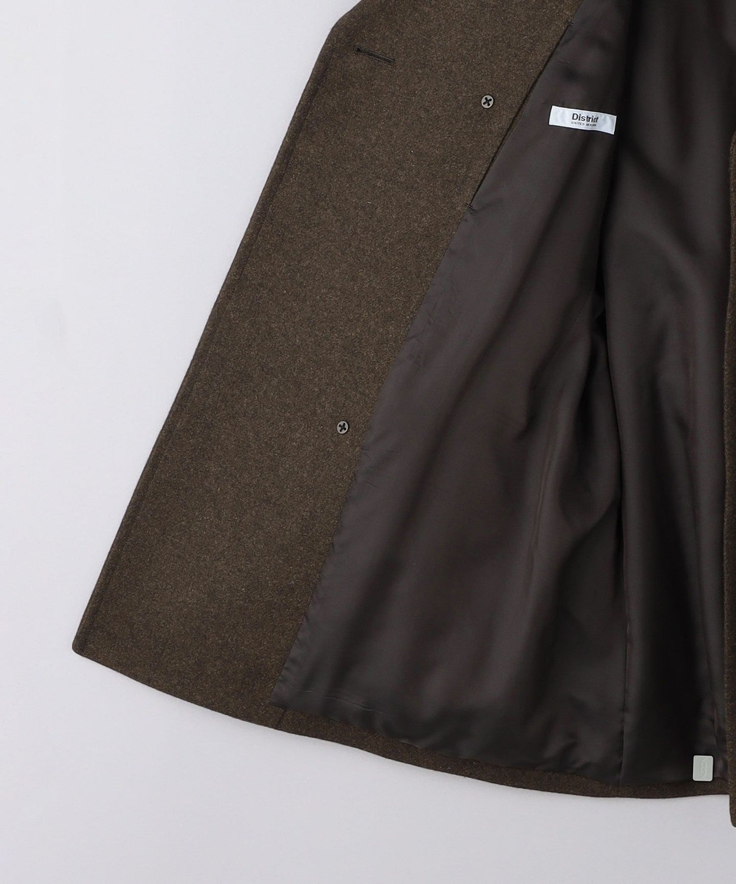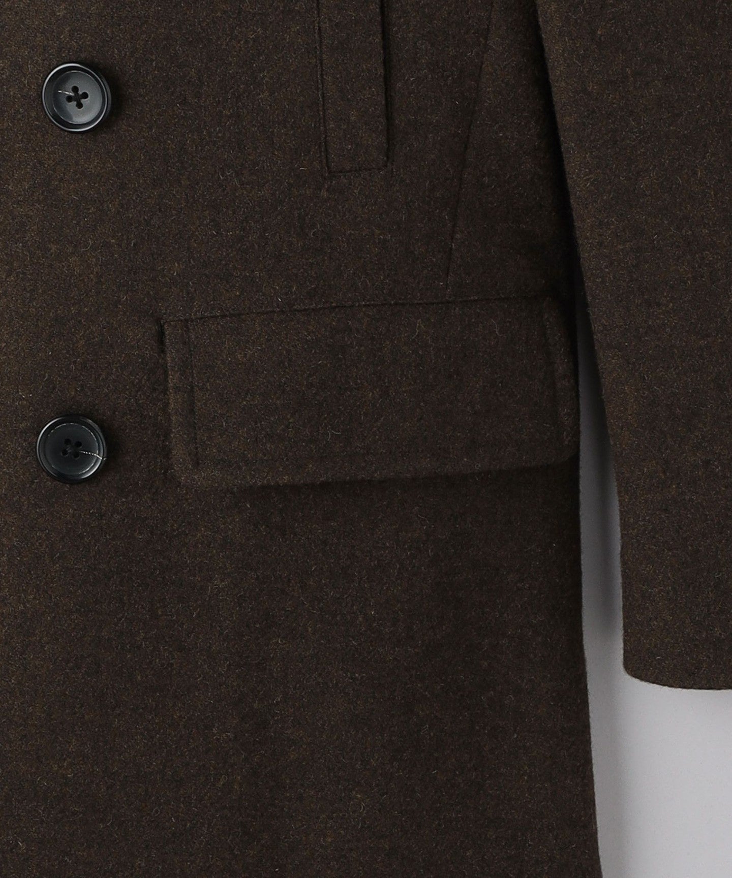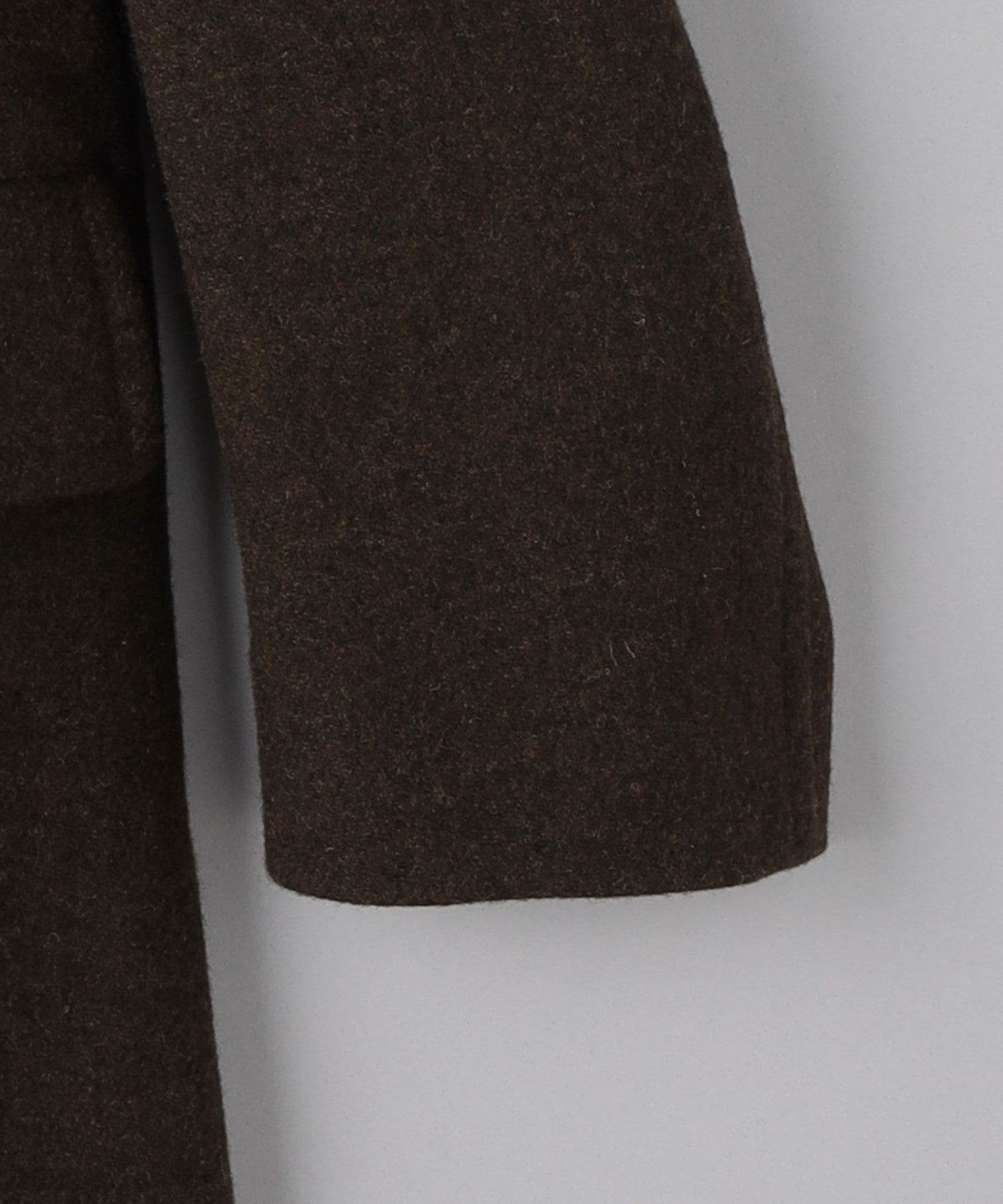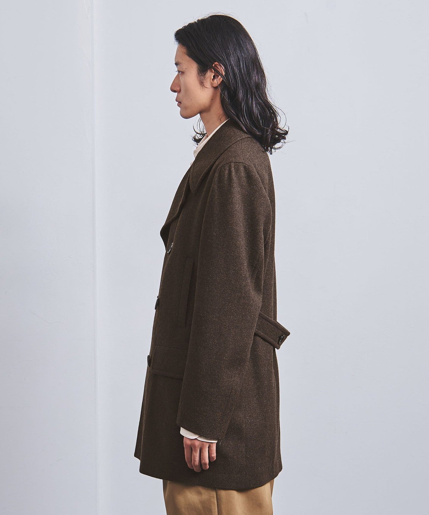 A pea coat with a warm dark brown color and a soft texture that gives it an elegant impression.