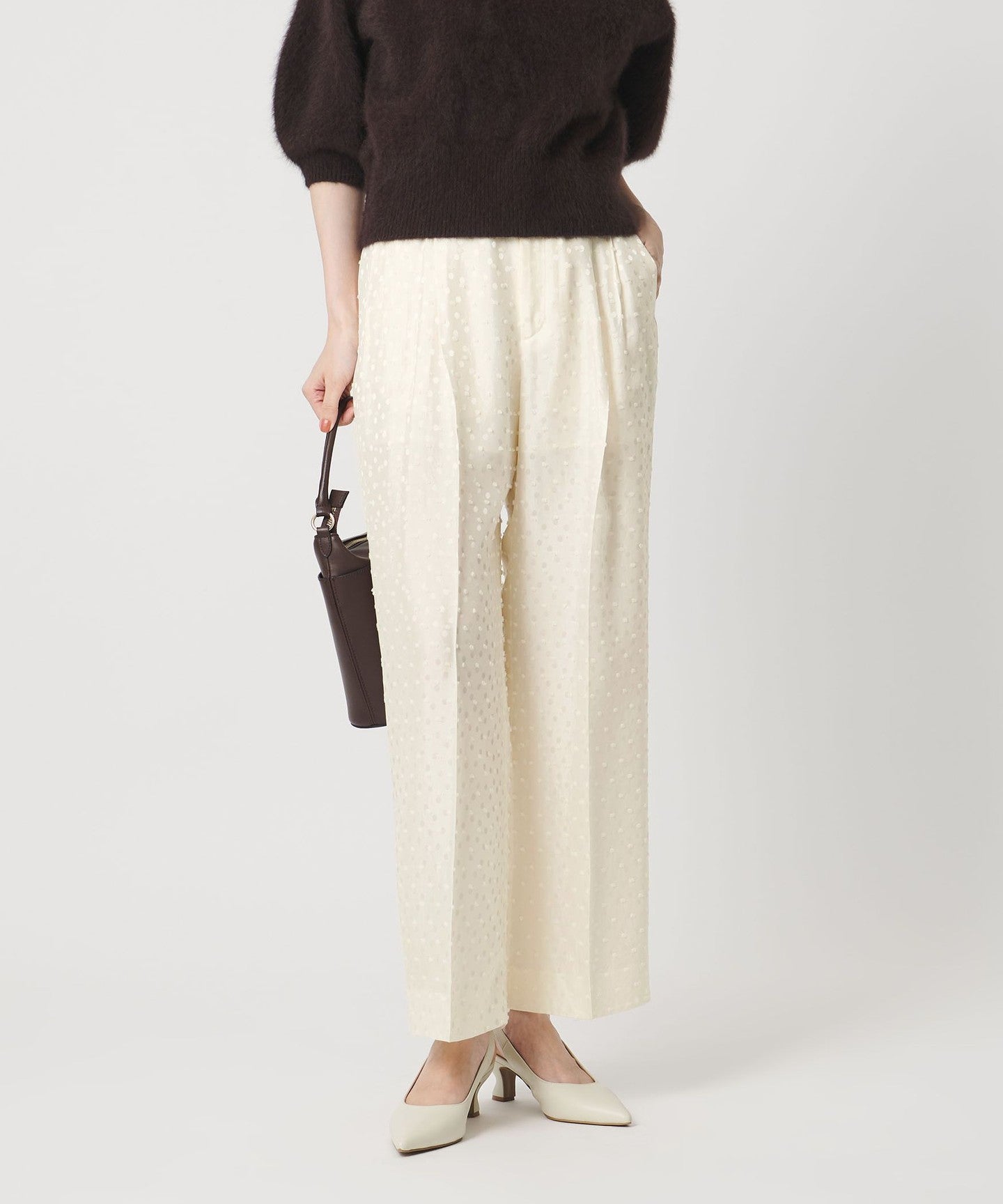 It goes well with both a neat look paired with a jacket and a casual style paired with an openwork knit.