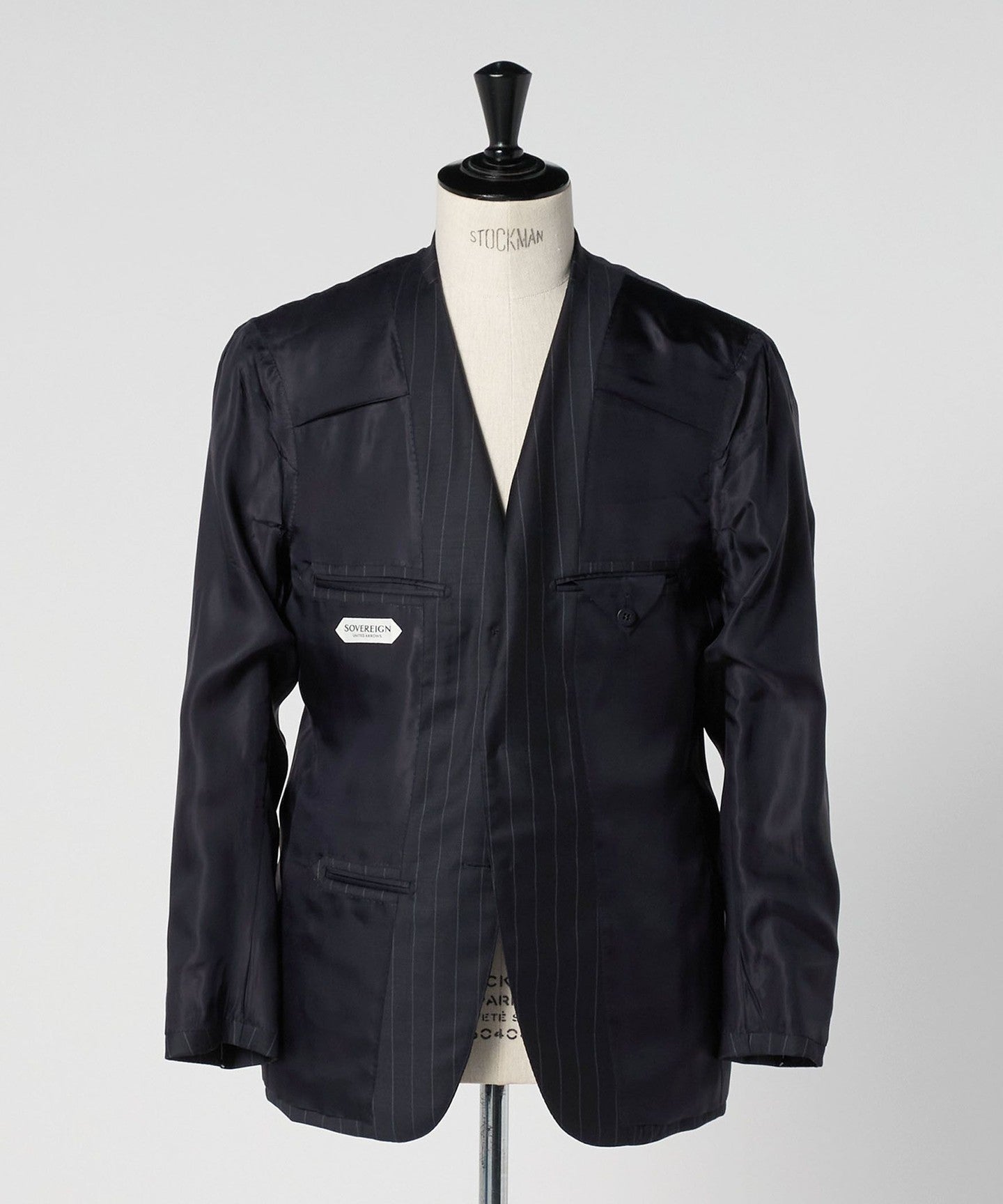 「DORMEUIL」社製のペンシルストライプ生地を使用。
