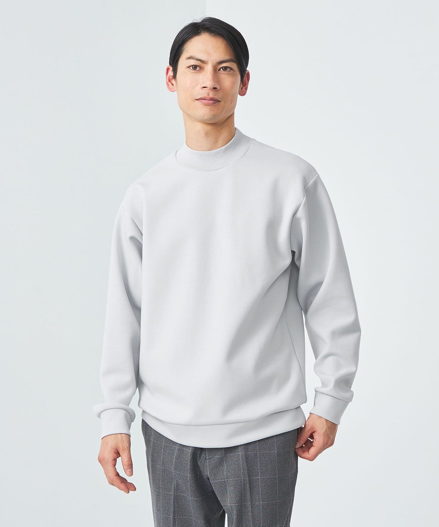 This is a mock neck cut-and-sew with a moderately loose silhouette.