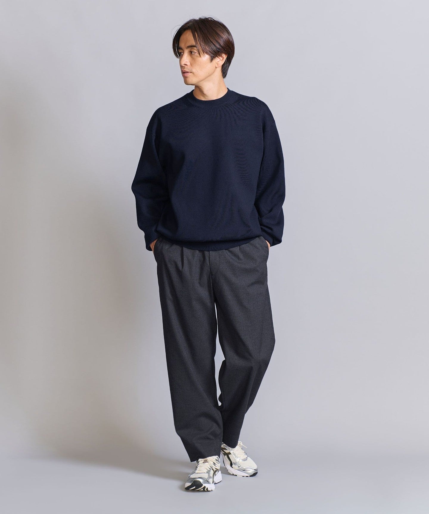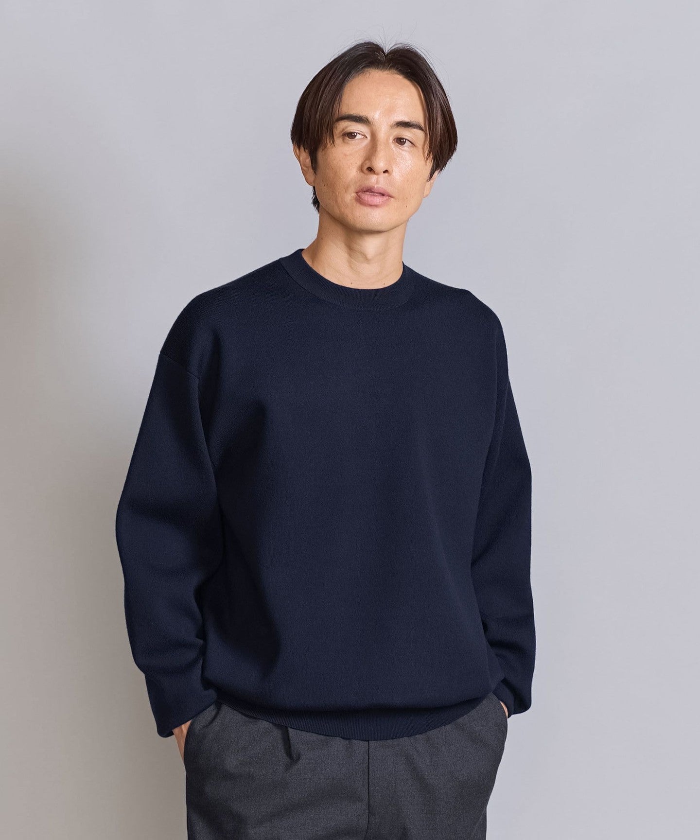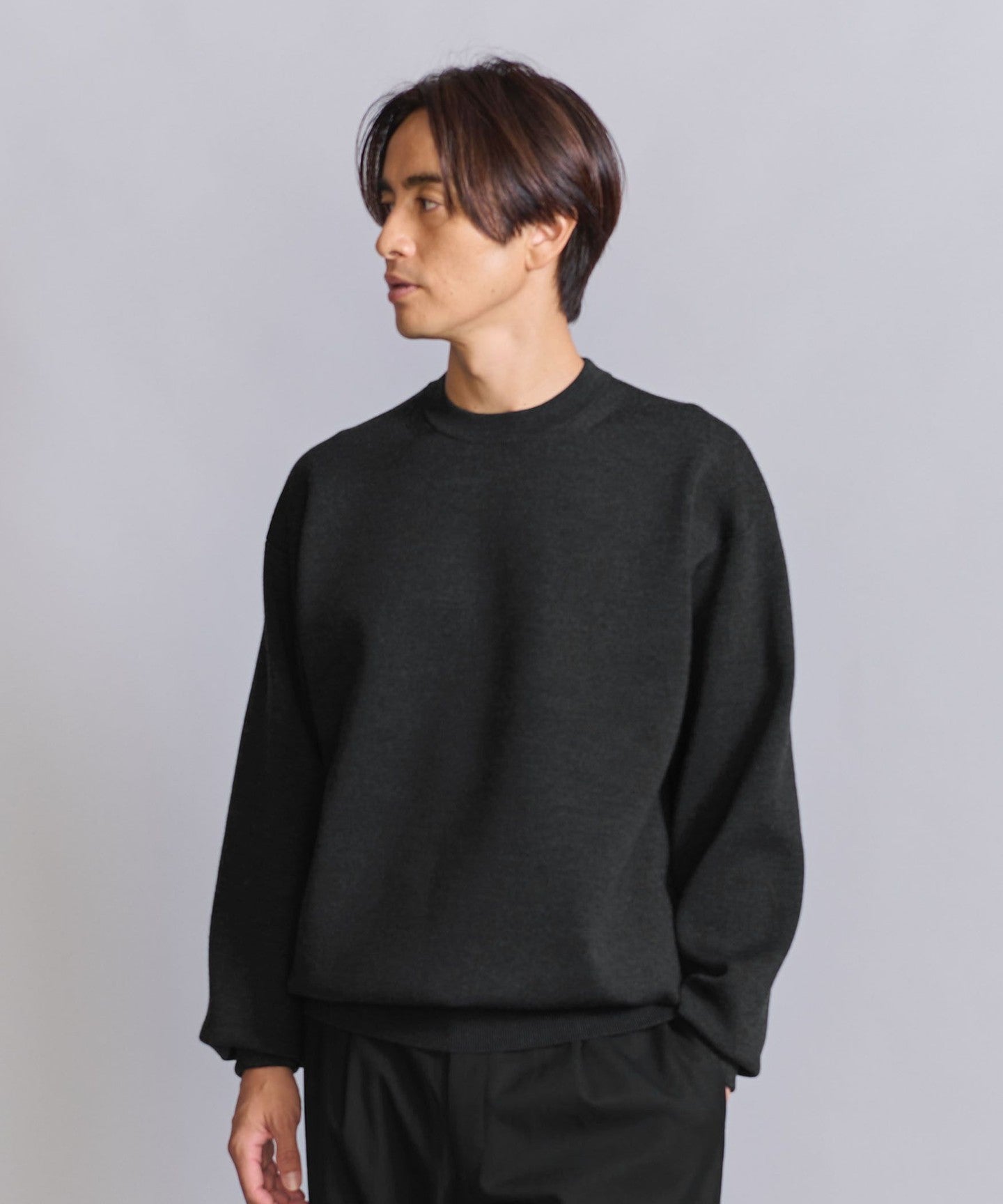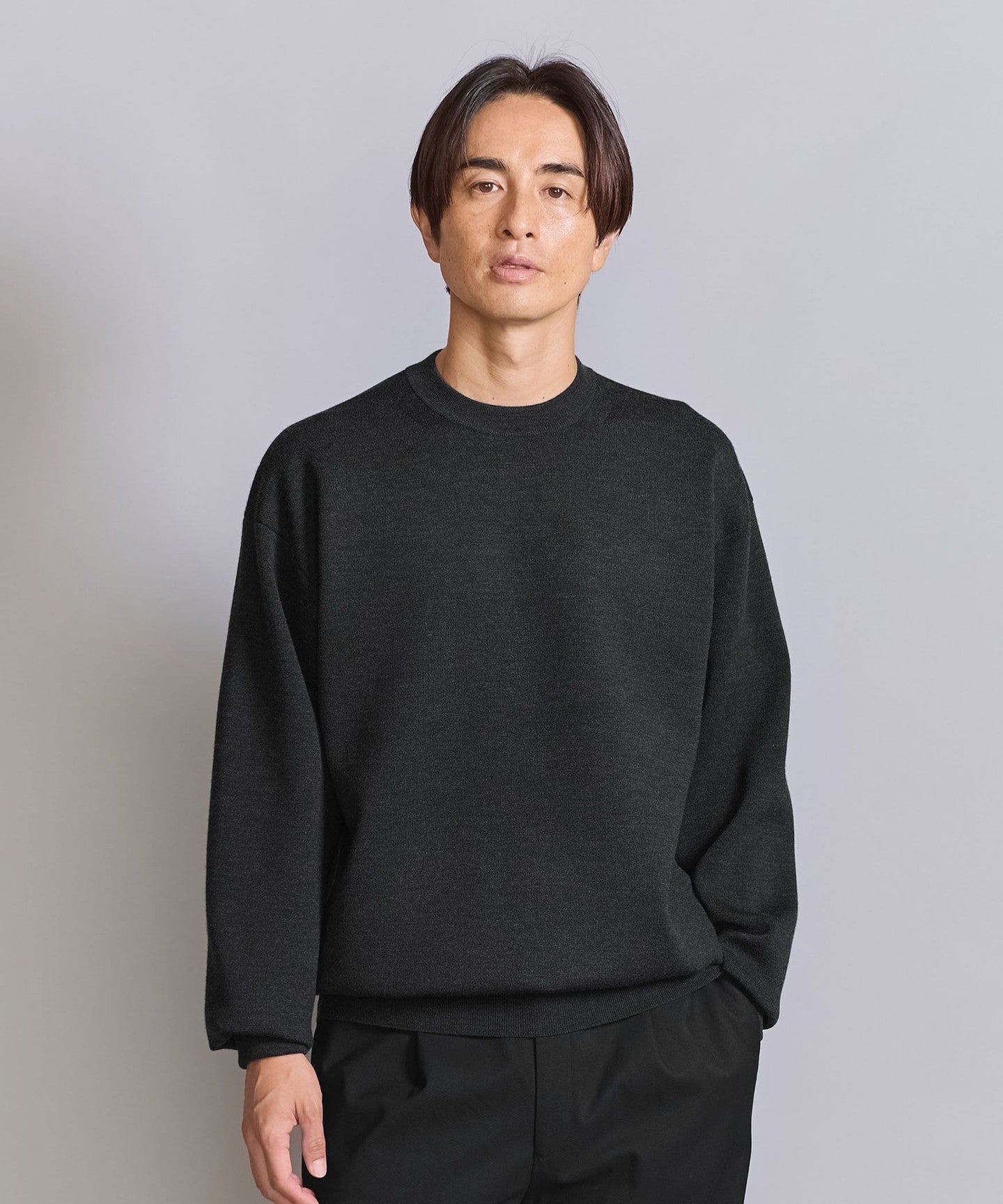 The material is made of washable ultra-fine wool and ultra-fine polyester yarn that gives the knit fabric stability, and the body is finished with a smooth knit.