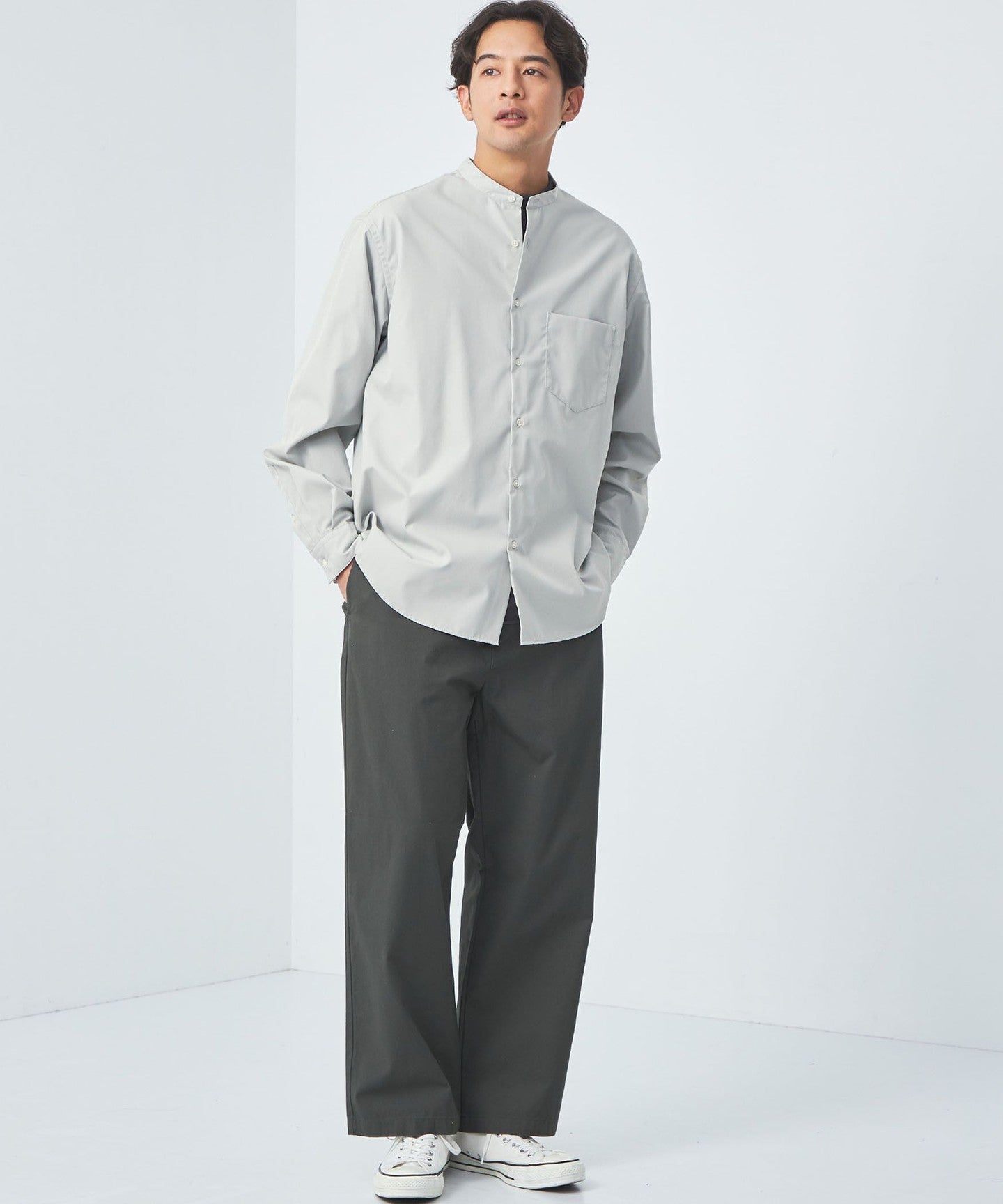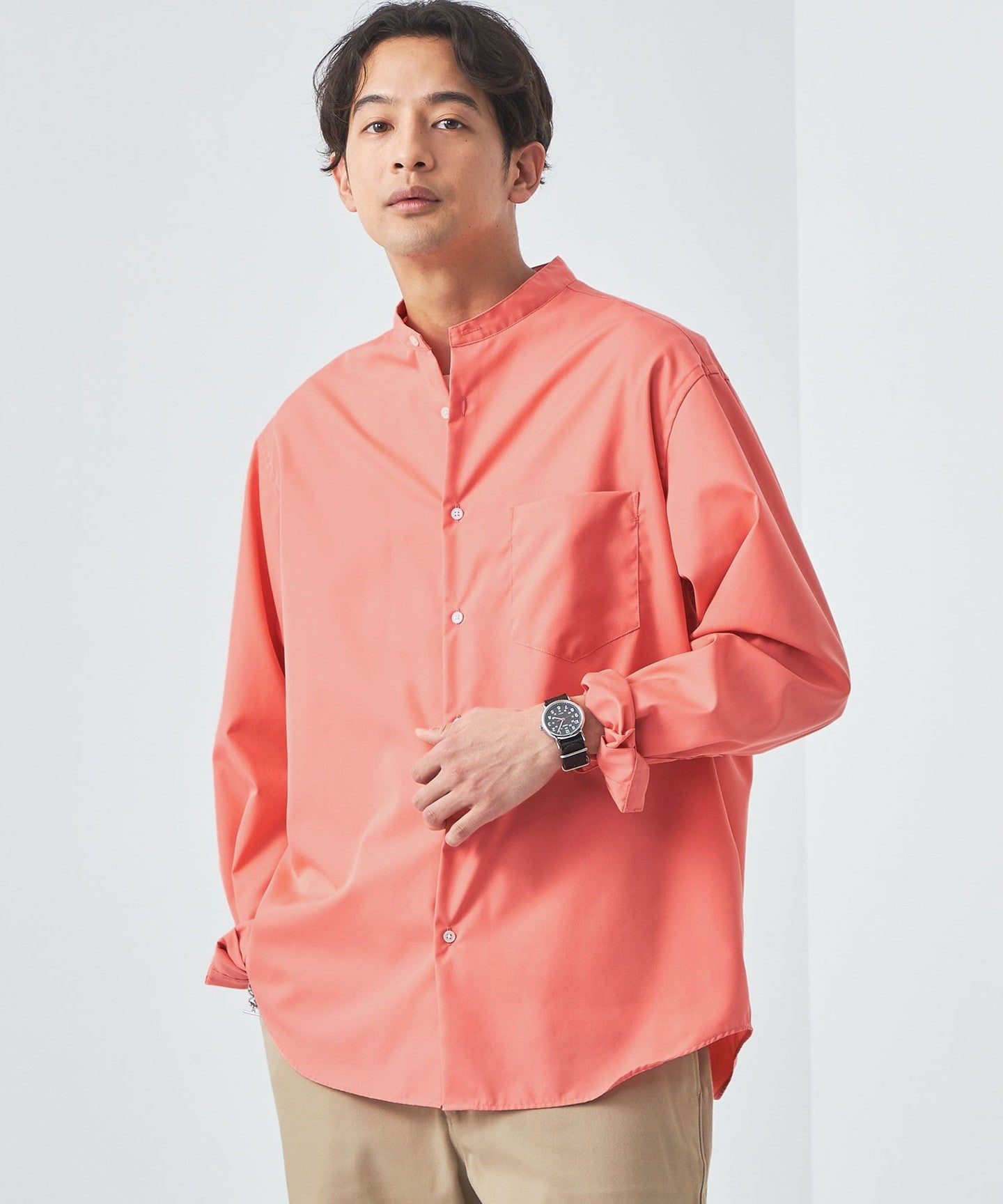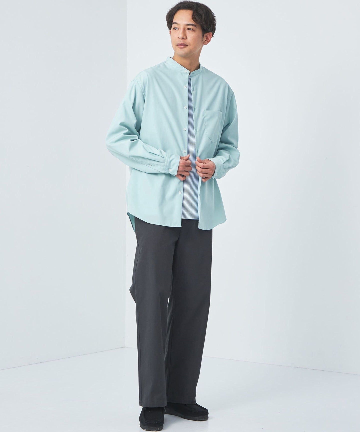 Broad Just Loose Band Collar SHIRT -Wrinkle-