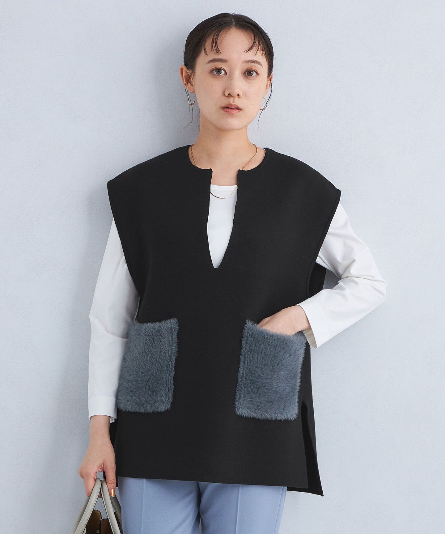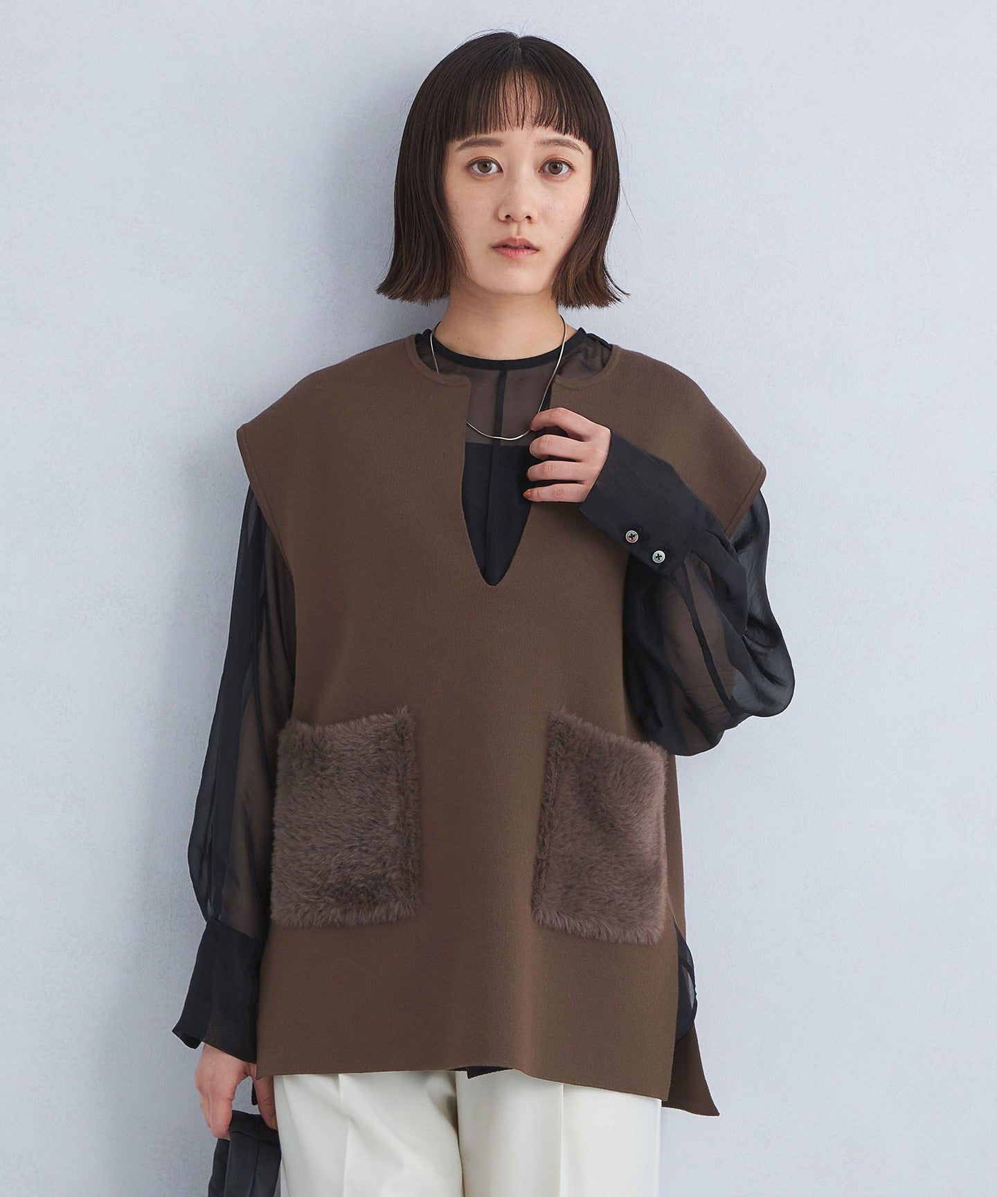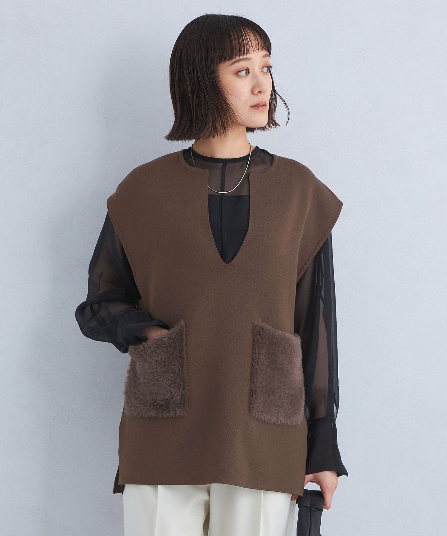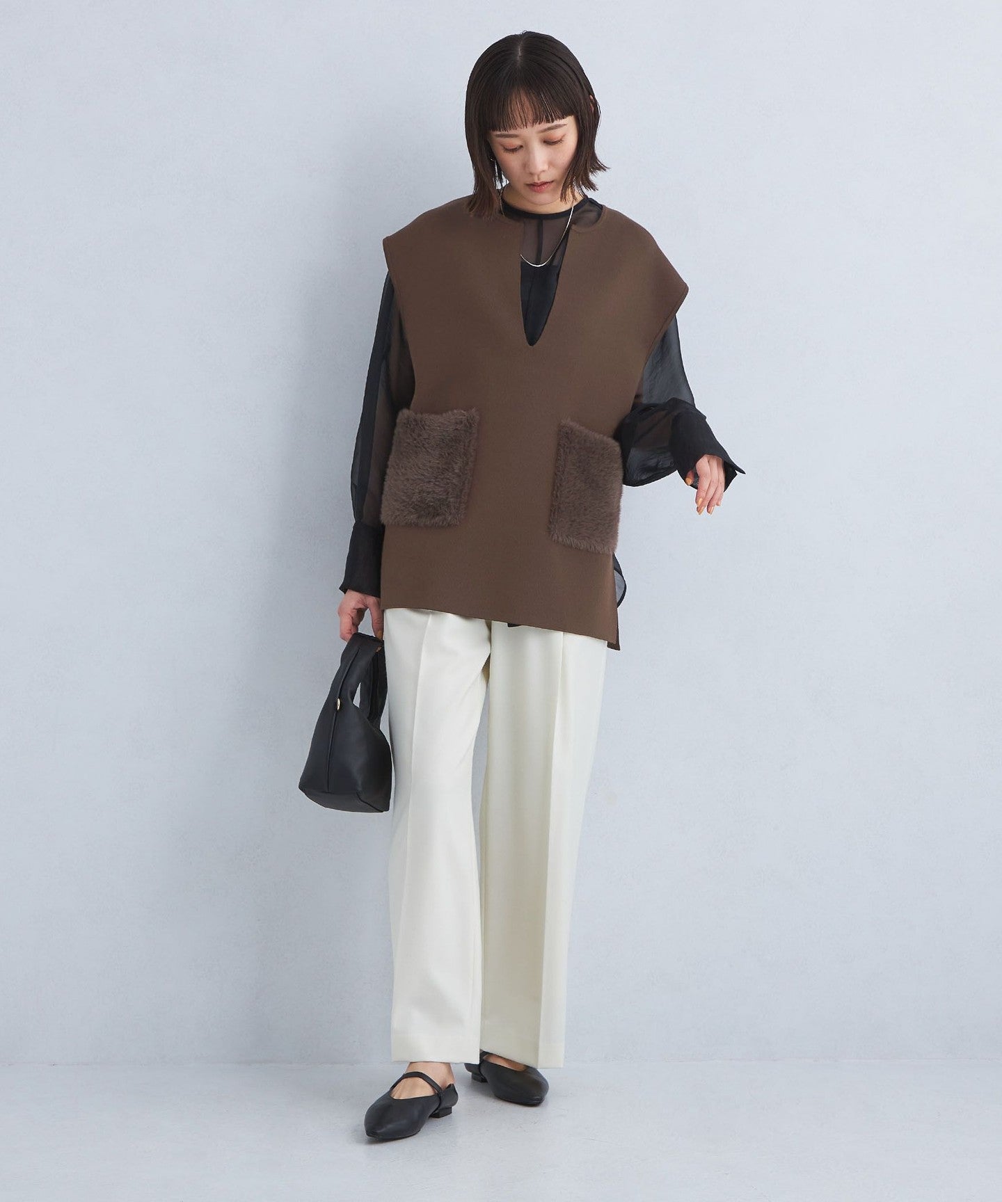 The knit part has a moderate thickness and is made of a material that can be worn for a long season.