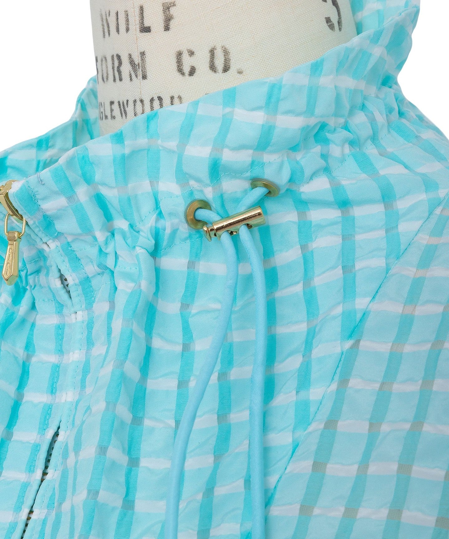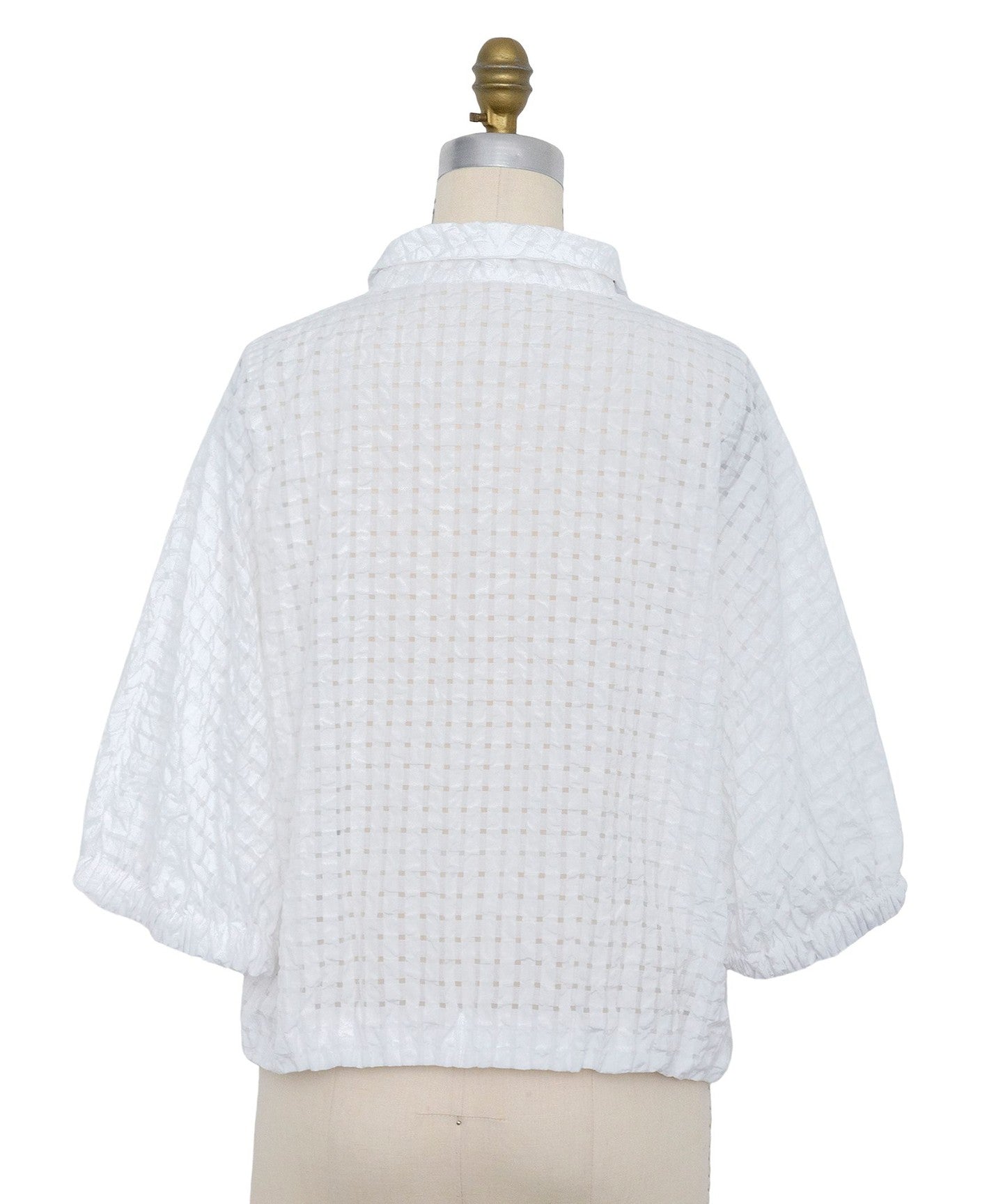 Made from a sheer checkered material with a bumpy texture.