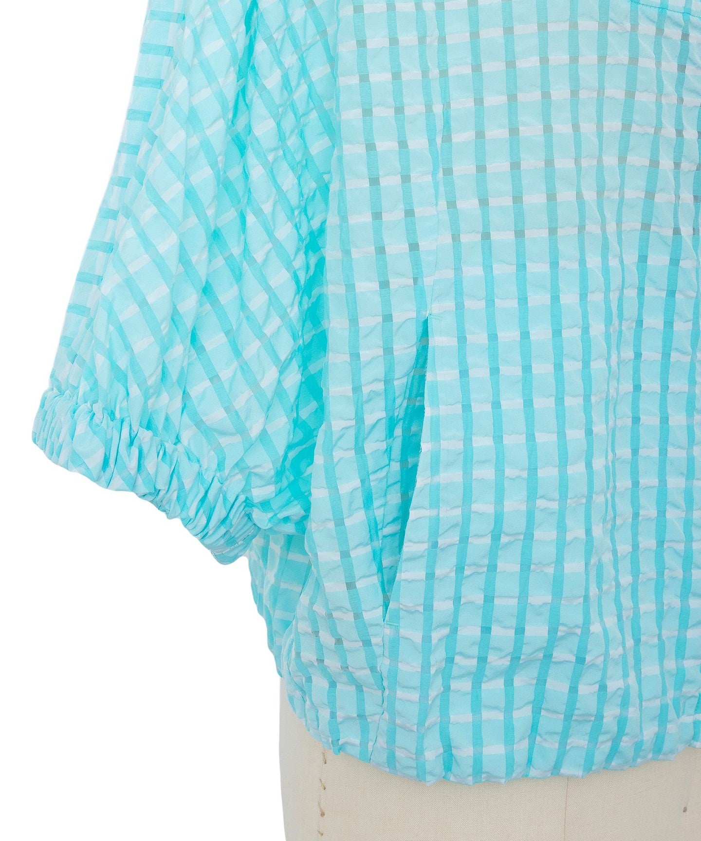 Short sleeves with a sheer gingham check patternBLOUSON
