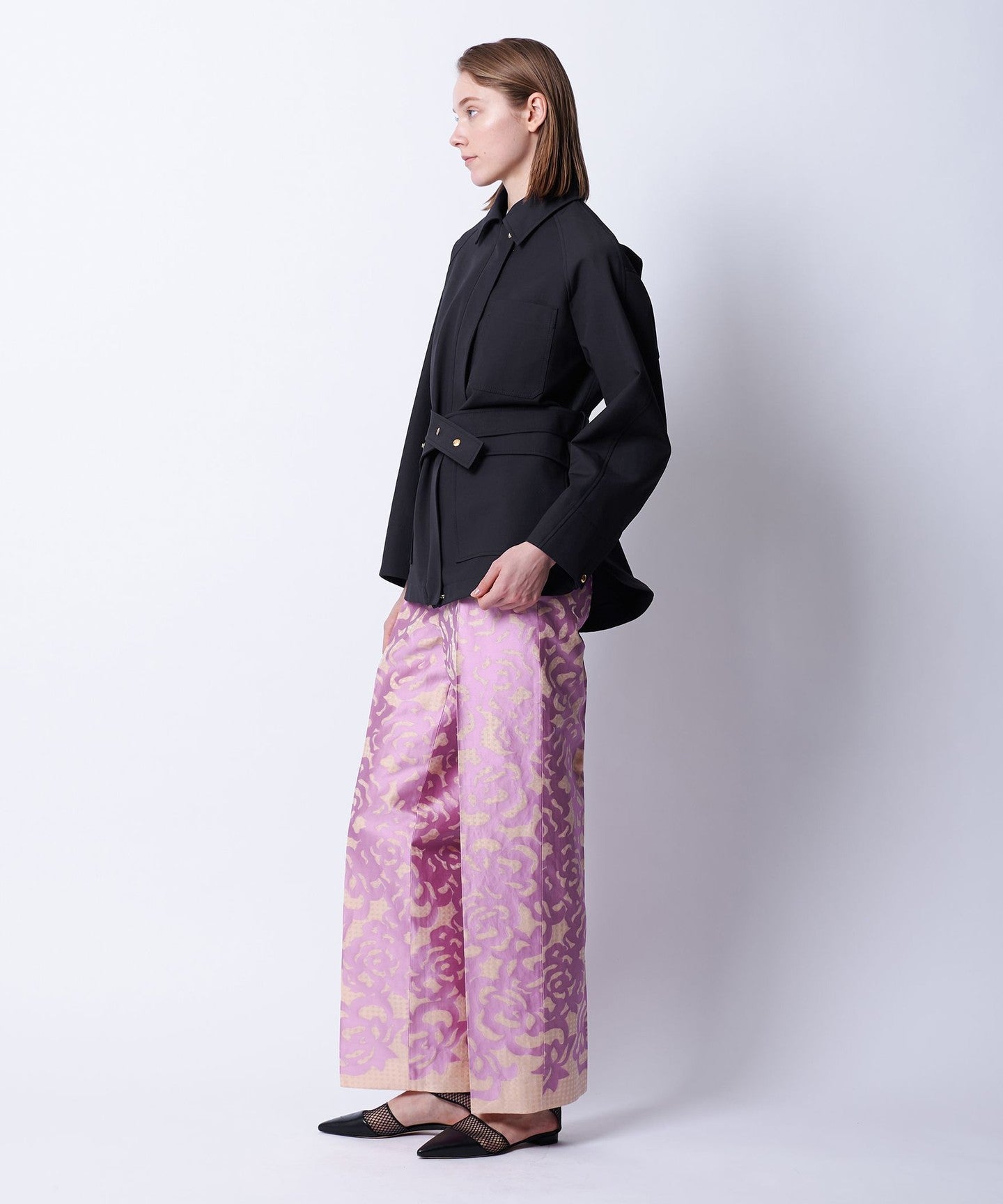 The waist belt can be styled by fastening it with a dot button at the front or looping it at the back.