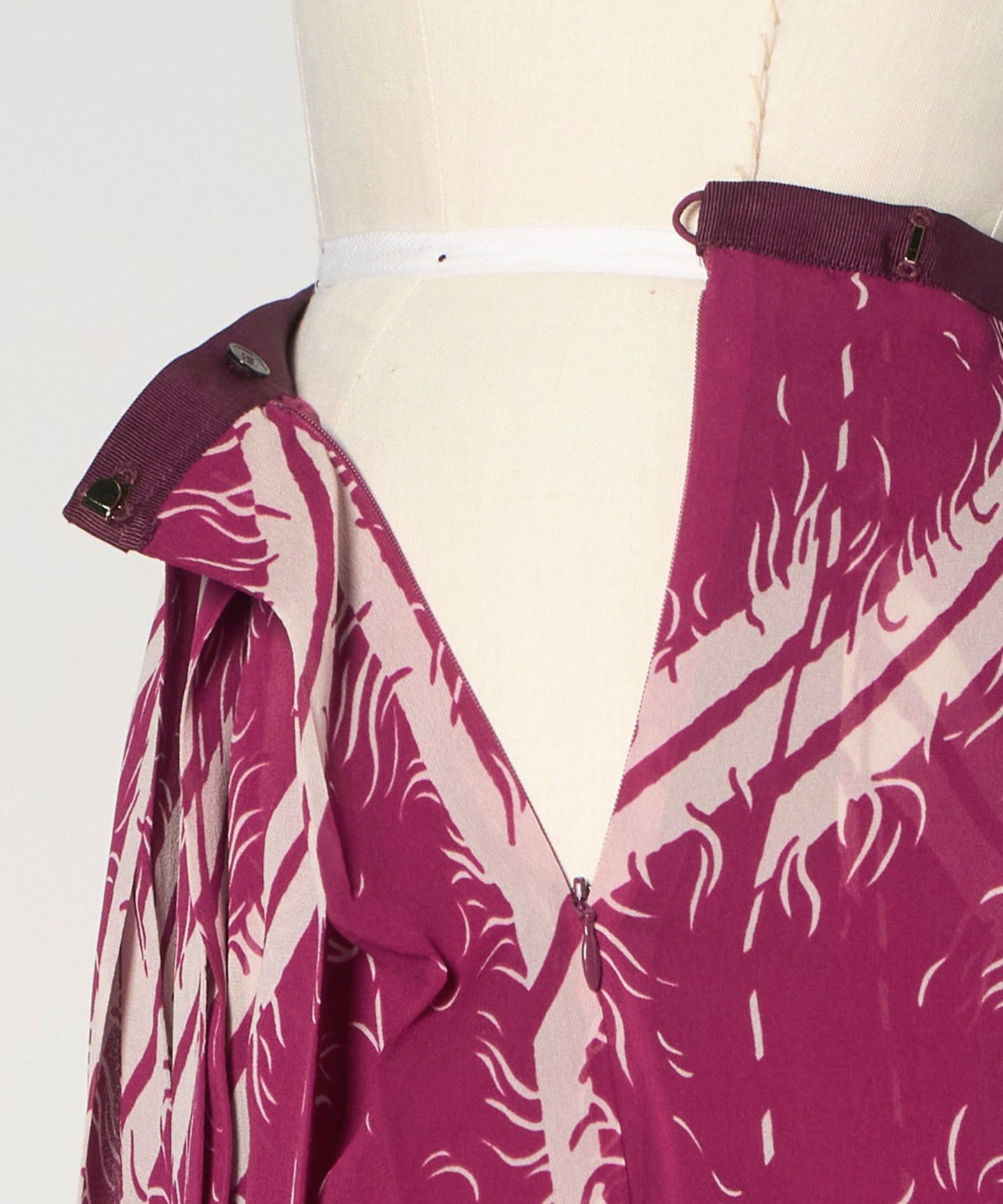 The sheer silk material with a chic colored print creates a sense of elegance and lightness.