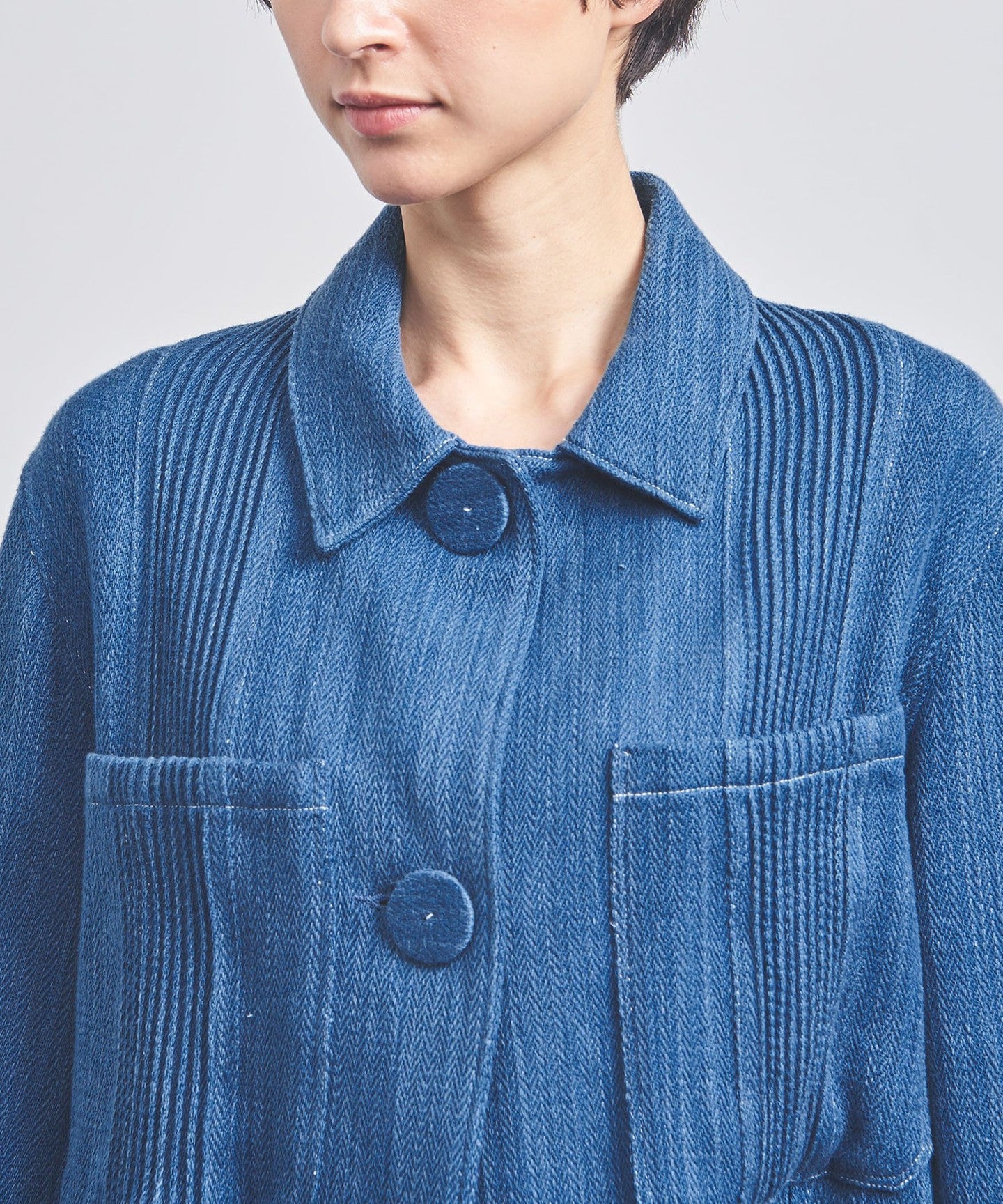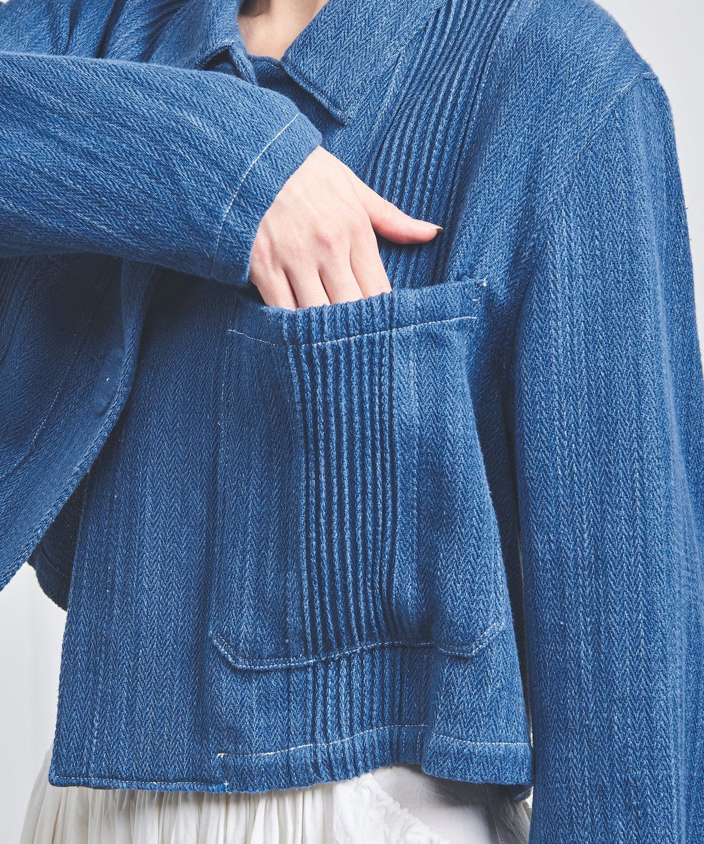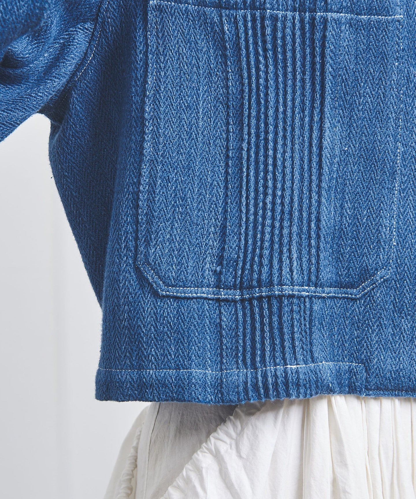 Amaori handwoven FABRIC This denim features a relaxed silhouette that brings out the natural texture of the fabric. JACKET .