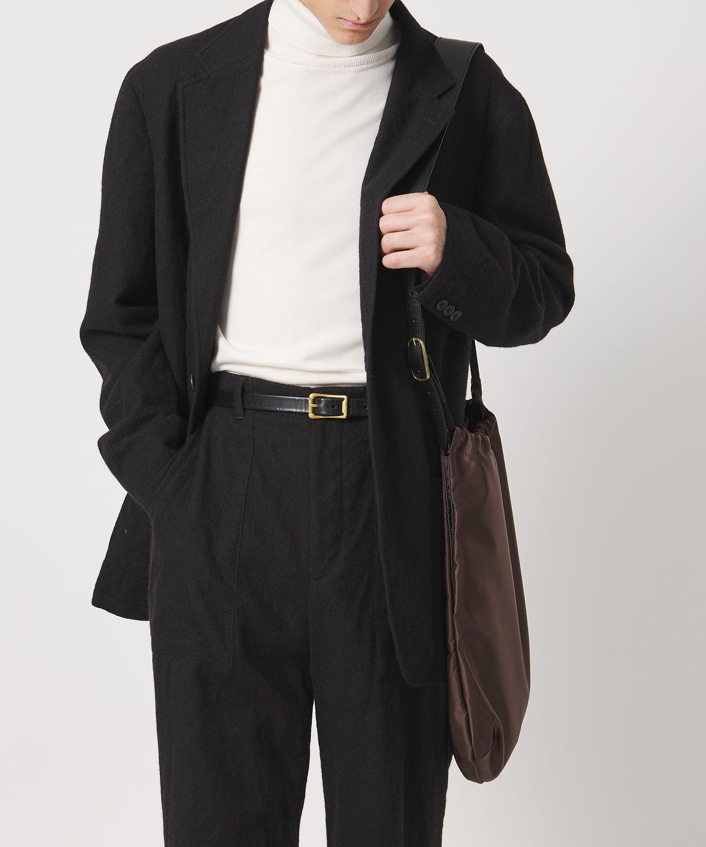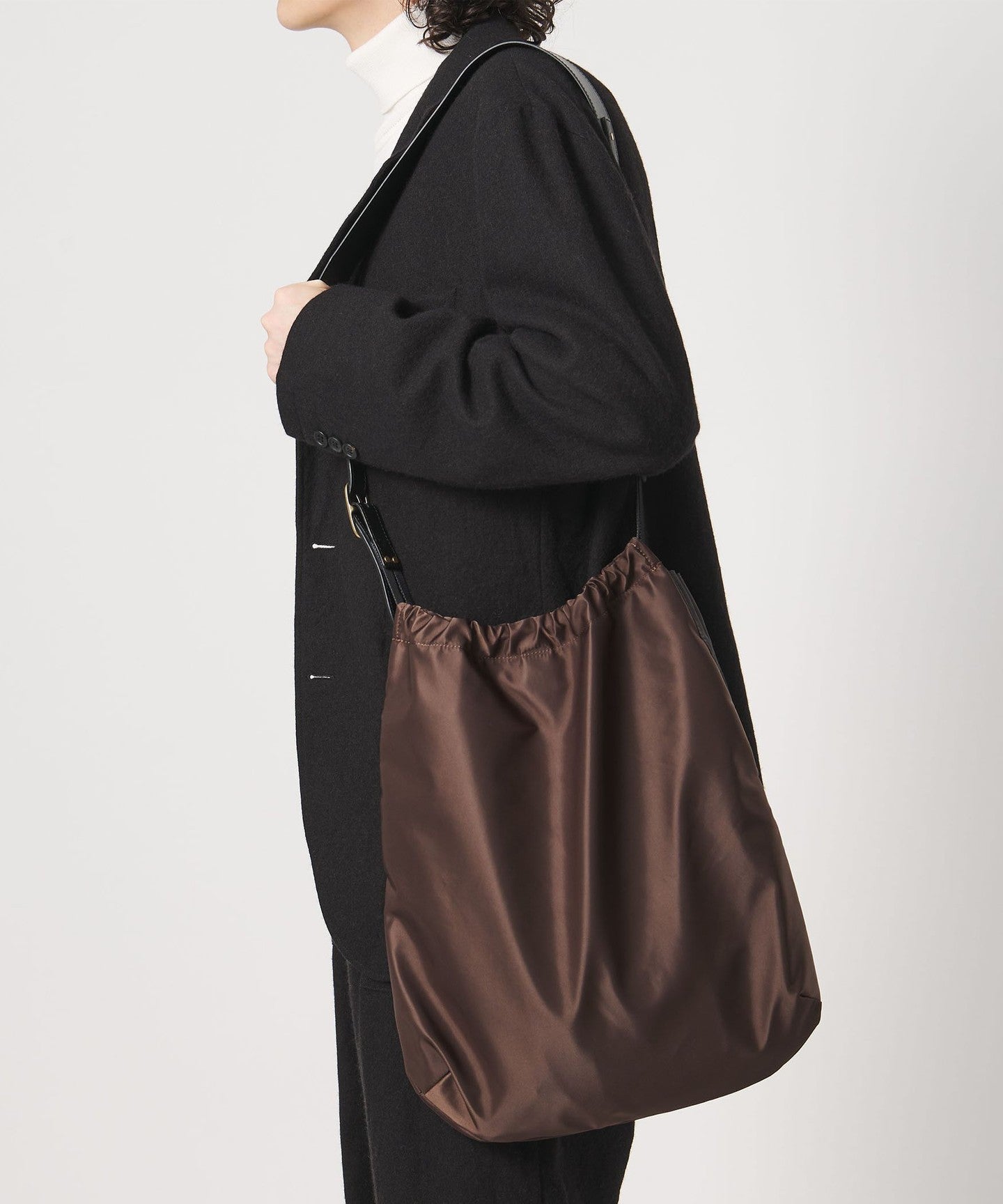 きれいめな着こなしにマッチするDistrict別注ショルダーバッグ
