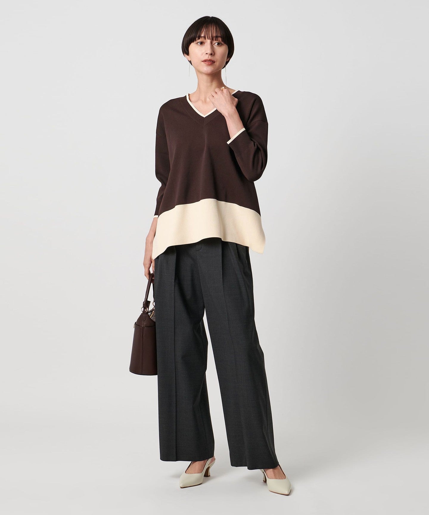 It goes well with slim pants with a clean silhouette or an I-line skirt.