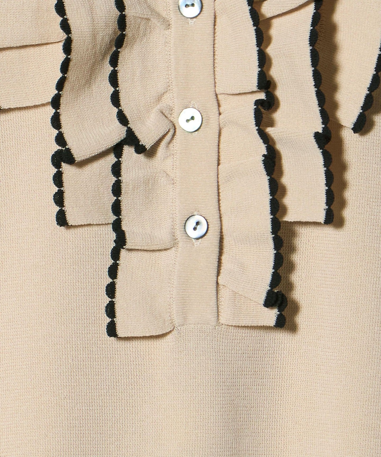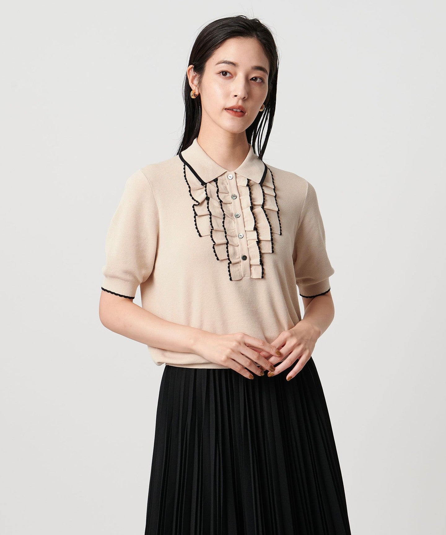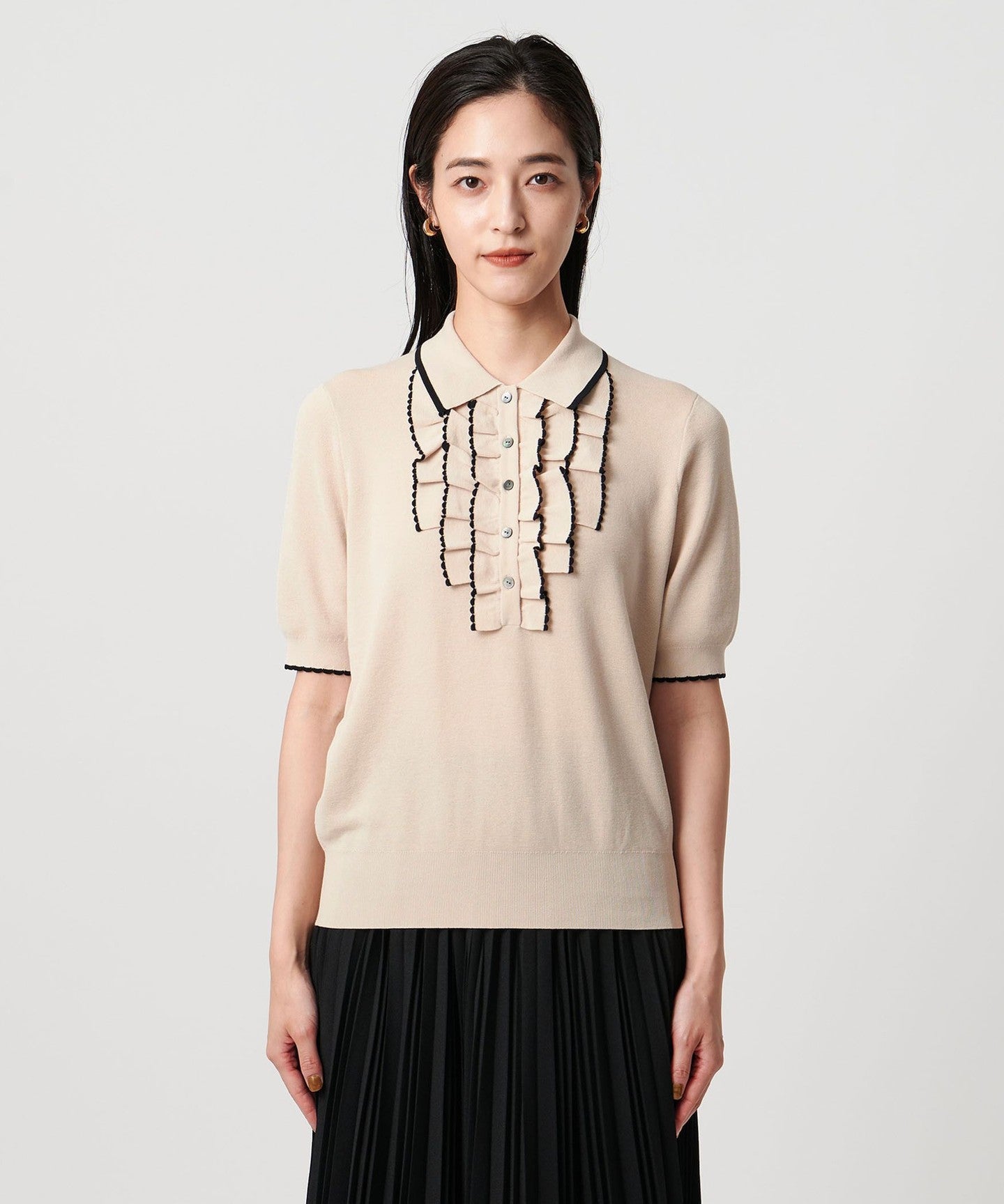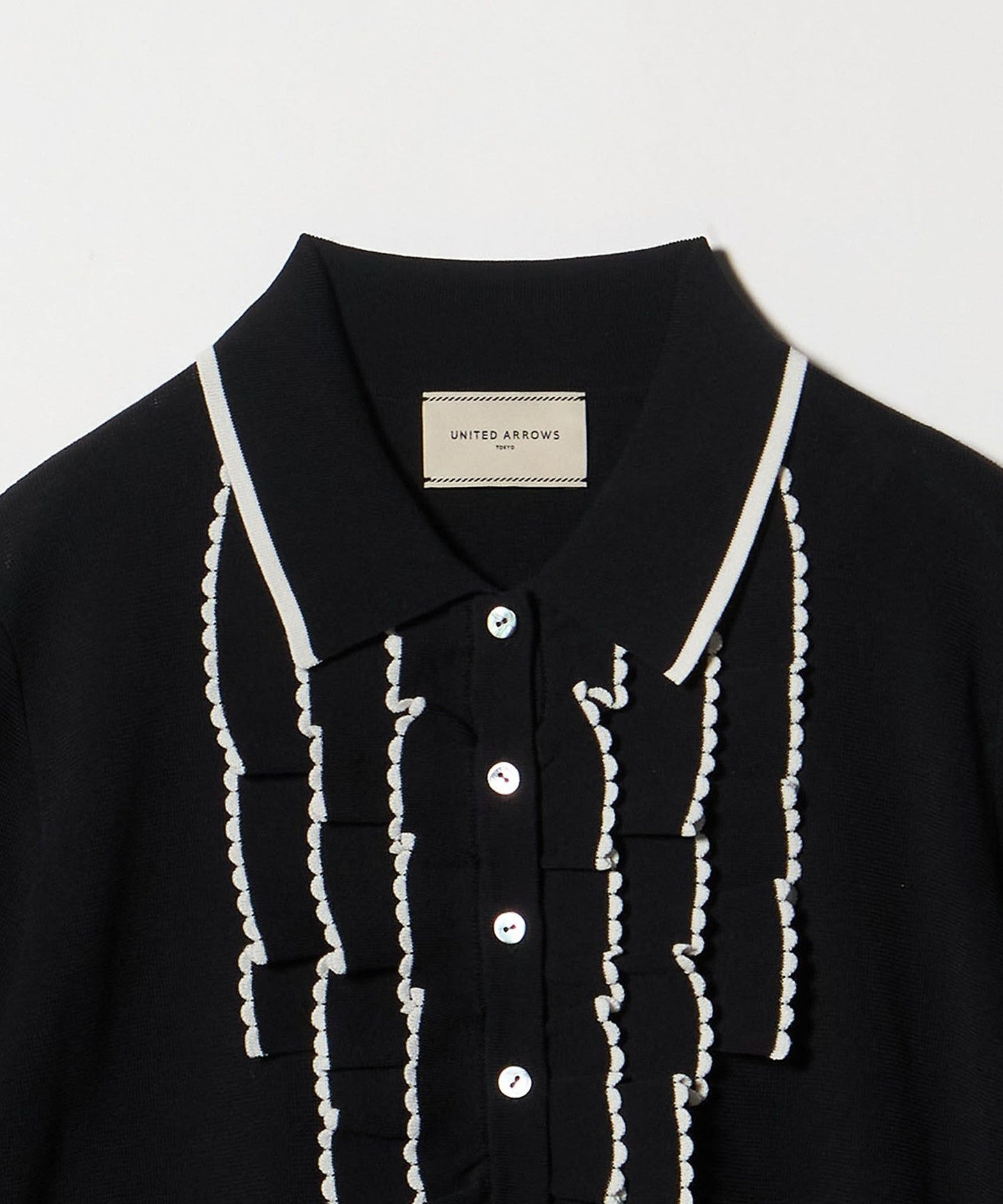 The colorful scalloped frills on the chest are gorgeous and eye-catching. KNIT Polo.
