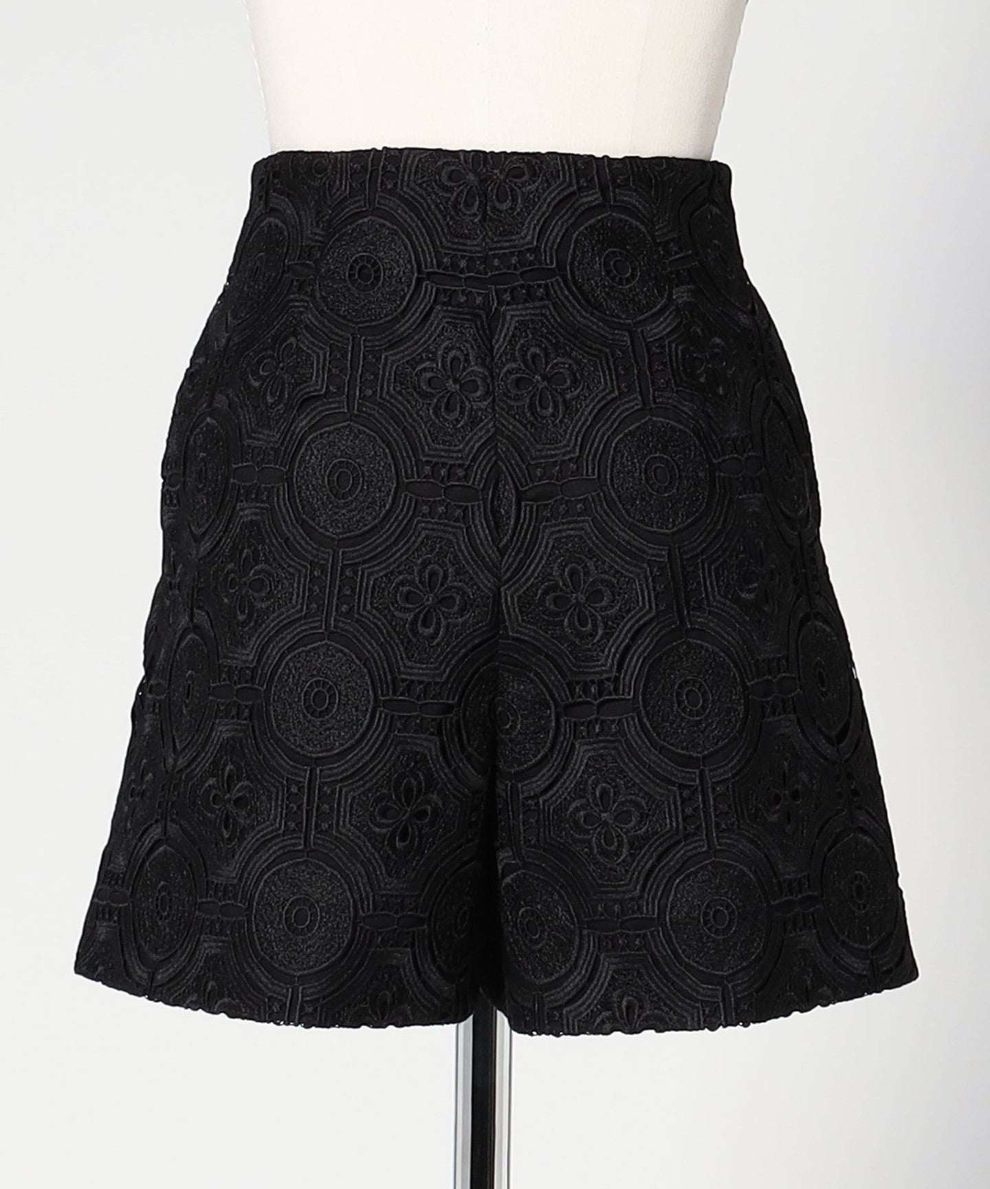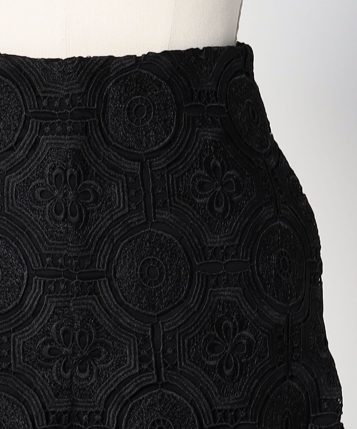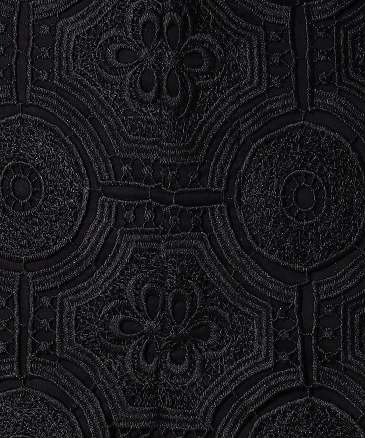 It is made of embroidered lace with an arabesque pattern.